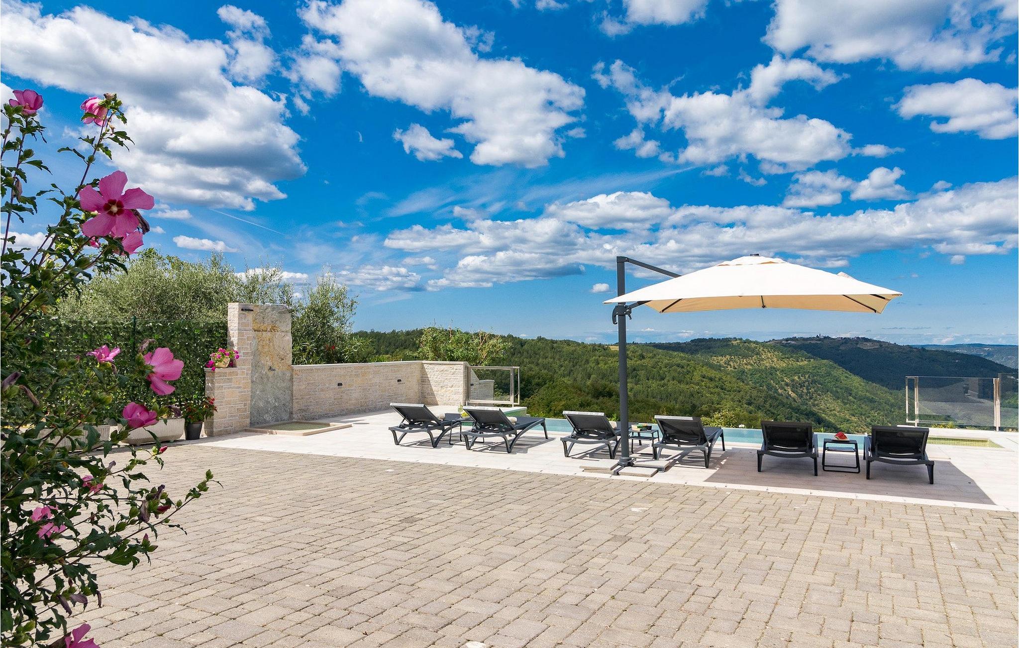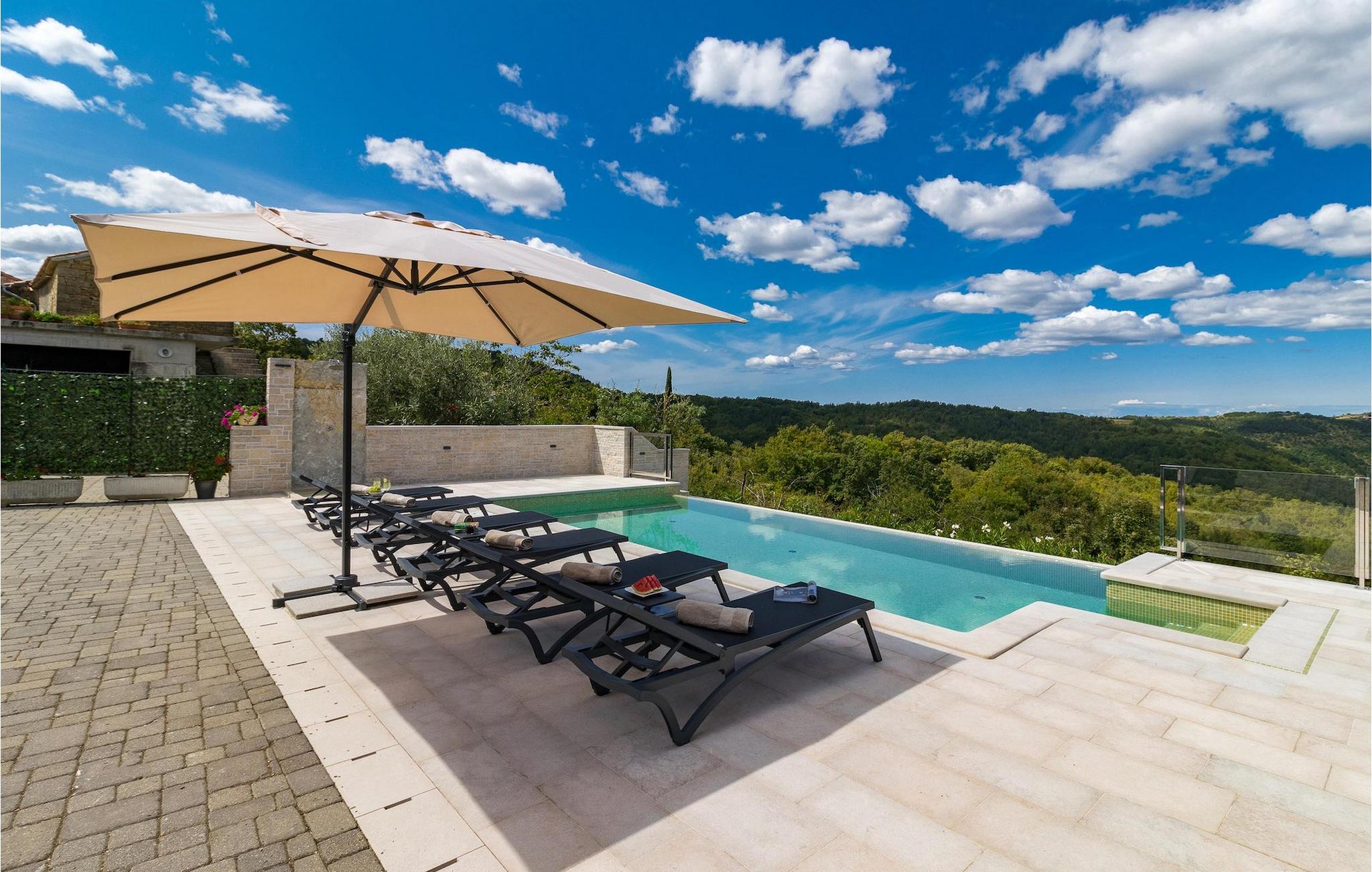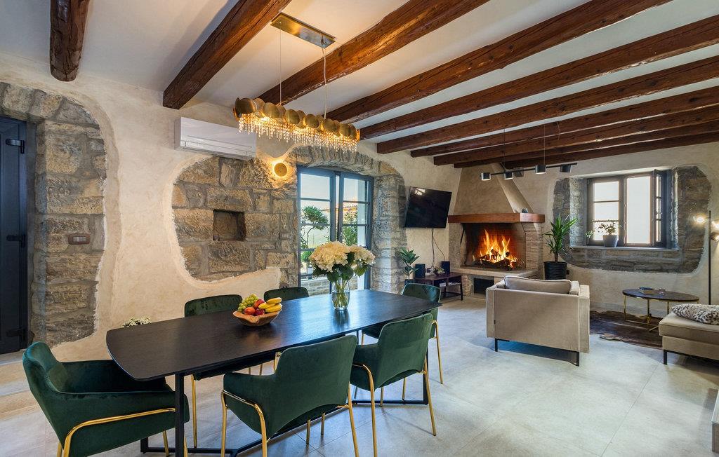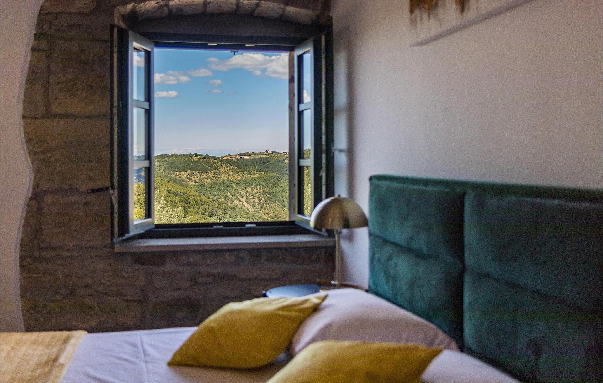 Drømmer du om en smuk villa i en idyllisk, lille landsby i det centrale Istrien, omgivet af milde bakker og natur? Villa Grazia vil gøre dine drømme til virkelighed. Dette unikke feriehus blev tidligere brugt som landbrugsbygning og blev renoveret med stor kærlighed og sans for detaljer i 2021. Det kan rumme op til seks personer og har tre soveværelser med eget badeværelse, en stue og et køkken med spiseplads areal. De tre stilfuldt indrettede soveværelser er på første sal, mens det åbne koncept stue, spisestue og køkken er i stueetagen. Det er tydeligt ved første øjekast, at Villa Grazia blev indrettet med stor omhu og sans for detaljer. De elegante, moderne møbler og de mange antikke elementer i træ og sten passer perfekt sammen og giver dette feriehus en helt unik atmosfære. I villaens udendørsområde er der en 32 kvadratmeter stor privat infinity-pool, hvorfra der er en betagende udsigt over det bakkede istriske landskab. Her kan du lade tankerne få frit løb og lade batterierne op. For de yngste gæster er der en legeplads udendørs. Hvis du har lyst til at teste dine kulinariske færdigheder og prøve nogle af de mange regionale delikatesser, kan du gøre det i det fuldt udstyrede udekøkken. Ejendommen er helt lukket og har tre parkeringspladser. Book Villa Grazia og lav minder, der vil vare hele livet!