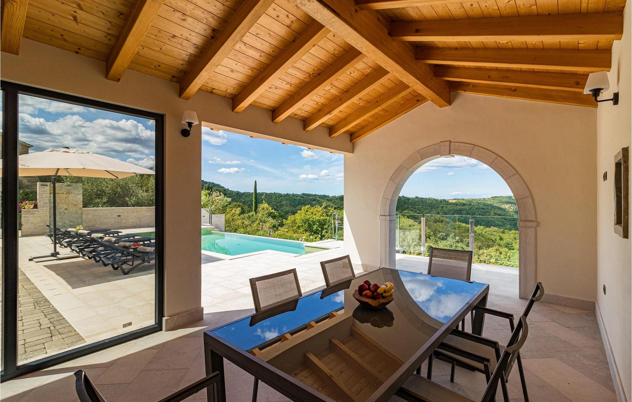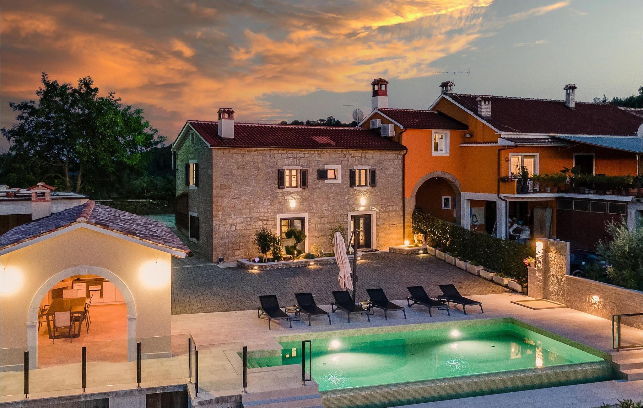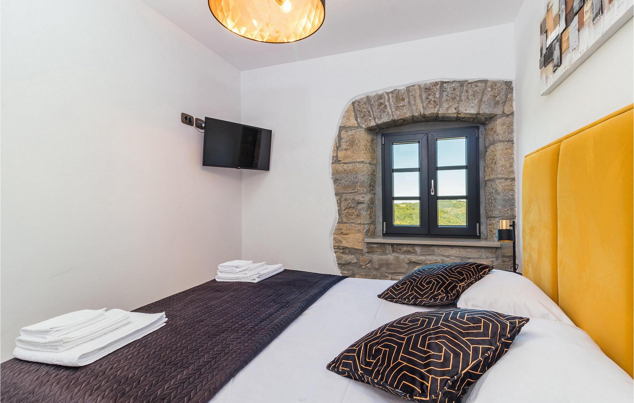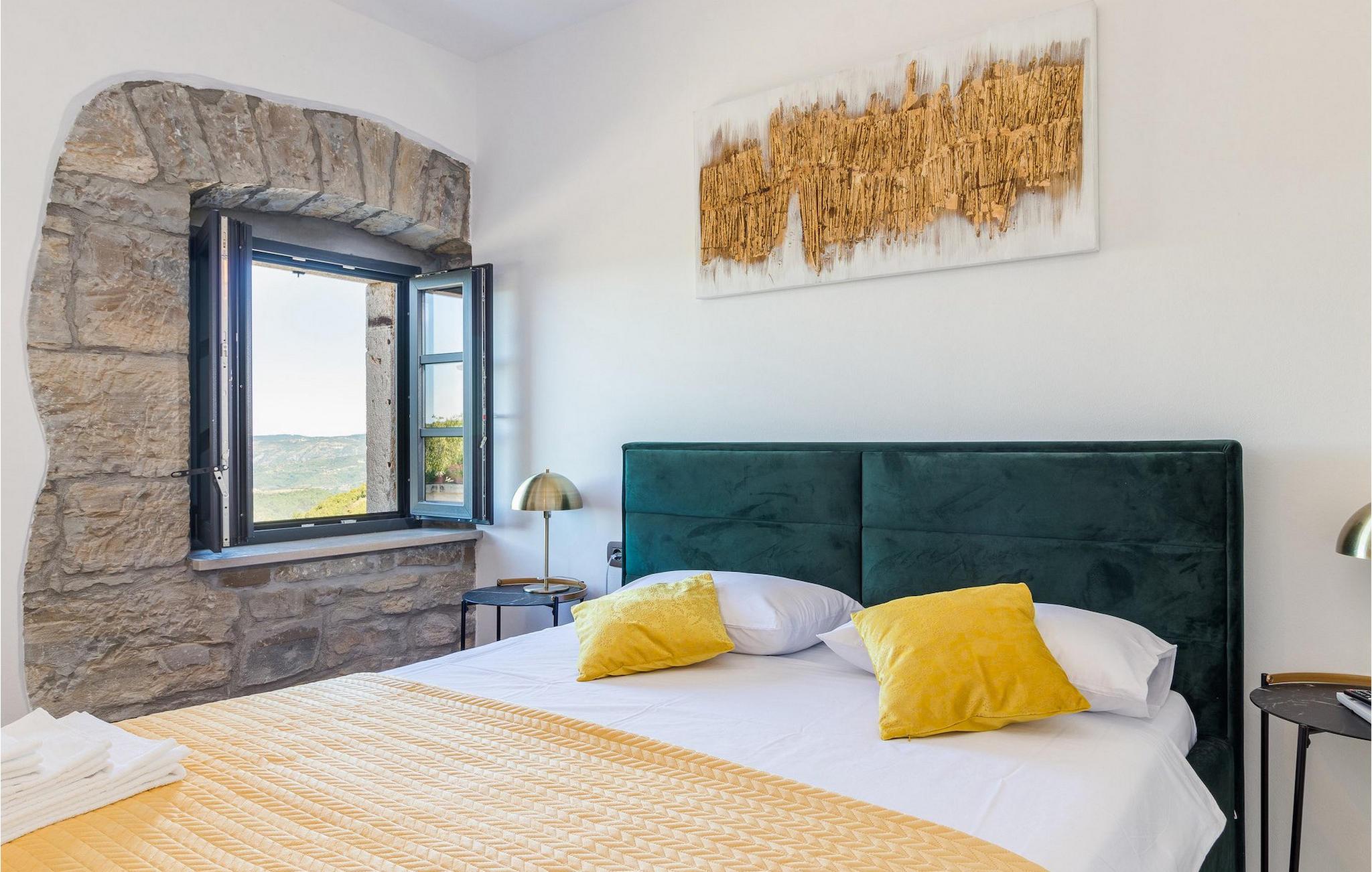 Drømmer du om en smuk villa i en idyllisk, lille landsby i det centrale Istrien, omgivet af milde bakker og natur? Villa Grazia vil gøre dine drømme til virkelighed. Dette unikke feriehus blev tidligere brugt som landbrugsbygning og blev renoveret med stor kærlighed og sans for detaljer i 2021. Det kan rumme op til seks personer og har tre soveværelser med eget badeværelse, en stue og et køkken med spiseplads areal. De tre stilfuldt indrettede soveværelser er på første sal, mens det åbne koncept stue, spisestue og køkken er i stueetagen. Det er tydeligt ved første øjekast, at Villa Grazia blev indrettet med stor omhu og sans for detaljer. De elegante, moderne møbler og de mange antikke elementer i træ og sten passer perfekt sammen og giver dette feriehus en helt unik atmosfære. I villaens udendørsområde er der en 32 kvadratmeter stor privat infinity-pool, hvorfra der er en betagende udsigt over det bakkede istriske landskab. Her kan du lade tankerne få frit løb og lade batterierne op. For de yngste gæster er der en legeplads udendørs. Hvis du har lyst til at teste dine kulinariske færdigheder og prøve nogle af de mange regionale delikatesser, kan du gøre det i det fuldt udstyrede udekøkken. Ejendommen er helt lukket og har tre parkeringspladser. Book Villa Grazia og lav minder, der vil vare hele livet!