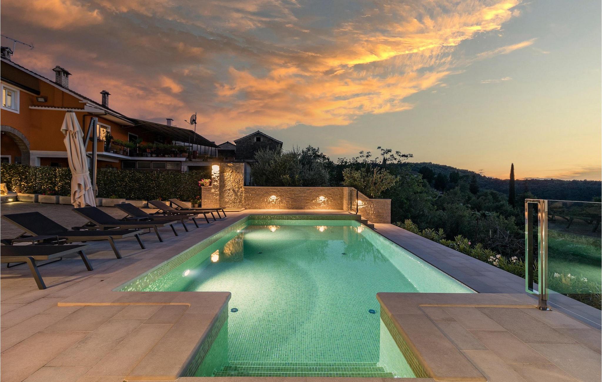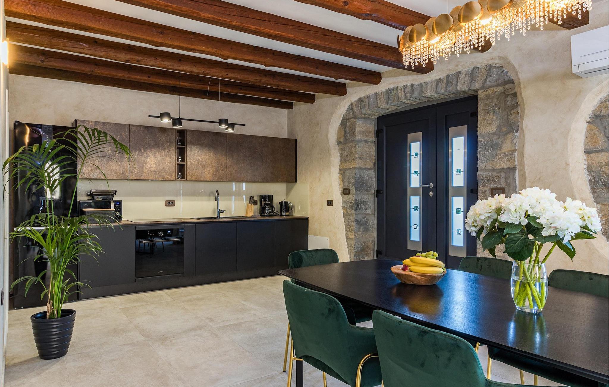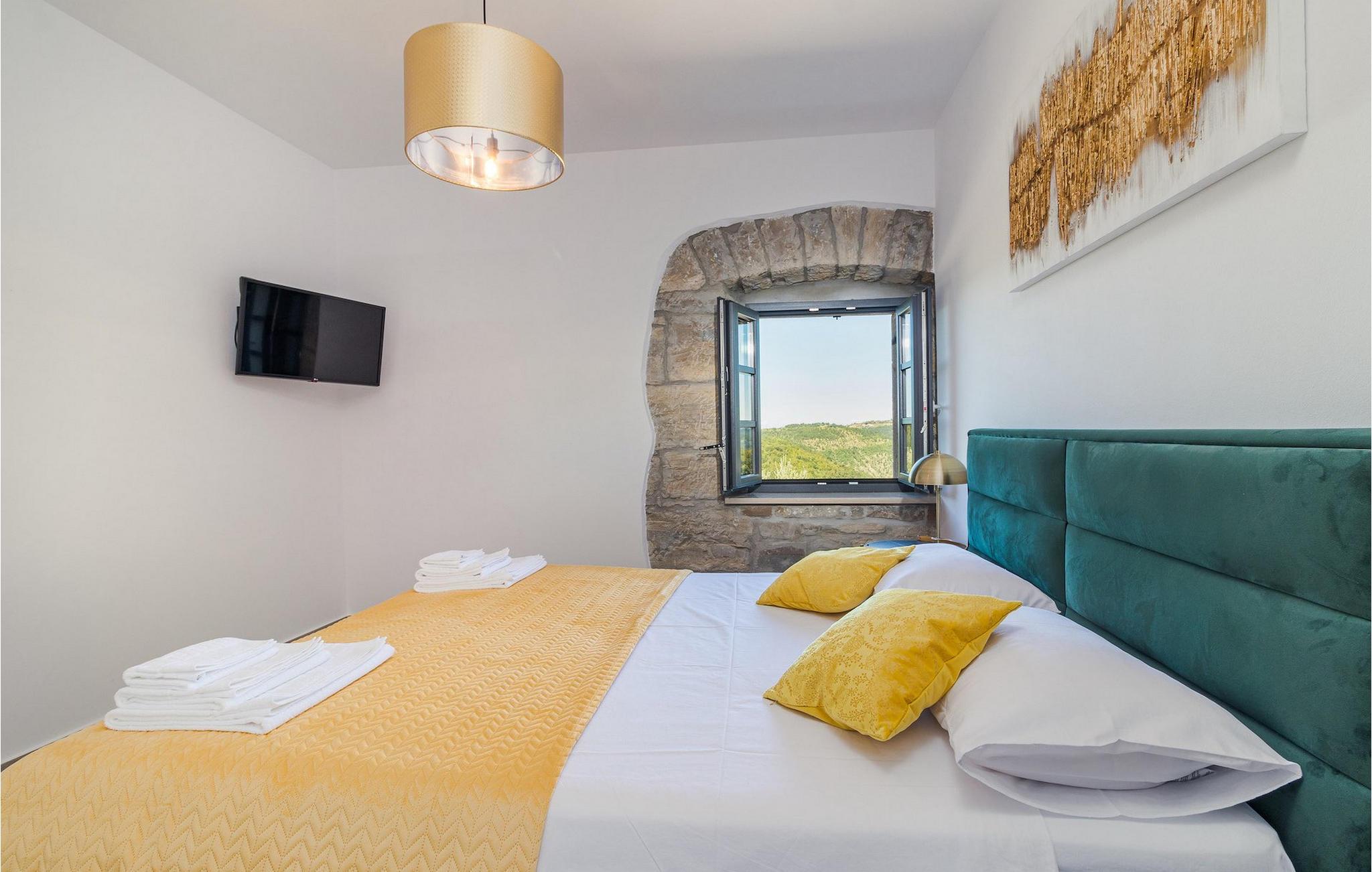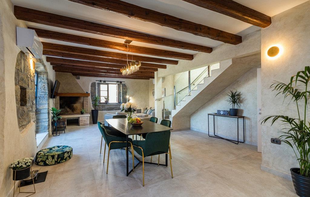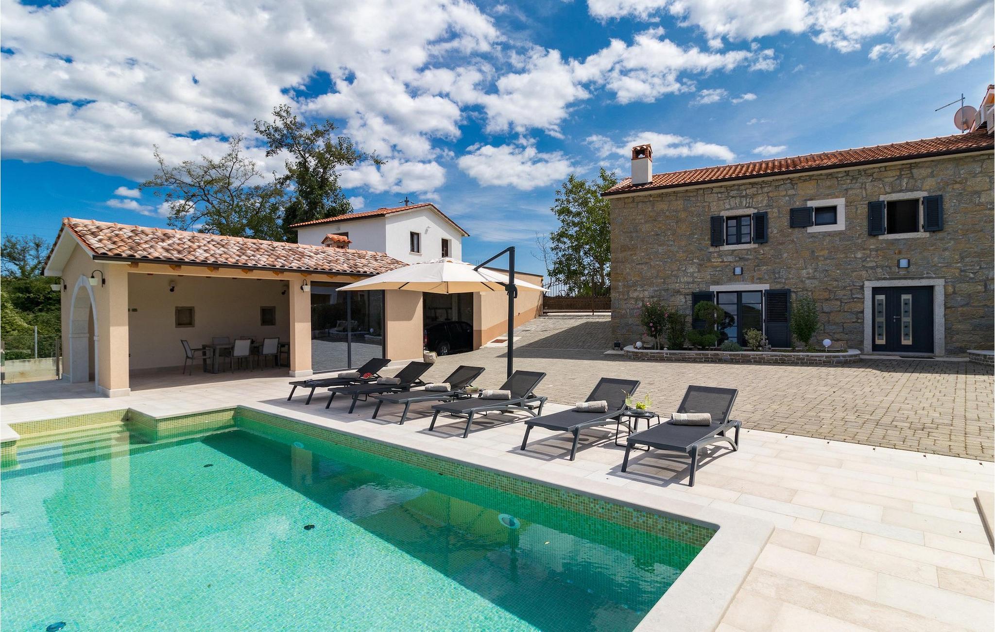 Drømmer du om en smuk villa i en idyllisk, lille landsby i det centrale Istrien, omgivet af milde bakker og natur? Villa Grazia vil gøre dine drømme til virkelighed. Dette unikke feriehus blev tidligere brugt som landbrugsbygning og blev renoveret med stor kærlighed og sans for detaljer i 2021. Det kan rumme op til seks personer og har tre soveværelser med eget badeværelse, en stue og et køkken med spiseplads areal. De tre stilfuldt indrettede soveværelser er på første sal, mens det åbne koncept stue, spisestue og køkken er i stueetagen. Det er tydeligt ved første øjekast, at Villa Grazia blev indrettet med stor omhu og sans for detaljer. De elegante, moderne møbler og de mange antikke elementer i træ og sten passer perfekt sammen og giver dette feriehus en helt unik atmosfære. I villaens udendørsområde er der en 32 kvadratmeter stor privat infinity-pool, hvorfra der er en betagende udsigt over det bakkede istriske landskab. Her kan du lade tankerne få frit løb og lade batterierne op. For de yngste gæster er der en legeplads udendørs. Hvis du har lyst til at teste dine kulinariske færdigheder og prøve nogle af de mange regionale delikatesser, kan du gøre det i det fuldt udstyrede udekøkken. Ejendommen er helt lukket og har tre parkeringspladser. Book Villa Grazia og lav minder, der vil vare hele livet!
