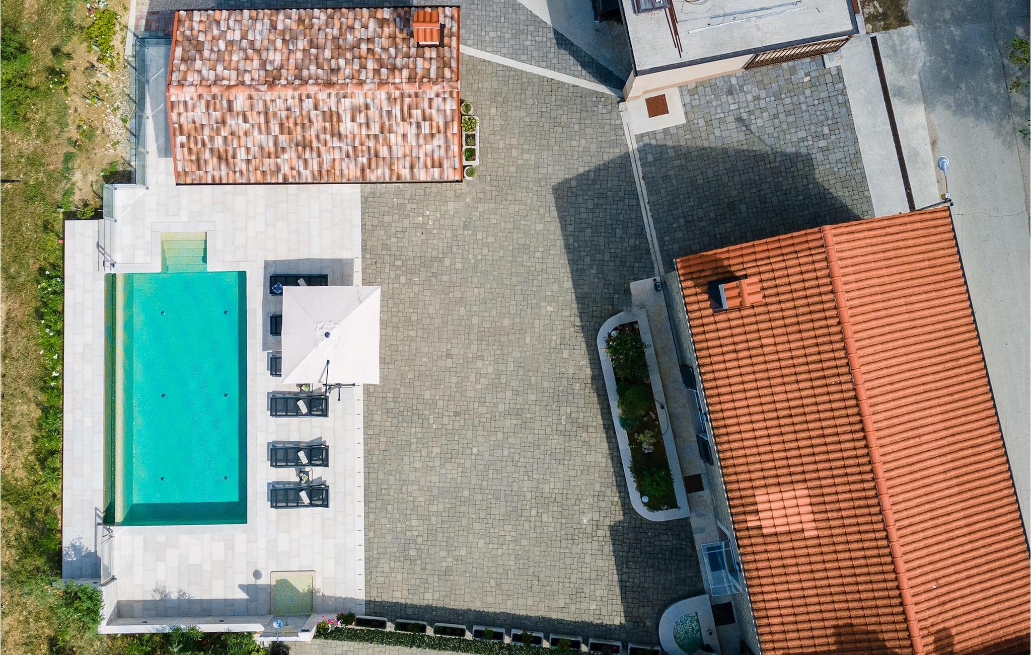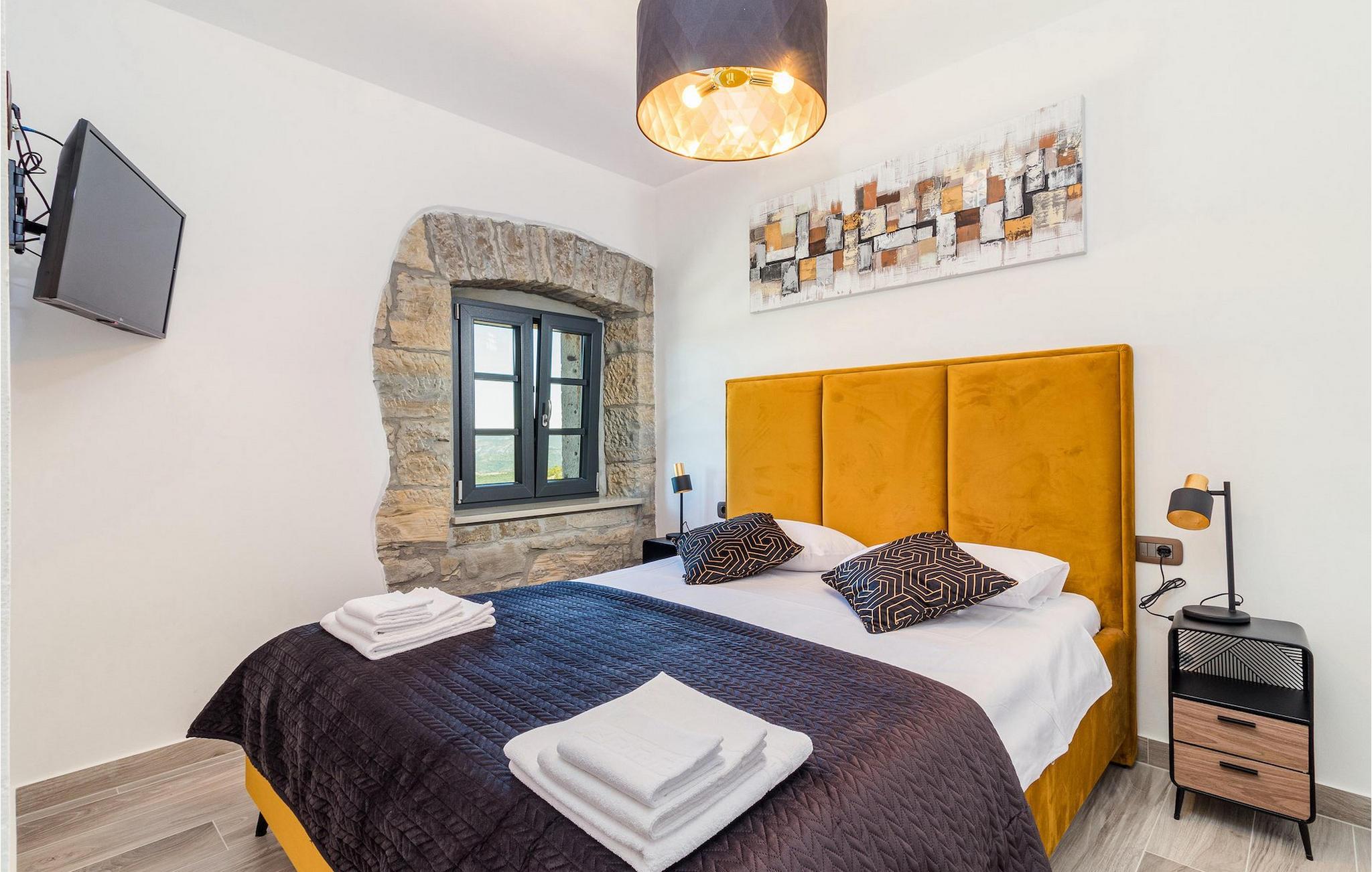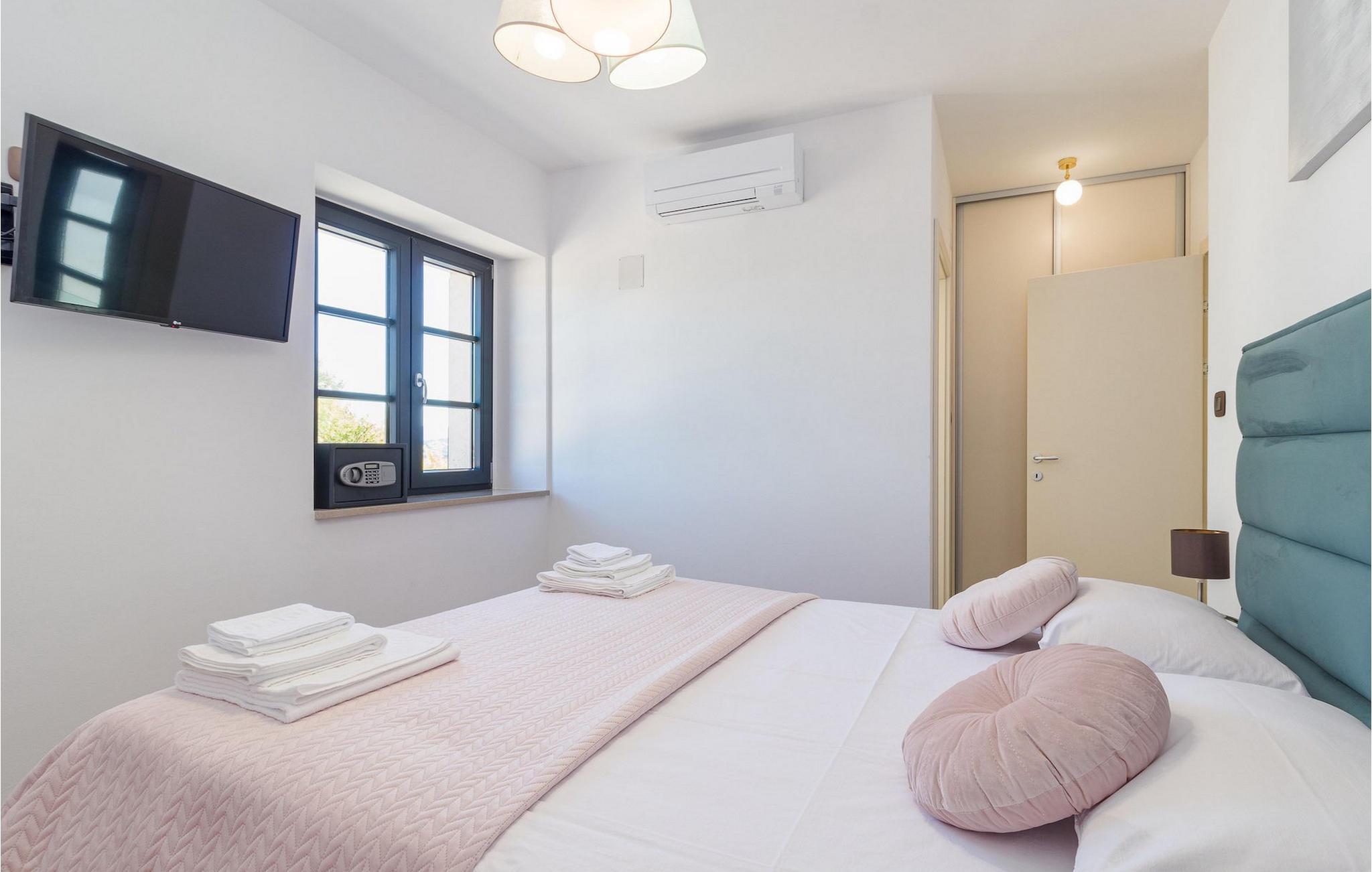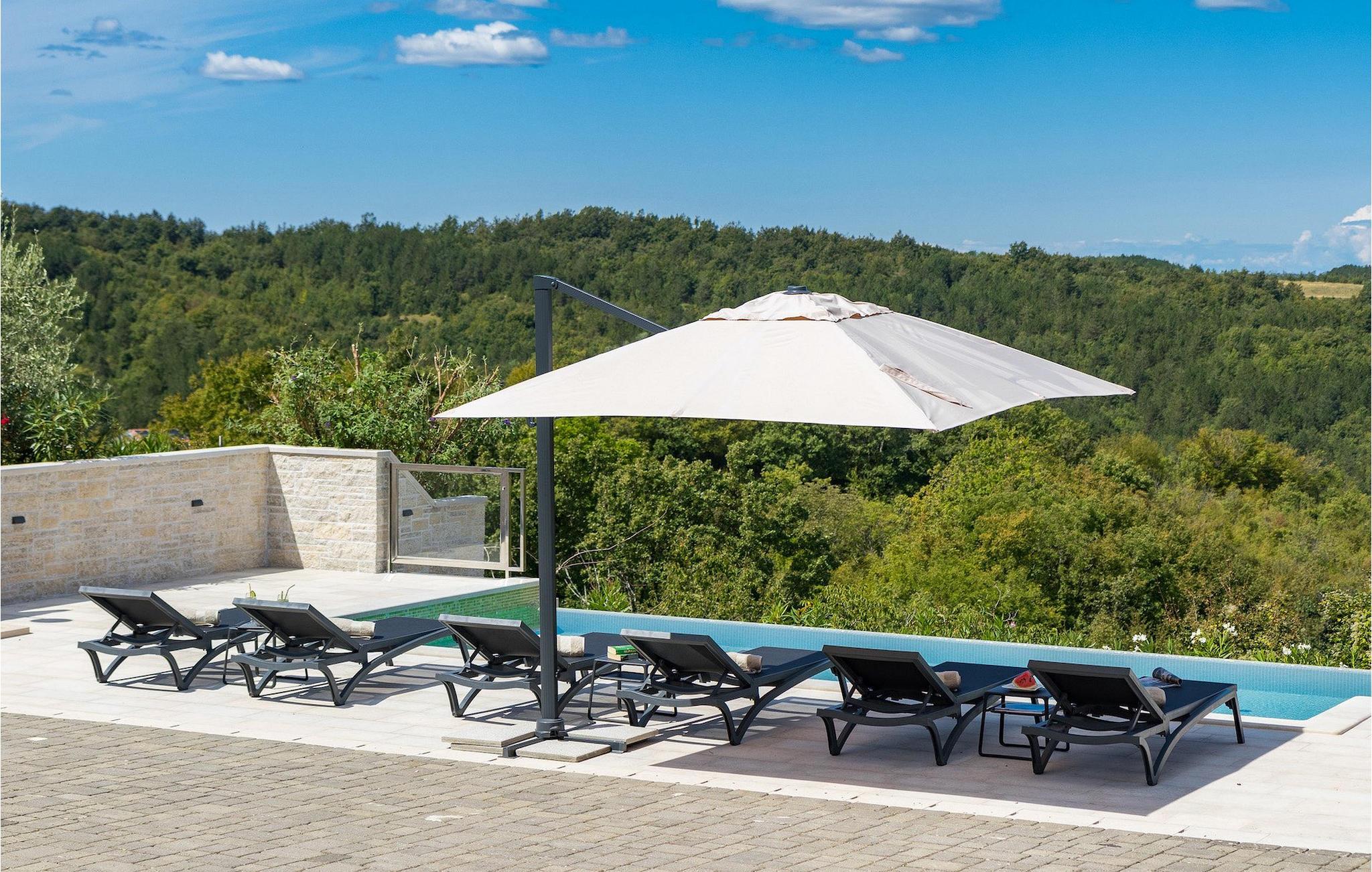 Drømmer du om en smuk villa i en idyllisk, lille landsby i det centrale Istrien, omgivet af milde bakker og natur? Villa Grazia vil gøre dine drømme til virkelighed. Dette unikke feriehus blev tidligere brugt som landbrugsbygning og blev renoveret med stor kærlighed og sans for detaljer i 2021. Det kan rumme op til seks personer og har tre soveværelser med eget badeværelse, en stue og et køkken med spiseplads areal. De tre stilfuldt indrettede soveværelser er på første sal, mens det åbne koncept stue, spisestue og køkken er i stueetagen. Det er tydeligt ved første øjekast, at Villa Grazia blev indrettet med stor omhu og sans for detaljer. De elegante, moderne møbler og de mange antikke elementer i træ og sten passer perfekt sammen og giver dette feriehus en helt unik atmosfære. I villaens udendørsområde er der en 32 kvadratmeter stor privat infinity-pool, hvorfra der er en betagende udsigt over det bakkede istriske landskab. Her kan du lade tankerne få frit løb og lade batterierne op. For de yngste gæster er der en legeplads udendørs. Hvis du har lyst til at teste dine kulinariske færdigheder og prøve nogle af de mange regionale delikatesser, kan du gøre det i det fuldt udstyrede udekøkken. Ejendommen er helt lukket og har tre parkeringspladser. Book Villa Grazia og lav minder, der vil vare hele livet!