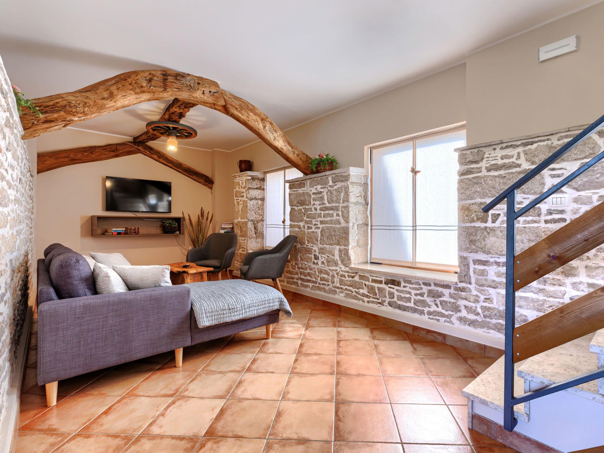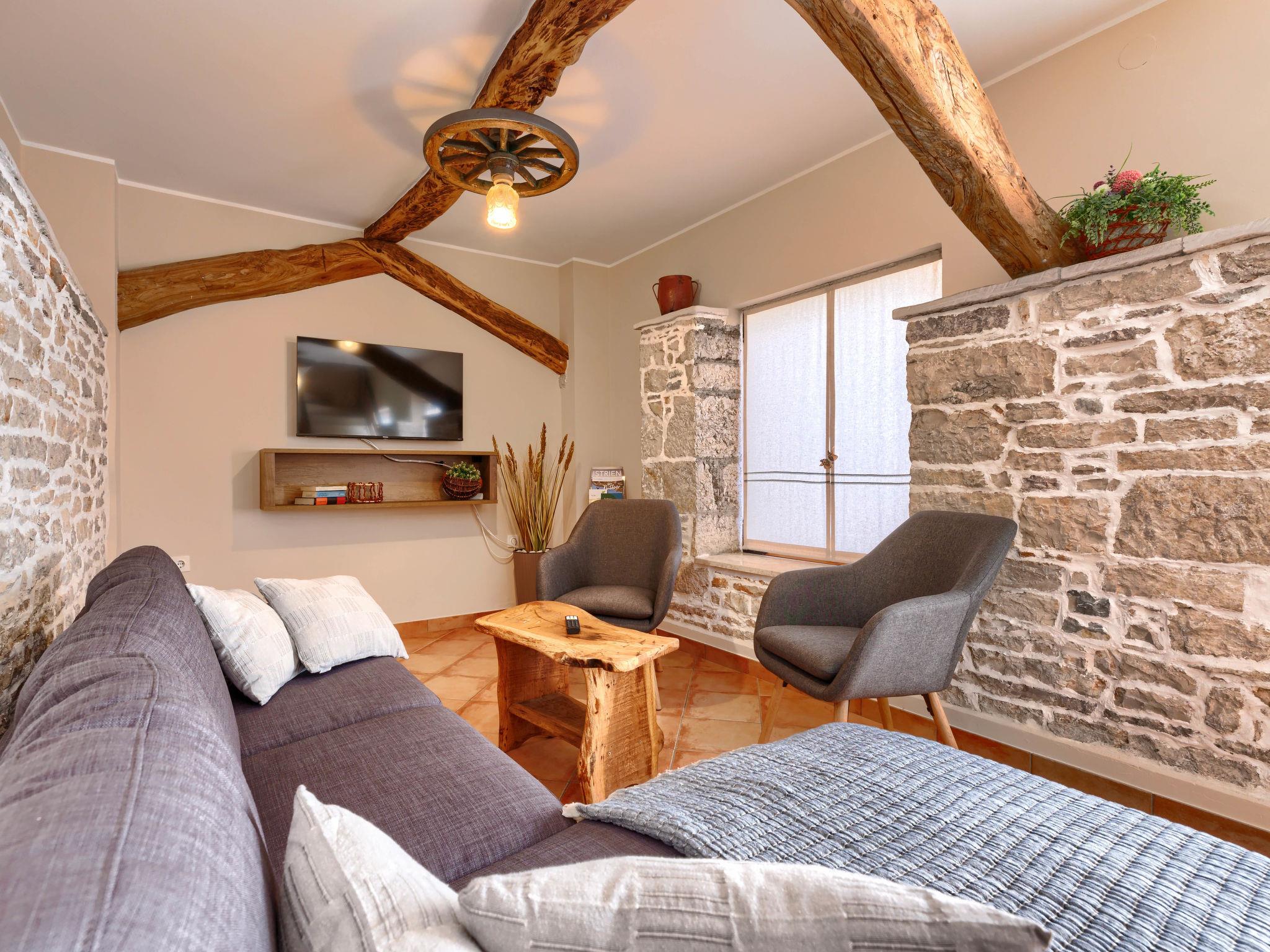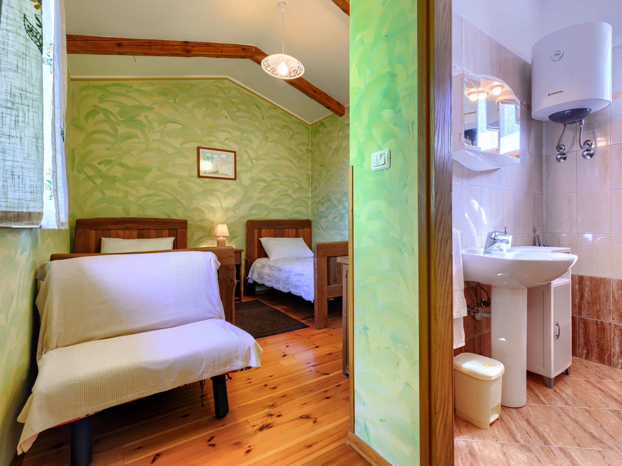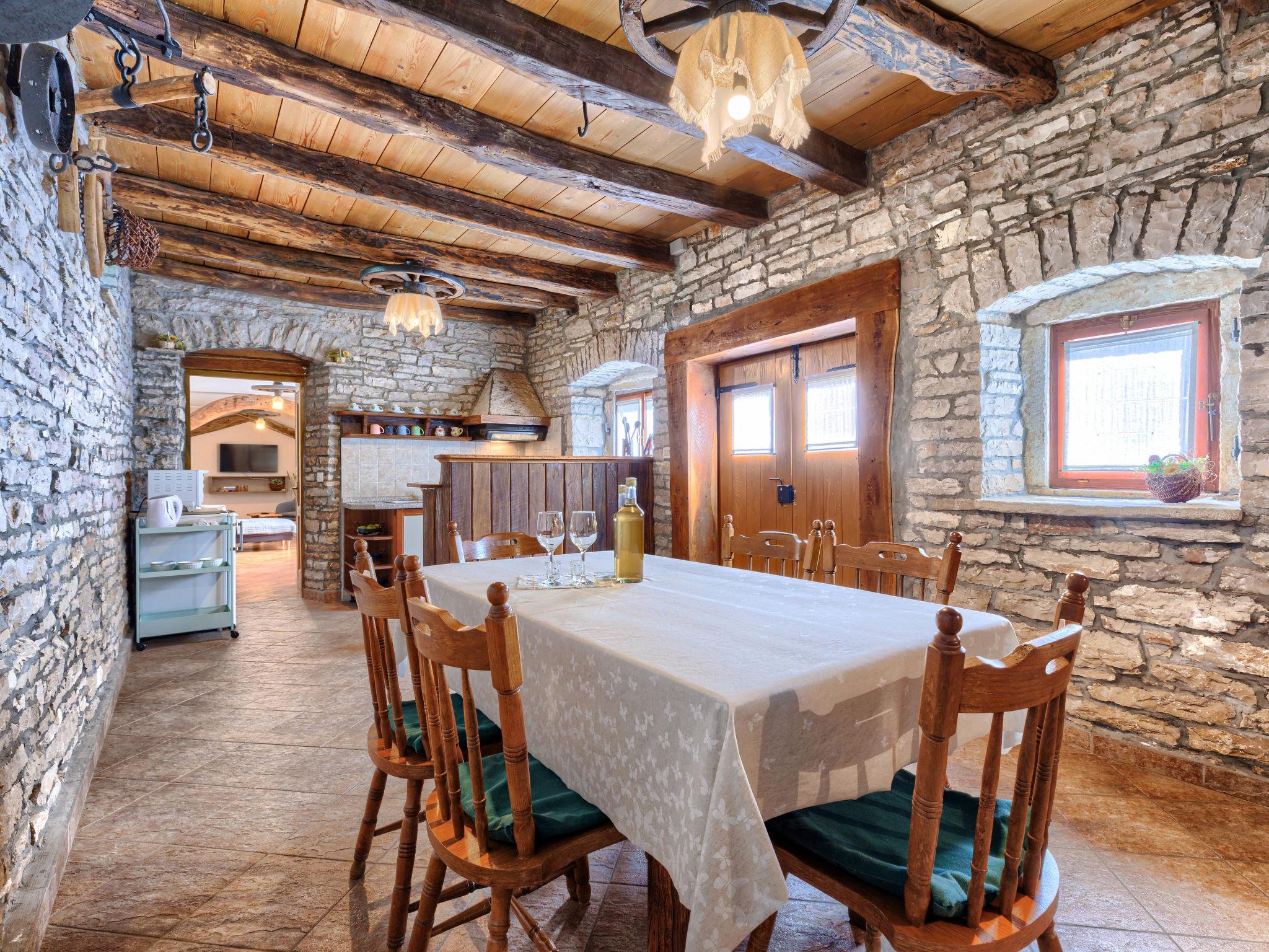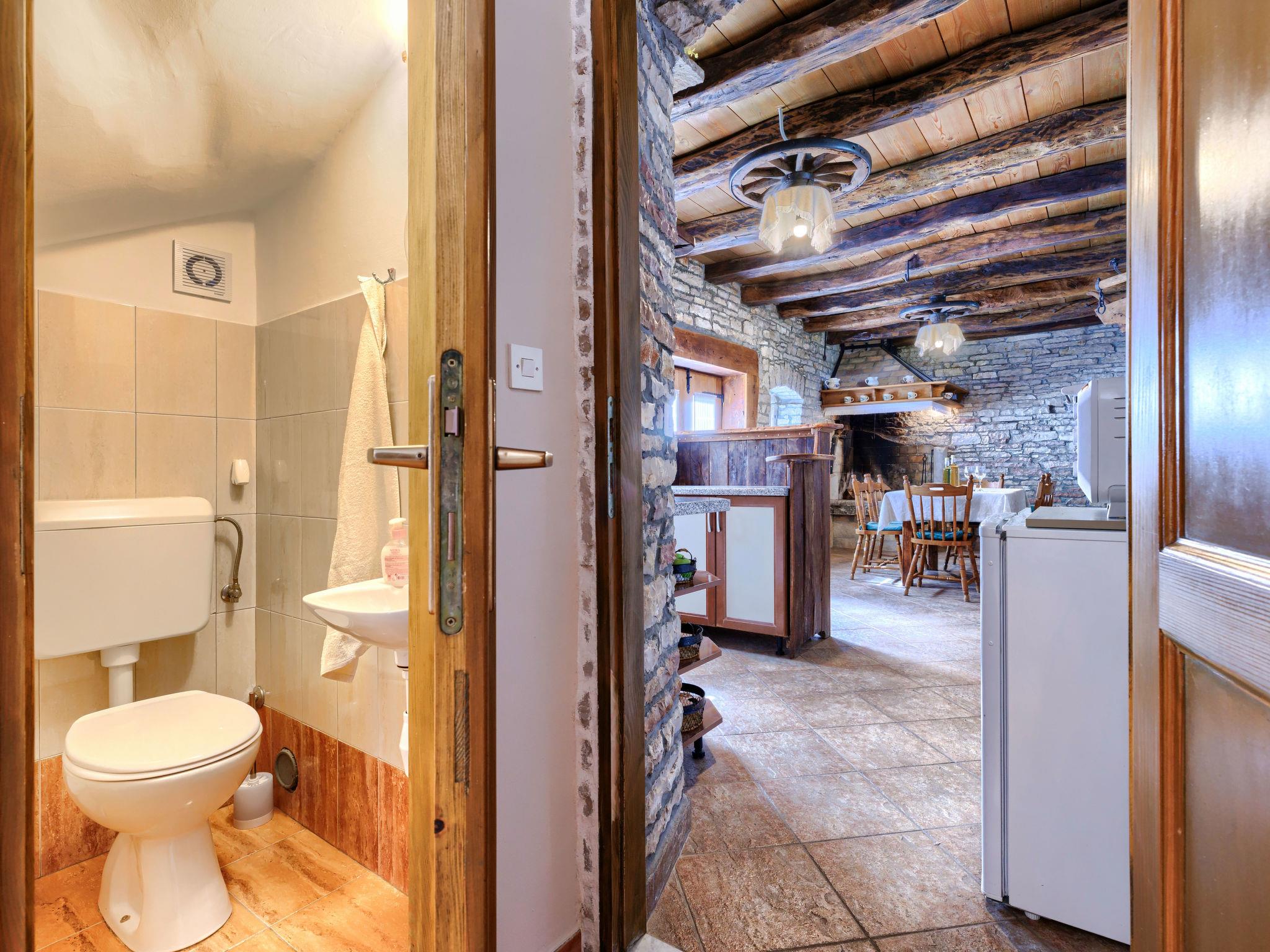 Single-family house "Narcis", 2 storeys. 8 km from the centre of Pazin, 9 km from the centre of Žminj, 30 km from the centre of Porec, 30 km from the sea. For shared use: property 1'000 m2 with plants and trees. In the house: internet access, washing machine (for shared use, extra). Parking (for 3 cars) on the premises. Shop 2.5 km, supermarket 6 km, restaurant 3 km, bus stop 8 km, pebble beach 30 km. Marina 30 km. Please note: the owner lives on the same property. The owner has a dog. Animals in the neighbourhood.