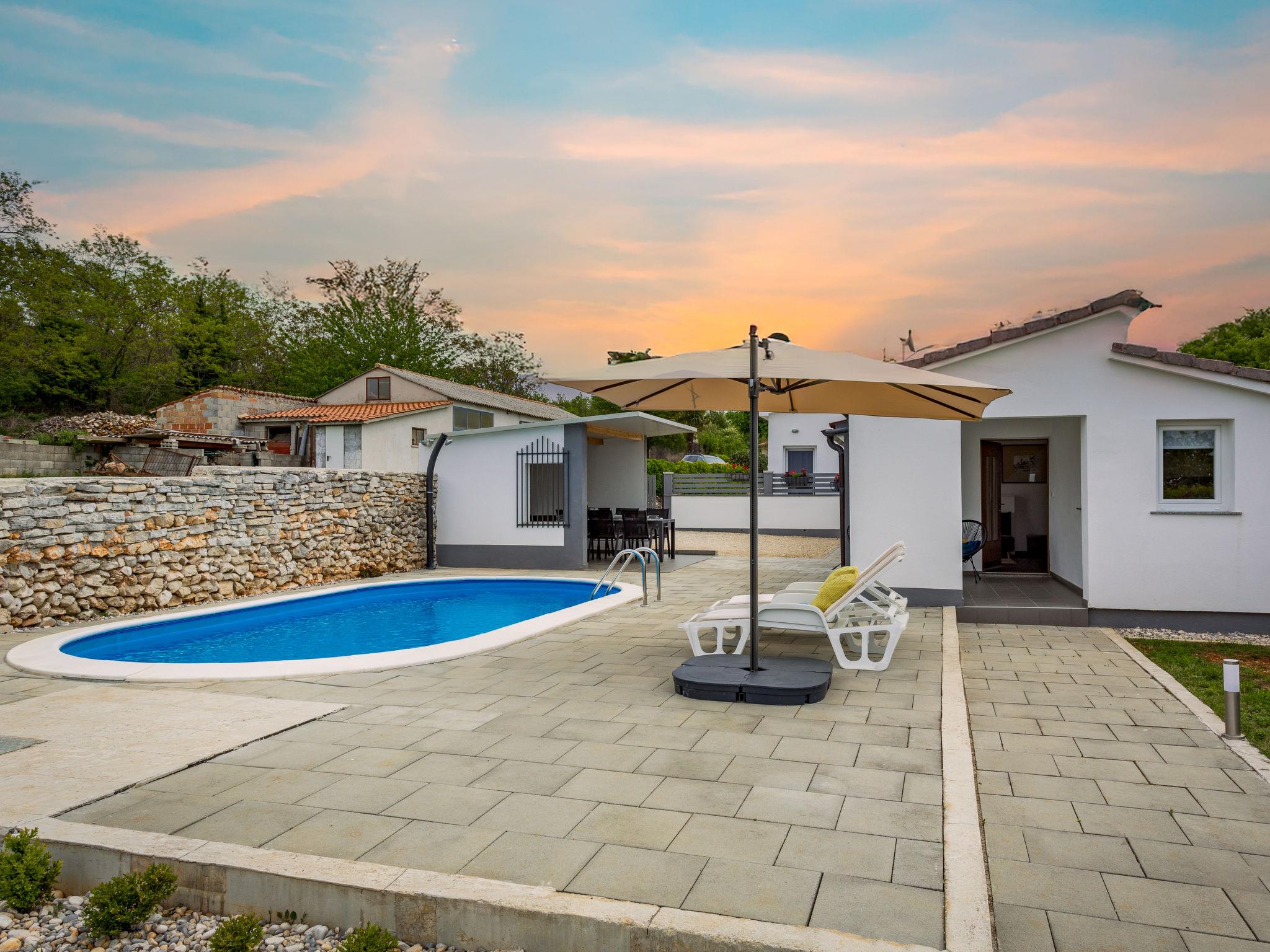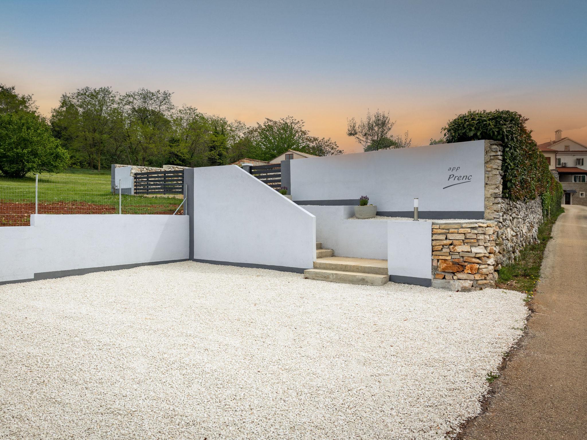 Semi-detached house "Prenc", renovated in 2021. In the hamlet Glavica 2 km from the centre of Sveti Petar u Šumi, 8 km from the centre of Pazin, 25 km from the sea. Private: property 700 m2 (fenced) with lawn, swimming pool (7 x 3 m, 27 m2, depth 150 cm, seasonal availability: 16.May. - 19.Sep.). Outdoor shower, terrace, garden furniture, barbecue. In the house: internet access, washing machine. Parking (for 2 cars) at the house on the premises. Shop 1.5 km, restaurant 2 km, bus stop 7.8 km, rocky beach 25 km. Private: outdoor kitchen (2 hot plates, refrigerator).