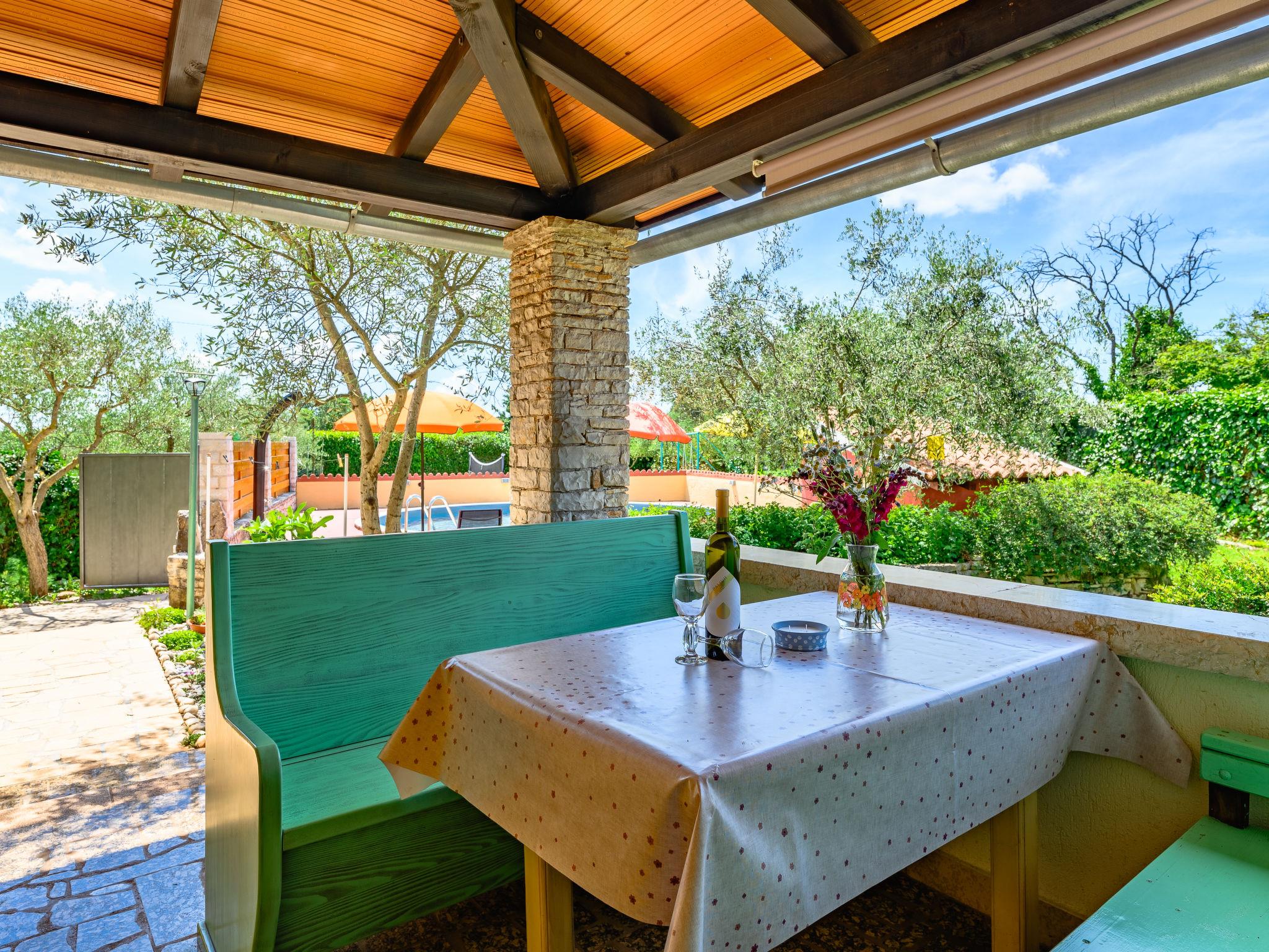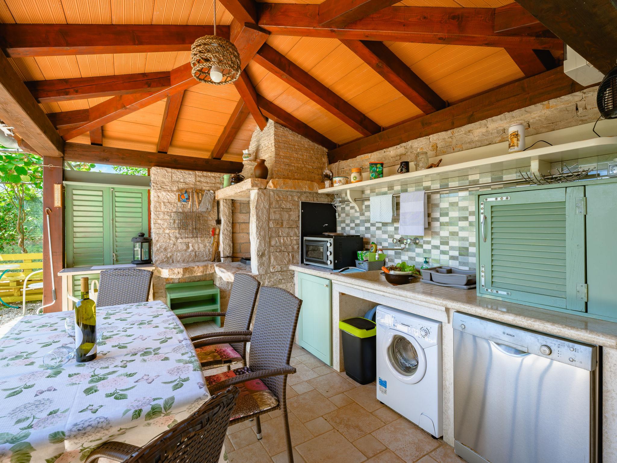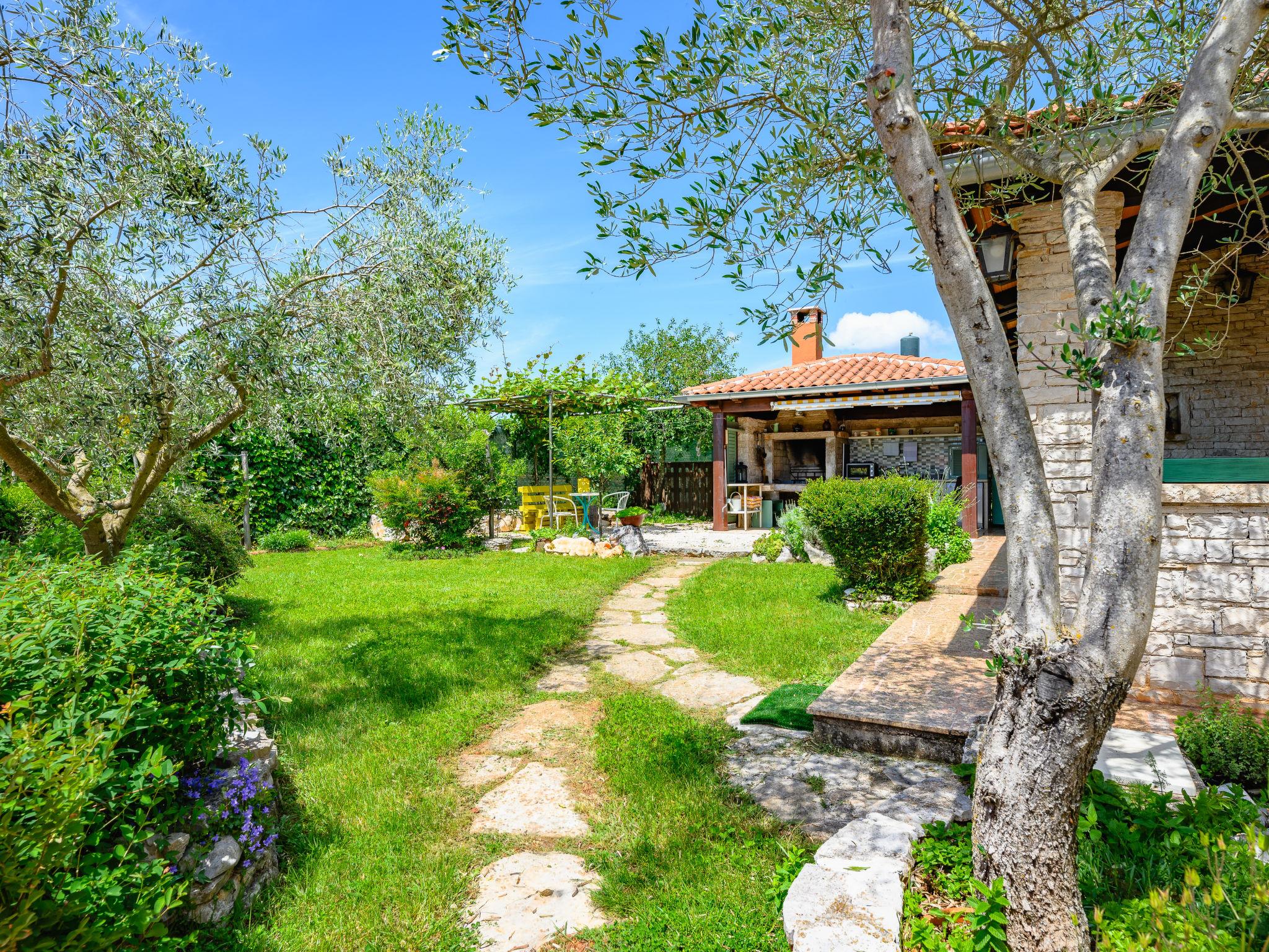 Semi-detached house "Pina". In the hamlet Muntrilj 15 km from the centre of Pazin, 4 km from the centre of Tinjan, 18 km from the centre of Porec, 18 km from the sea. For shared use: property 3'000 m2 with lawn and trees. Private: property 500 m2 (fenced) with lawn and wildlife garden, swimming pool round (38 m2, depth 120 cm, seasonal availability: 01.May. - 01.Oct.). Outdoor shower, boules, terrace, barbecue (swing), pool maintenance by the owner/gardener. In the house: internet access. Parking on the premises. Shop 4 km, supermarket 15 km, restaurant 4 km, bus stop 3.3 km, rocky beach 18 km. Marina 18 km. Please note: the owner lives in the same residence. Private: outdoor kitchen (2 hot plates).