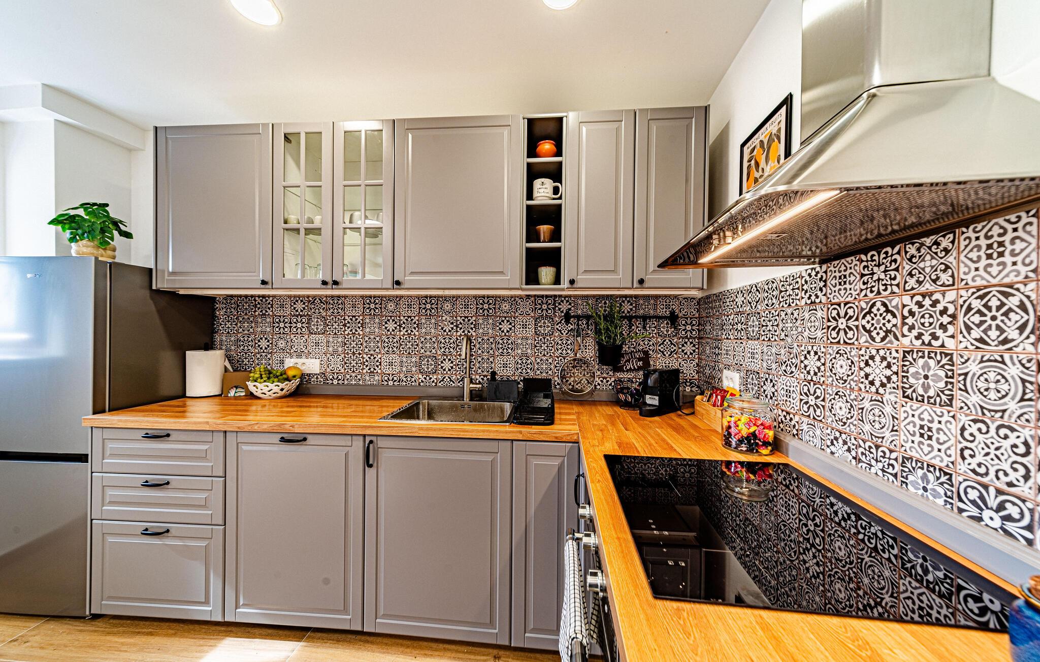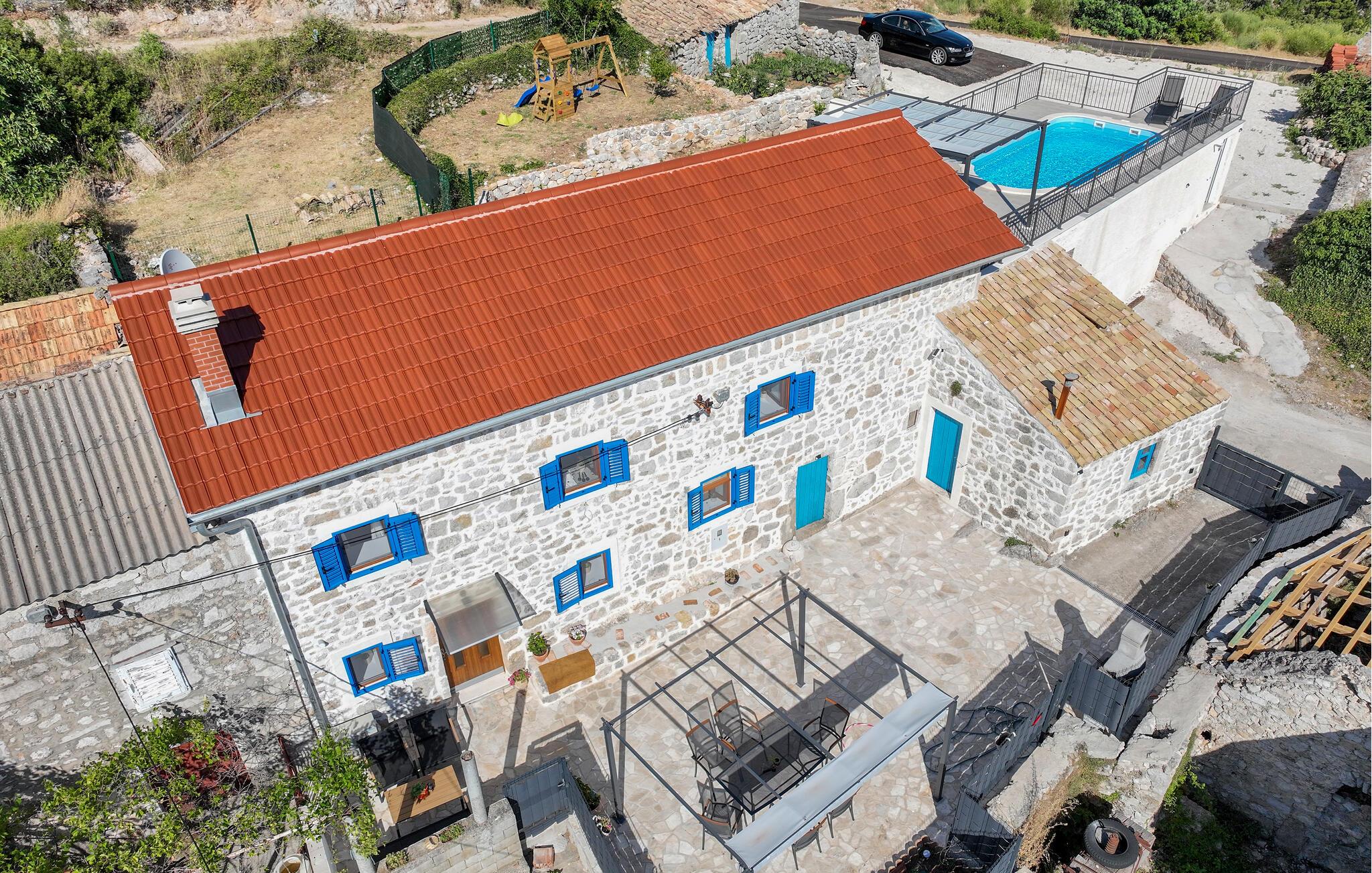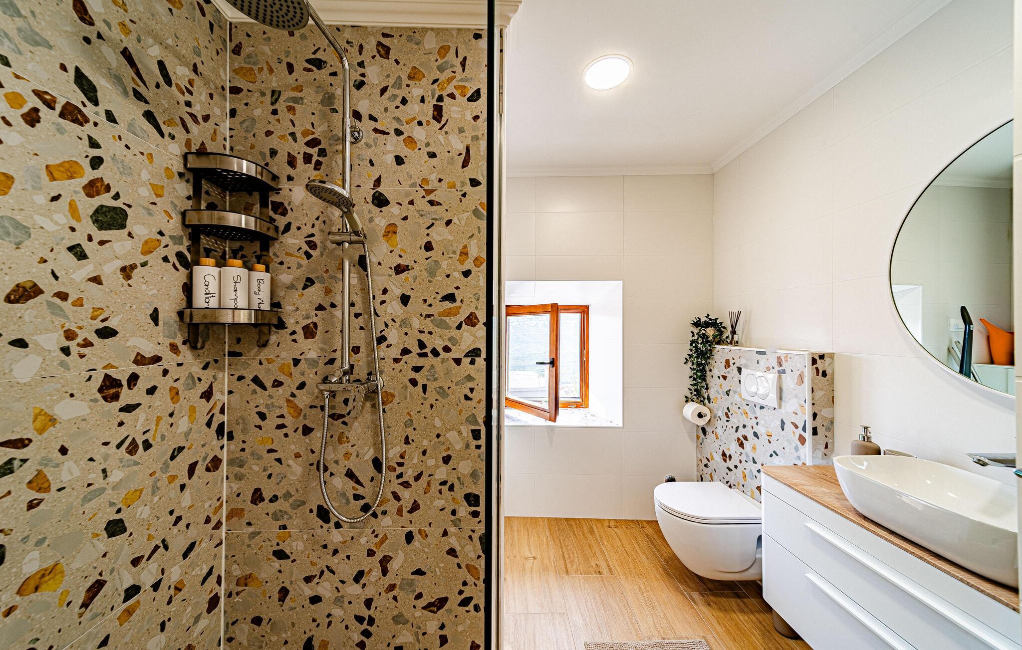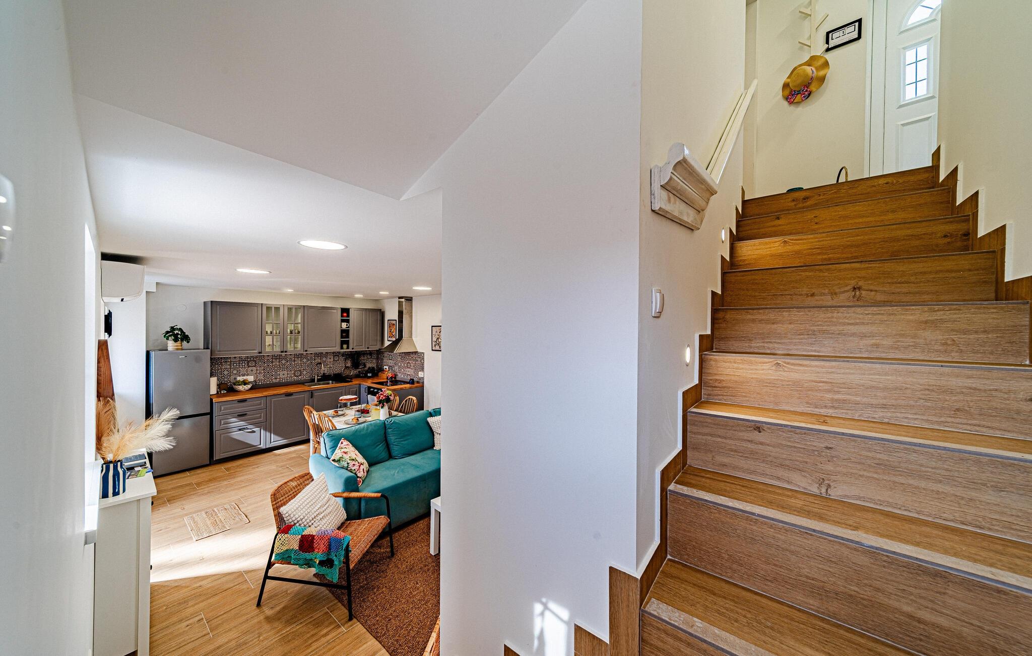 Dette smagfulde feriehus venter på jer på Pelješac-halvøen, hvor middelhavslivsstil og naturskøn afslapning går hånd i hånd. Nyd roen i jeres lille feriested med dens traditionelle karakter, og genoplad batterierne midt i de dalmatiske bakker. Gå ind i den smukke opholdsstue med et komfortabelt sofahjørne, stilfulde møbler og et stort tv-område. Brug den åbne indgang til det moderne køkken, som kan prale af fine detaljer, gennemtænkte apparater og et tilstødende spisebord, til fælles måltider.