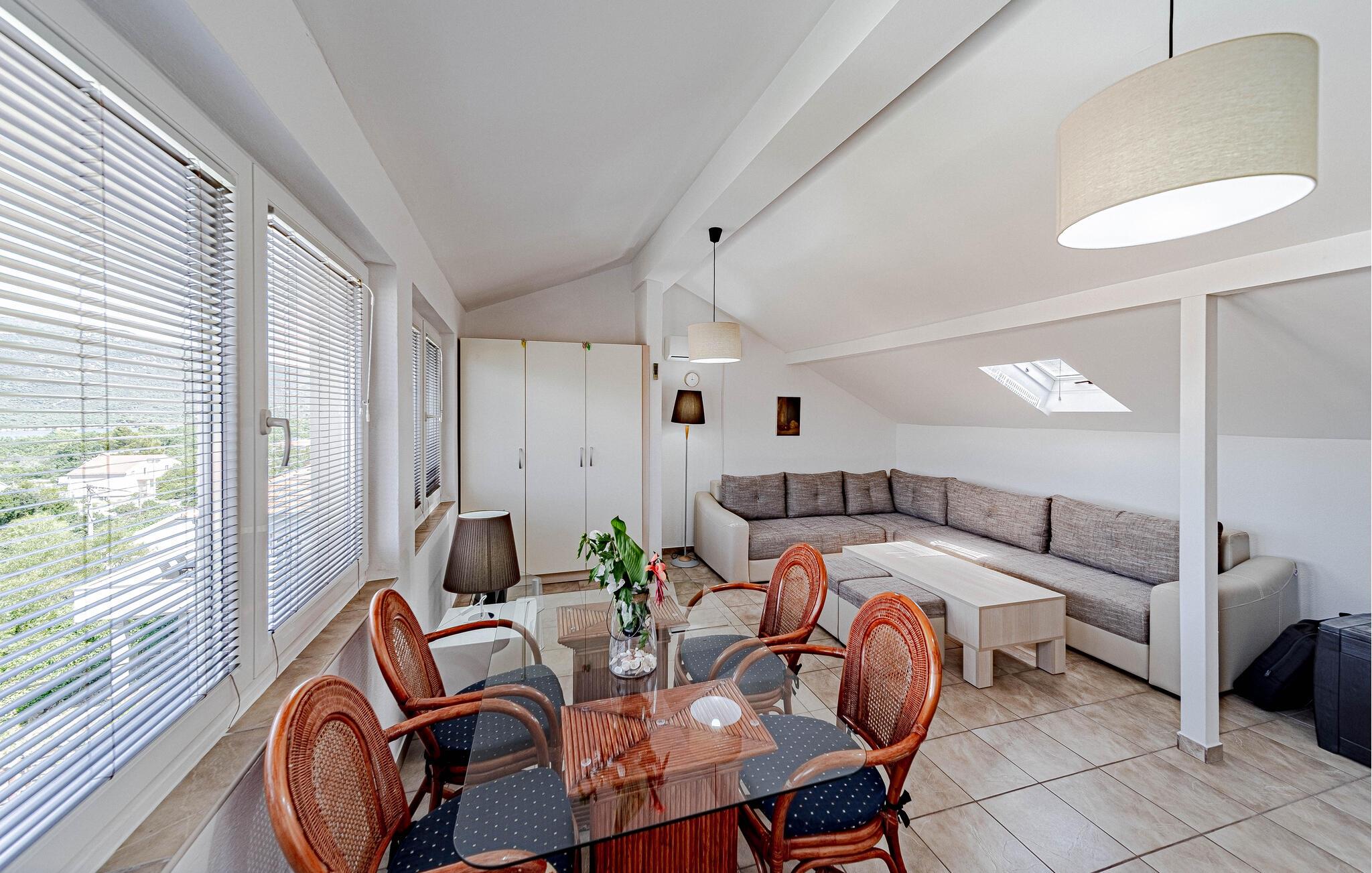 Huset ligger helt tæt på vandet så I nemt kan nyde en forfriskende dukkert i det krystalklare vand. Gå lange gåture langs kysten og hold pause ved de smukkeste steder på stranden med en vidunderlig udsigt. Udforsk området fra vandet af på små bådture til de omkringliggende. Peljesac-halvøen er bedst kendt for sin frodige planteliv og smukke bjergkæder.