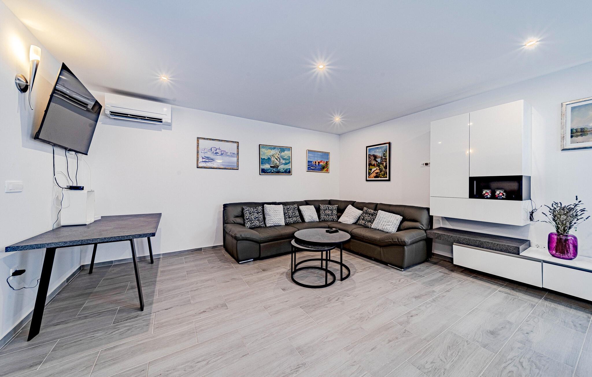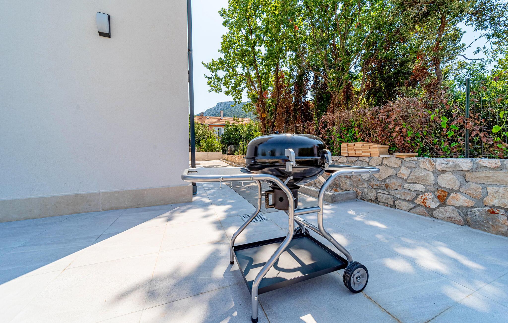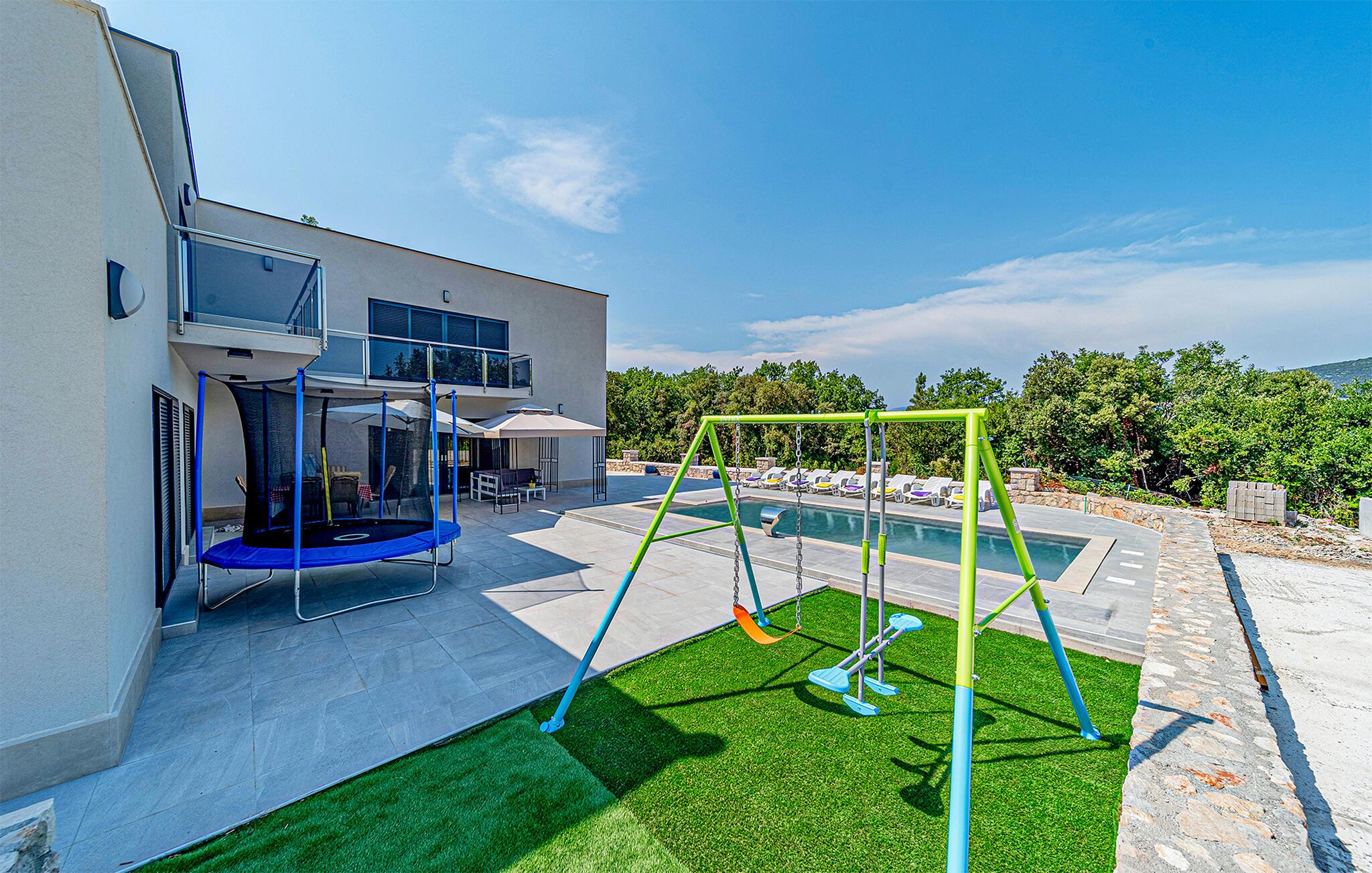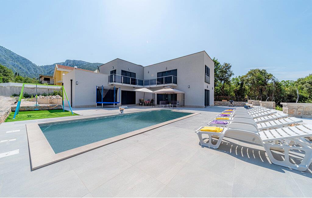 Dette vidunderlige feriehus på halvøen Peljesac giver jer en uforglemmelig ferie. Det smagfulde interiør er noget særligt med elegance og komfort, mens balkonen og tagterrassen byder på en betagende udsigt over det maleriske landskab og havet. Nyd afslappende timer på den rummelige terrasse ved poolen eller lad børnene udforske legepladsen. Hvert øjeblik her føles som et luksusophold, mens udlejernes varme gæstfrihed får jer til at føle jer hjemme.