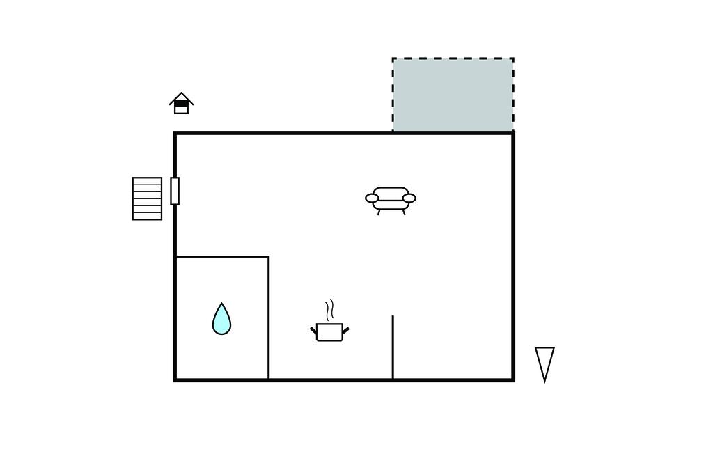 Opholdsstue/køkken 13m2 - 2 Sovepladser. (Dobbeltseng(e)).