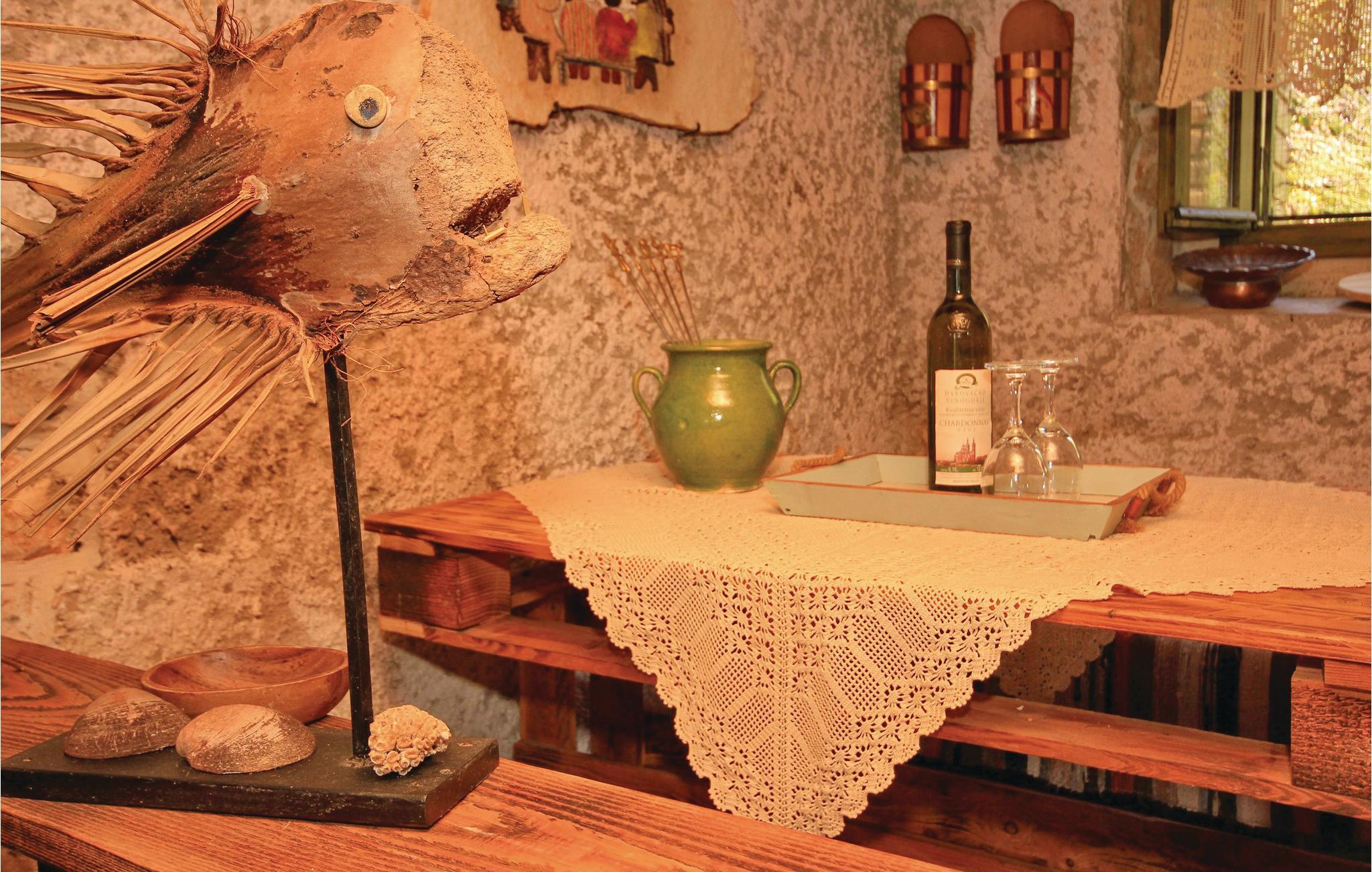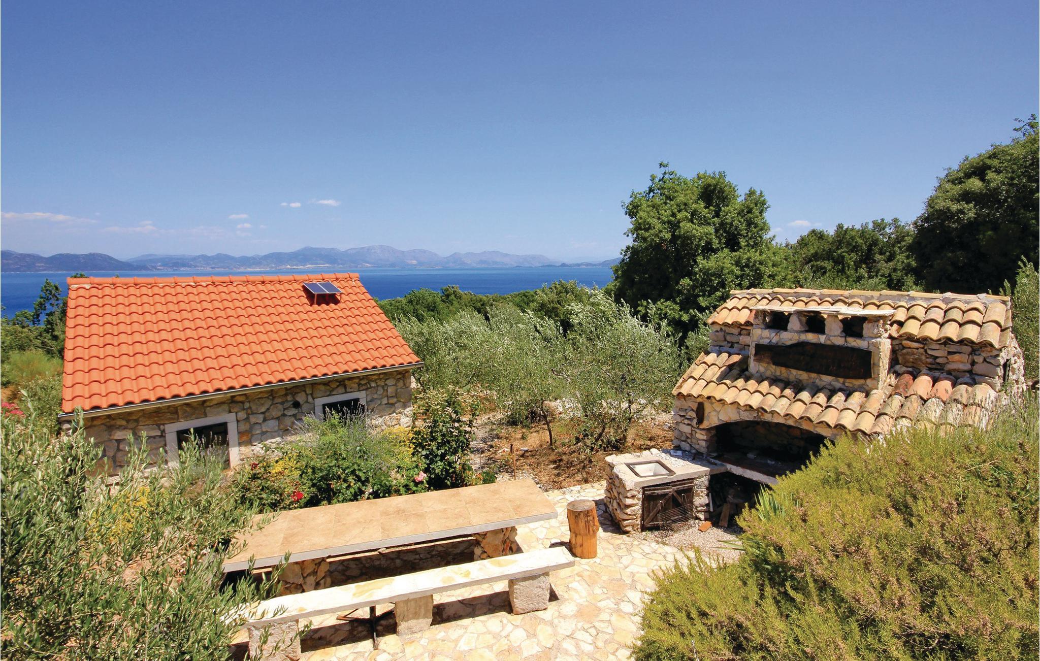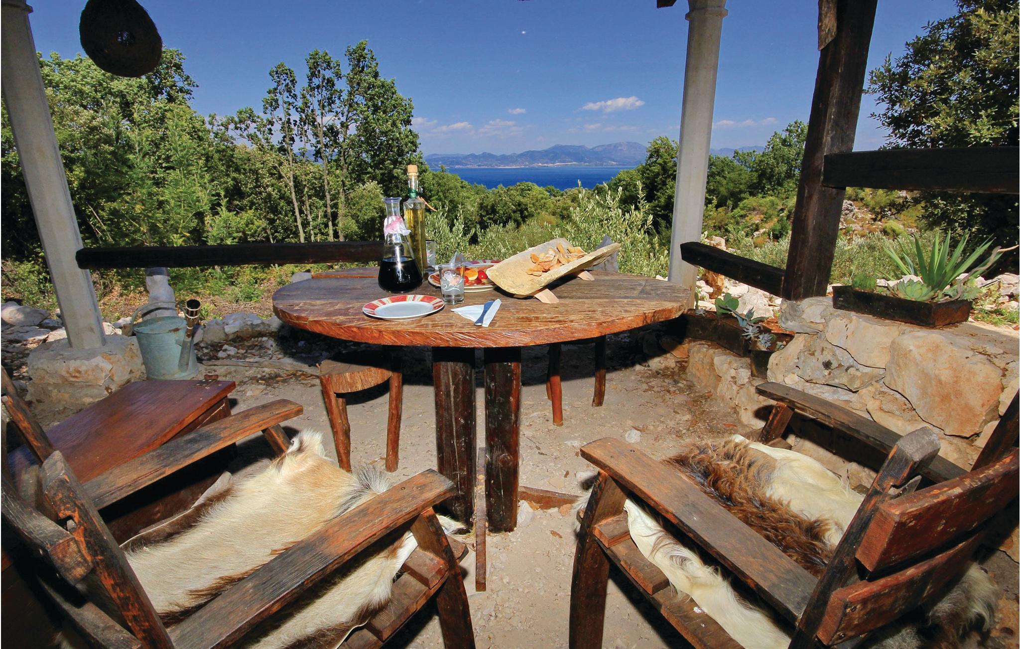 På en stor naturgrund fra en bakke og til havet, ligger dette rustikt indrettede hus af sten, der blev gennemrenoveret i 2004. Huset er meget miljøvenligt med kun solvarmeanlæg. Derfor er der begrænset brug af elektriske apparater. Her er et lille mobilt køleskab, men ingen fryser. Der er mobilt netværk på grunden, samt flere mindre terrasser. Mindste loftshøjde under taget er 10 cm. Foran havet løber en lille gangsti sømmet af buske til havet, hvor I kan slappe af og bade. Tilkørslen til huset er 300 m lang, uasfalteret og noget ujævn. Kajak til en person og et professionelt teleskop til rådighed.
