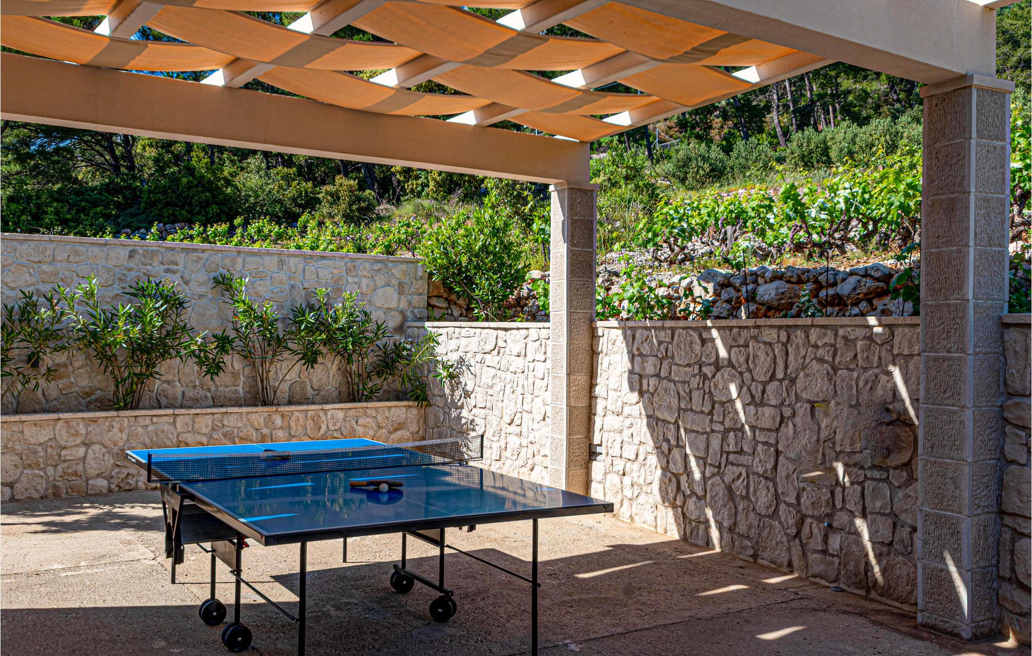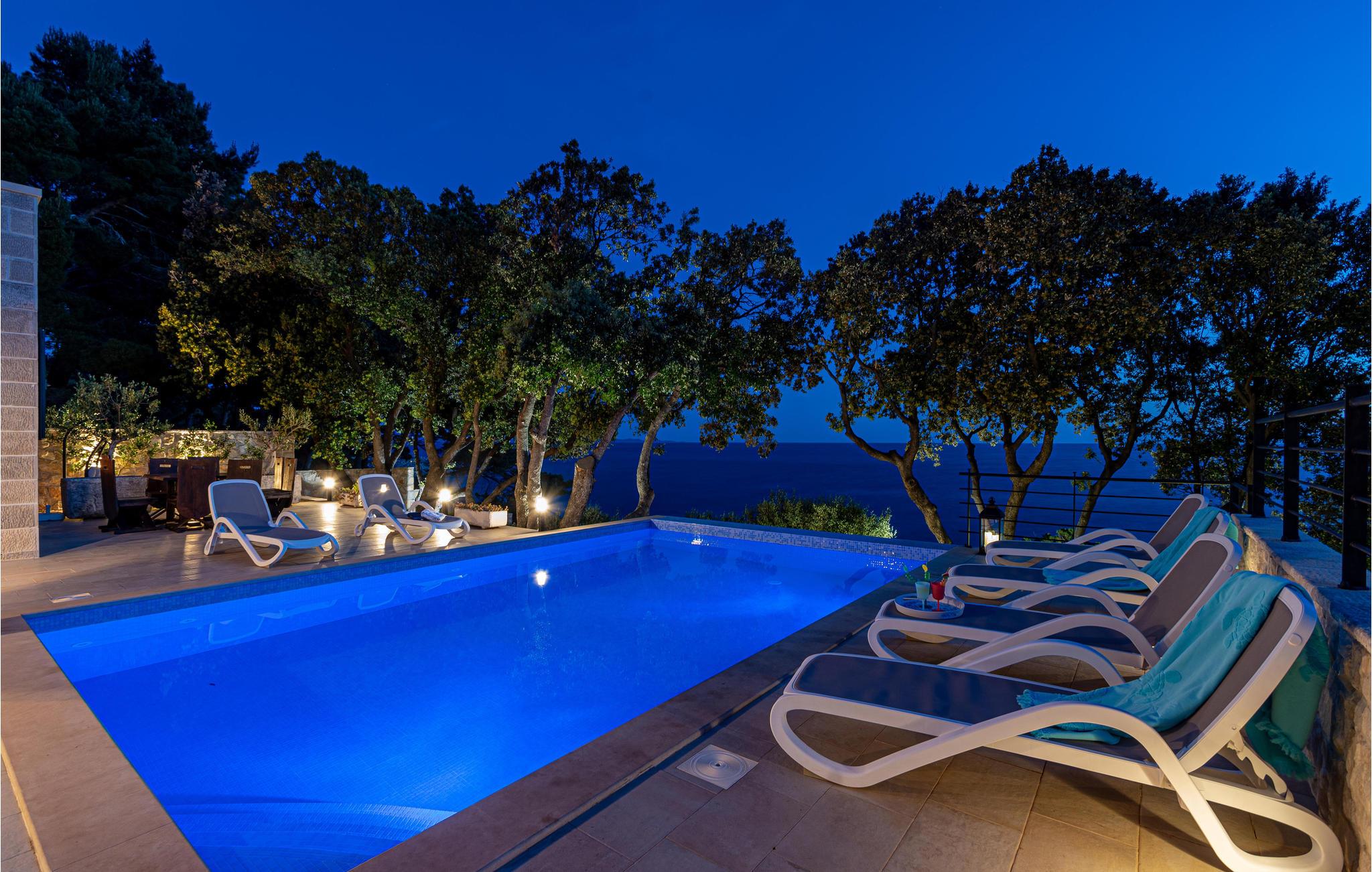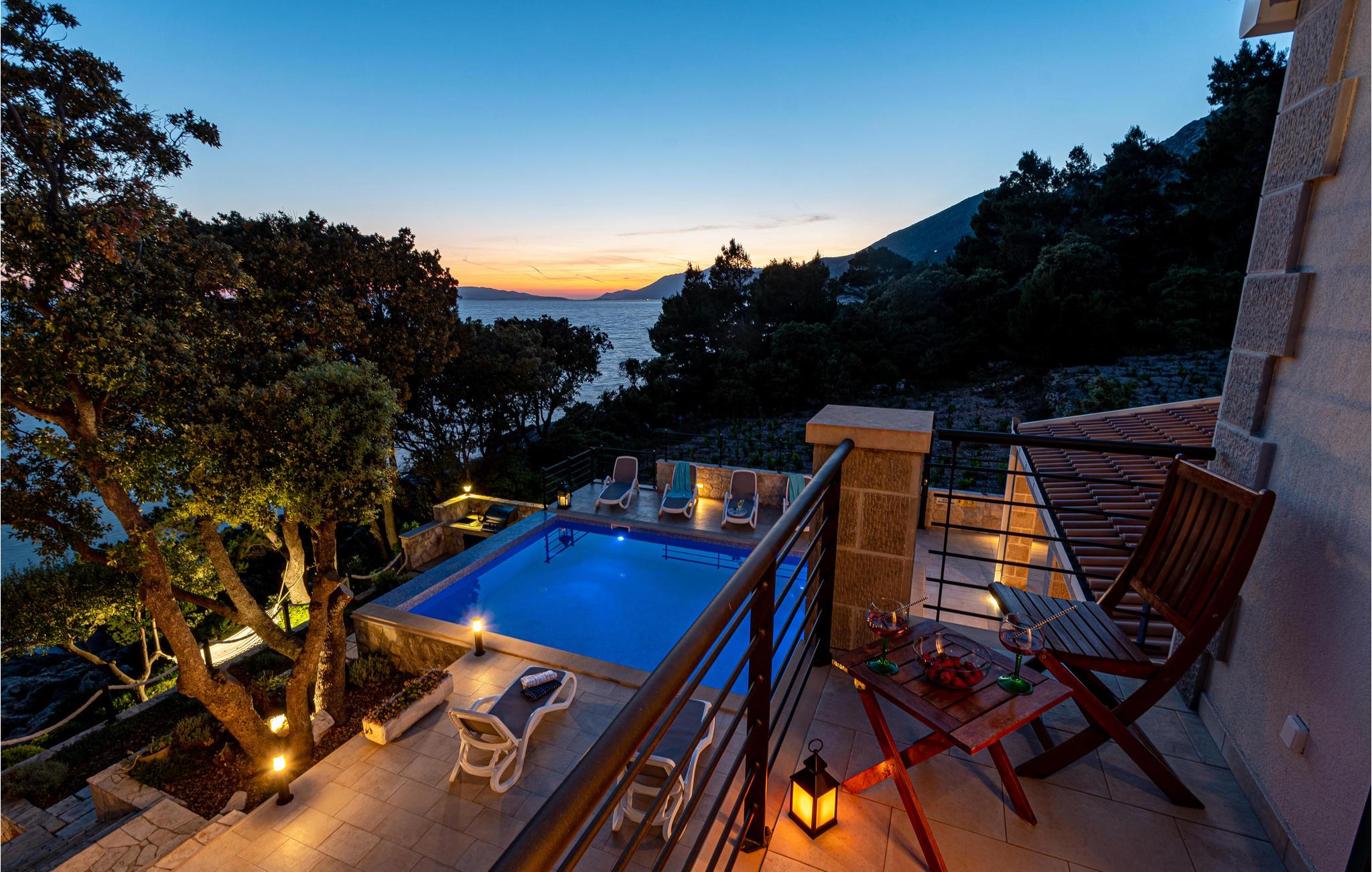 Hvis I vil gøre jeres ferie til en sand drøm, hvor jeres ønsker bliver til virkelighed, så er dette feriehus det helt perfekte sted til det. Her er fuglenes kvidren og havets brusen de eneste lyde som I vil høre under opholdet. Denne herlige villa ligger lige ved havet, midt i vinbjergene af regionen Dingac, på halvøen Peljesac. Husets arkitektur er smagfuldt blandet ind i omgivelserne og skaber et eventyrligt billede af en perfekt drøm om det ideelle sted, lige fra jeres dejligste tanker. Indretningen er en sublim blanding af moderne og enkelt stil, med rustikke middelhavsdetaljer, og atmosfæren er luftig og generøs. Alle tre soveværelser byder på badeværelse en suite og panoramaudsigt ud over det vide hav. I kan sole jer på en af terrasserne på første sal. Det store dagligområde og køkkenet i stueetagen åbner til en overdækket terrasse, hvor I kan spise og nyde hyggeligt samvær, og den herlige pool med panoramaudsigt til havet. I forlængelse af poolen er der et siddehjørne til dejlige sommeraftener med et glas af den fremragende lokale rødvin Dingac. Den største del af poolen ligger i skyggen af et hundrede år gammelt dalmatisk egetræ, der sørger for behagelige temperaturer på de varmeste sommerdage. Kun få skridt under poolen ligger en plateau, som I kan sole jer på, med adgang til det krystalklare hav. På fem minutter når I den børnevenlige kiesstrand samt to restauranter, der byder på nogle af regionens kulinariske delikatesser. Besøg også den flotte middelalderby Korcula og opdag skønheden af halvøen Peljesac med sine fortryllende ensomme bugter og strande.