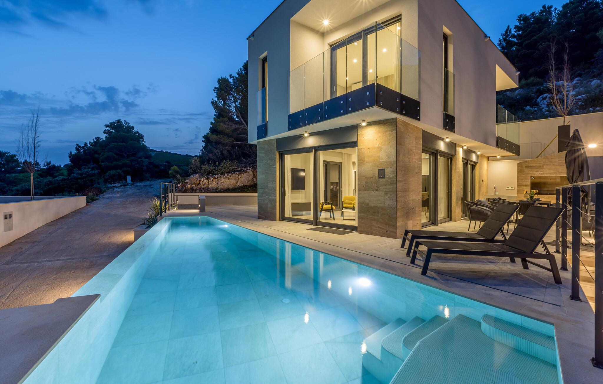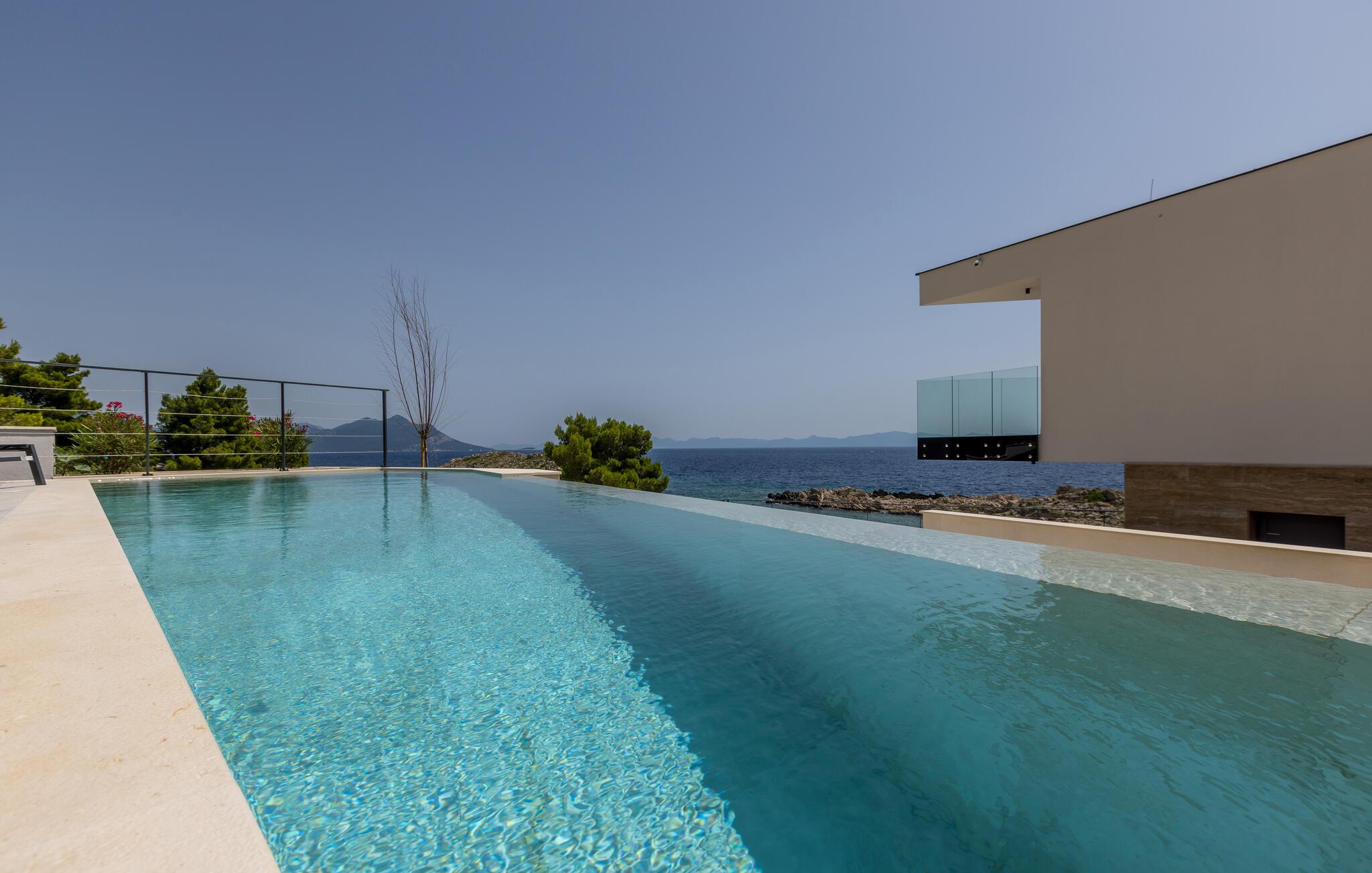 Tilbring en luksuriøs drømmeferie i dette moderne feriehus med pool, sauna og havudsigt.