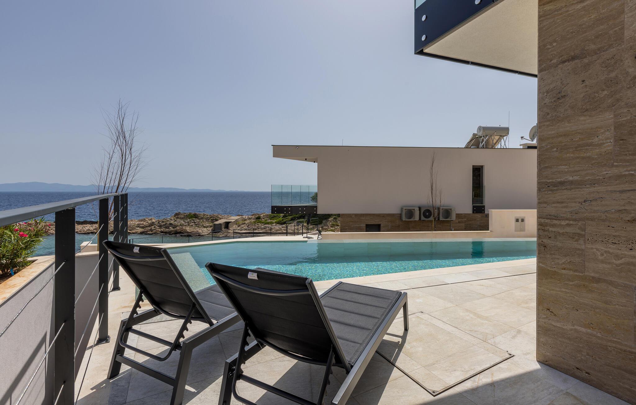 Lad den varme havbrise skylle hen over jer under en afslappet morgenmad på terrassen, snup en frisk dukkert i den storslåede infinity-pool, når I har lyst og nyd afslappende siestaer på liggestolene. Tænd op i grillen og oplev stemningsfulde aftener med vin og stearinlys eller lyt til den blide lyd af bølgerne under den klare stjernehimmel.