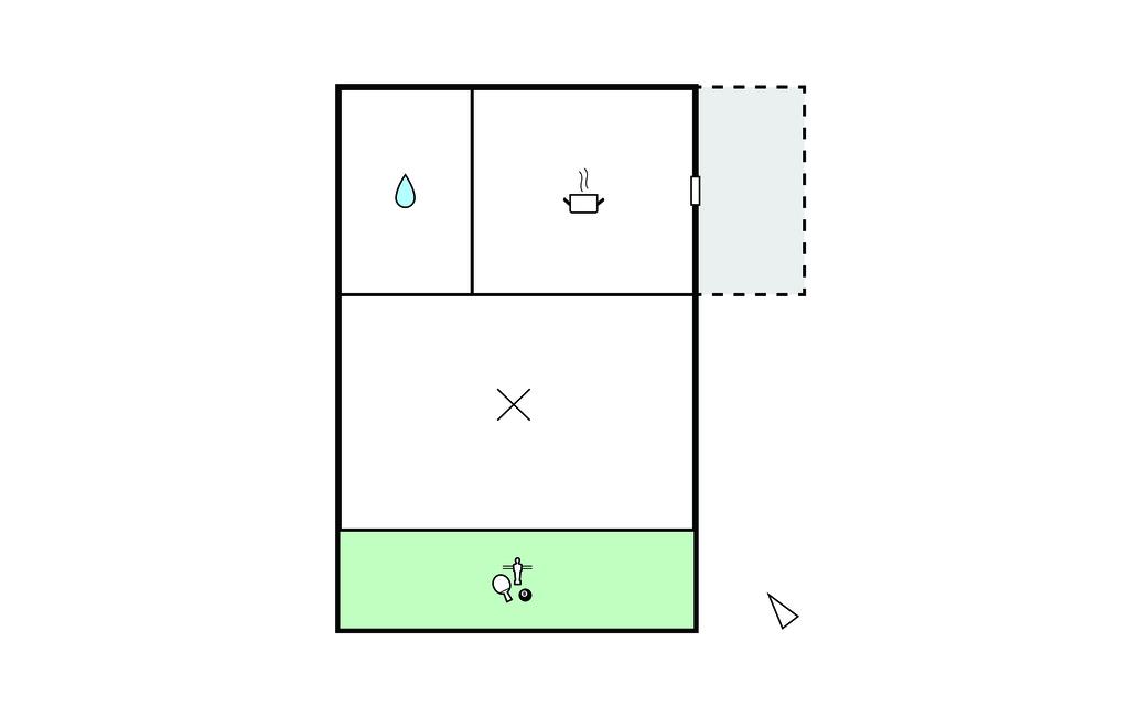 Opholdsstue/køkken 13m2 - 2 Sovepladser. (Dobbeltseng(e)).