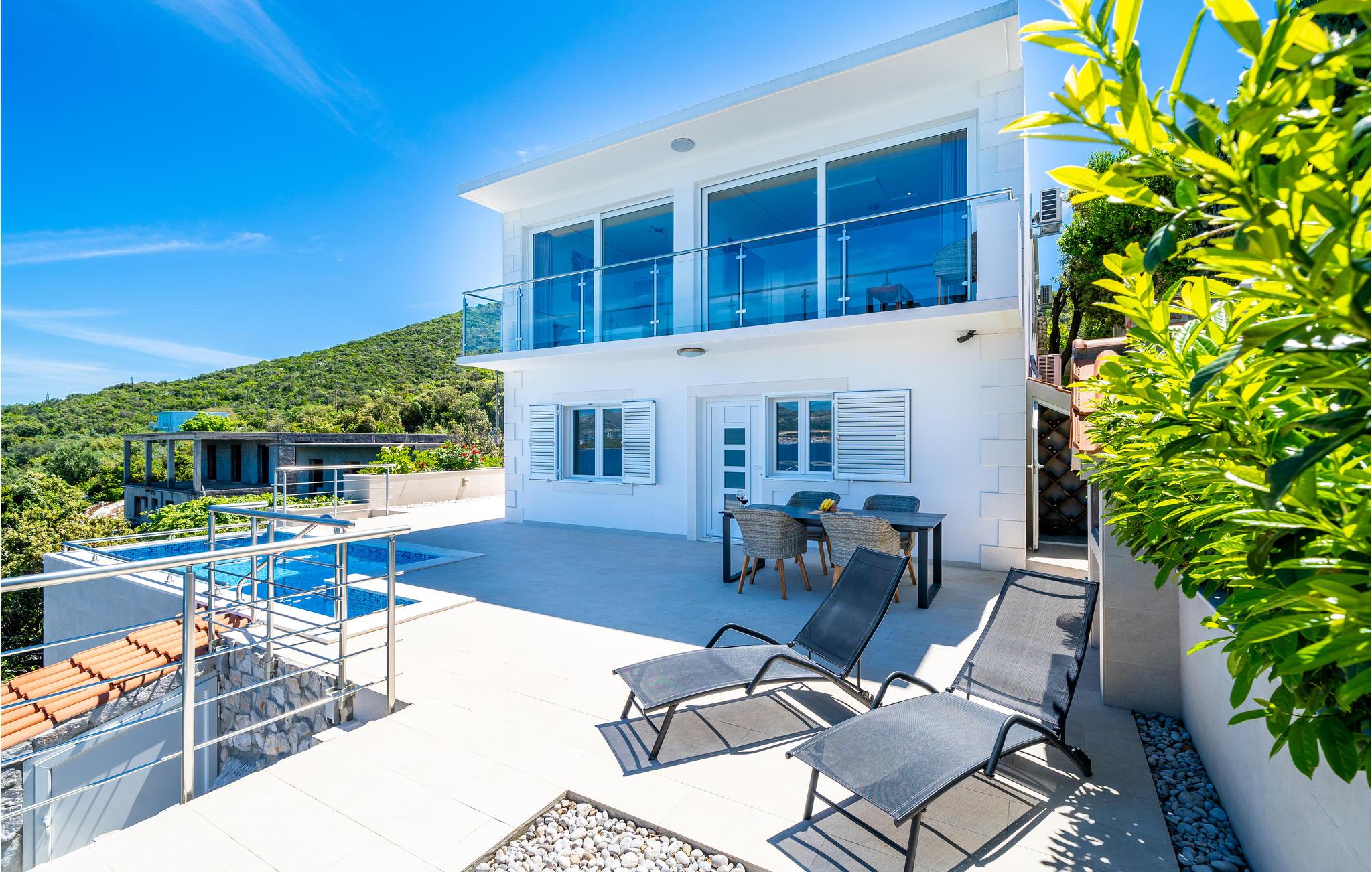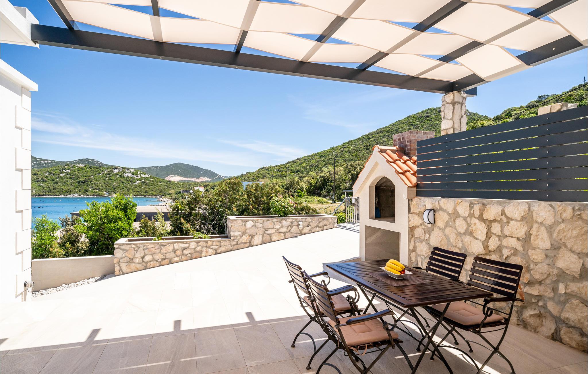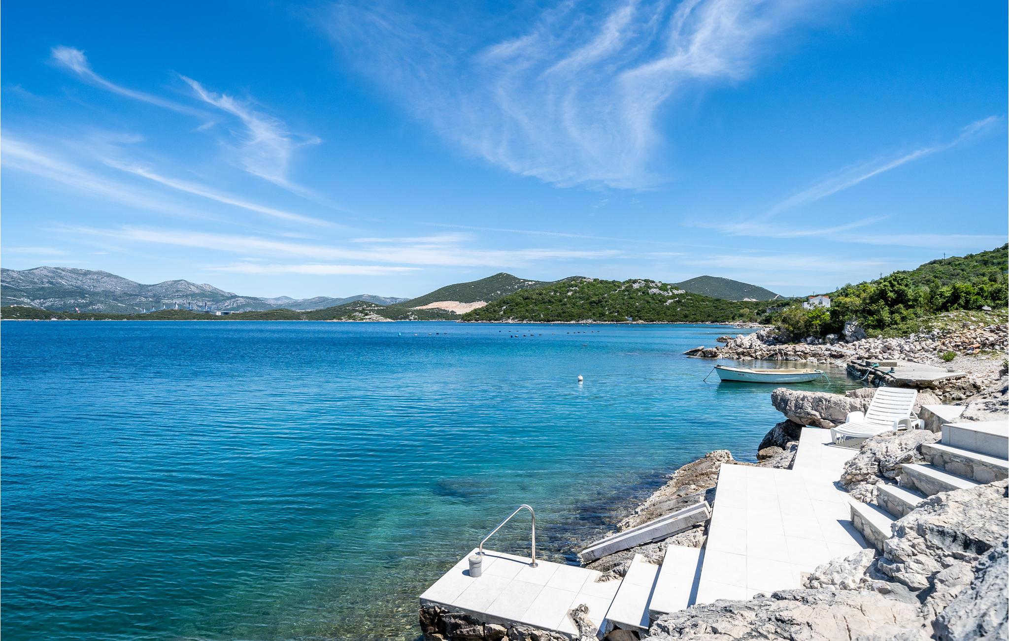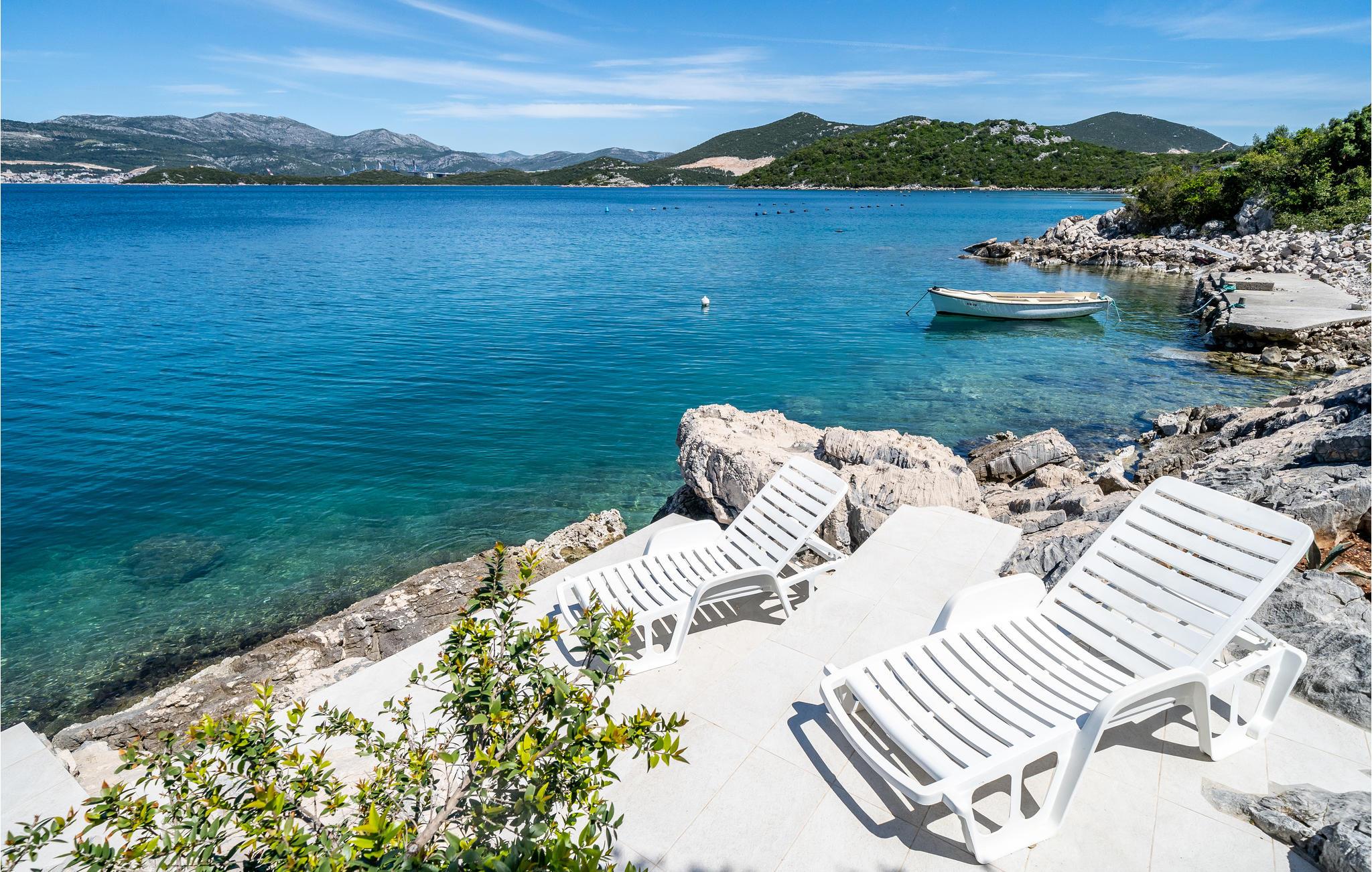Hold ferie i dette feriehus med pool, der ligger pragtfuld i en rolig bugt i Pještata. Feriehuset rummer alt, til en rigtig dejlig ferie. Det ganske særlige ved huset er beliggenheden lige ud til havet og de mange muligheder for at solbade, bade eller tage kajakken og begive jer ud på havet. Fra stuen er der udgang til terrassen med betagende panoramaudsigt over havet og til den forfriskende pool. På første sal, med adgang af udendørs trapper, ligger de to soveværelser, tre badeværelser, toilet, finetssrum og et køkken der er i åben forbindelse med stuen. Slap af i saunaen og glem alt om hverdagens stress og jag. Når solen er ved at synke ned i havet, så tænd op i grillen og tilbered lækker mad, lavet af lokale råvarer og hyg jer med at spise den udendørs bagefter. Ejer udlejer mod betaling biler og sørger for transport på bestilling og mod betaling. Etagerne er forbundet med udendørs trapper.