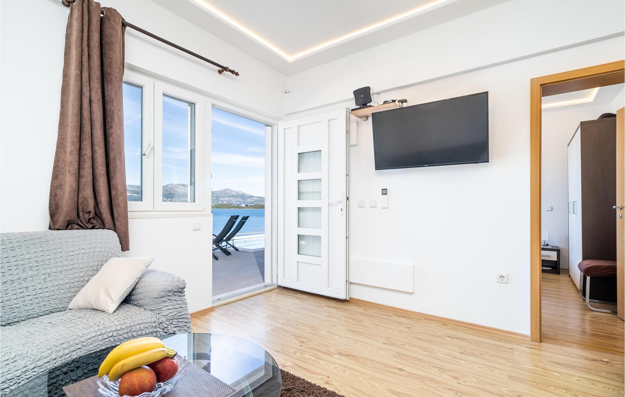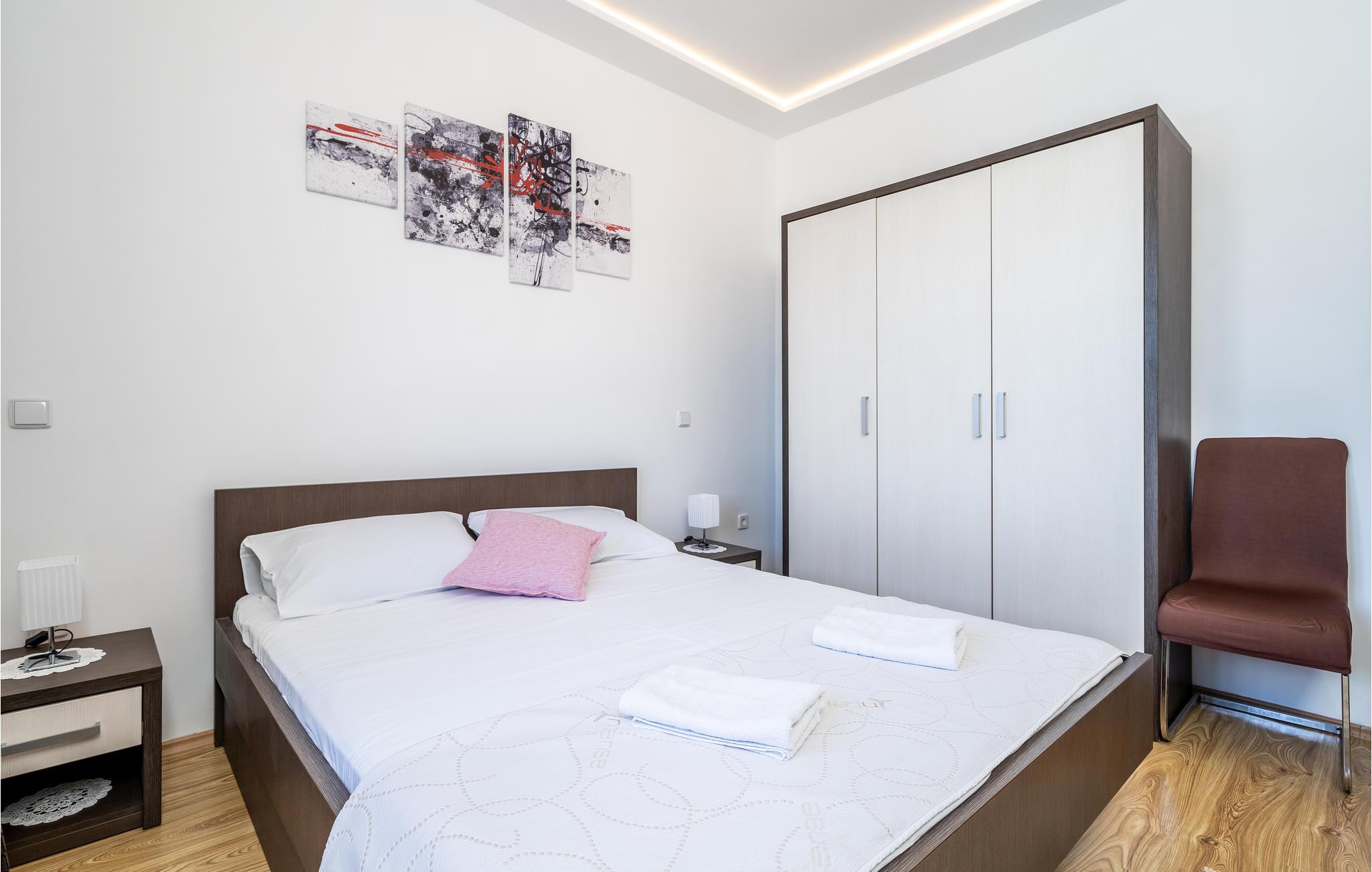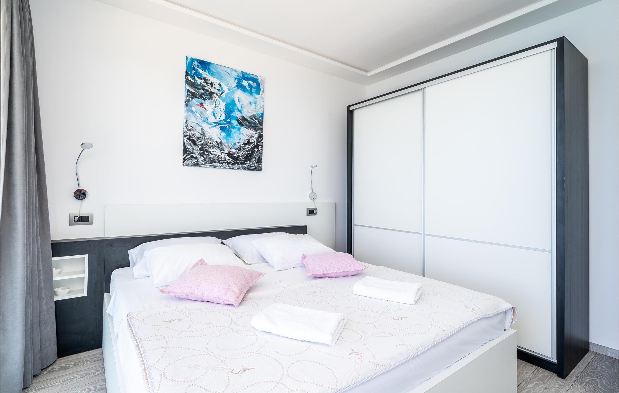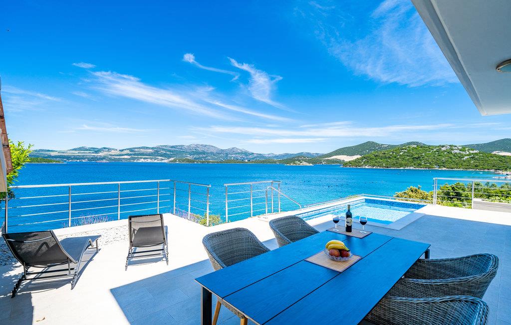 Hold ferie i dette feriehus med pool, der ligger pragtfuld i en rolig bugt i Pještata. Feriehuset rummer alt, til en rigtig dejlig ferie. Det ganske særlige ved huset er beliggenheden lige ud til havet og de mange muligheder for at solbade, bade eller tage kajakken og begive jer ud på havet. Fra stuen er der udgang til terrassen med betagende panoramaudsigt over havet og til den forfriskende pool. På første sal, med adgang af udendørs trapper, ligger de to soveværelser, tre badeværelser, toilet, finetssrum og et køkken der er i åben forbindelse med stuen. Slap af i saunaen og glem alt om hverdagens stress og jag. Når solen er ved at synke ned i havet, så tænd op i grillen og tilbered lækker mad, lavet af lokale råvarer og hyg jer med at spise den udendørs bagefter. Ejer udlejer mod betaling biler og sørger for transport på bestilling og mod betaling. Etagerne er forbundet med udendørs trapper.