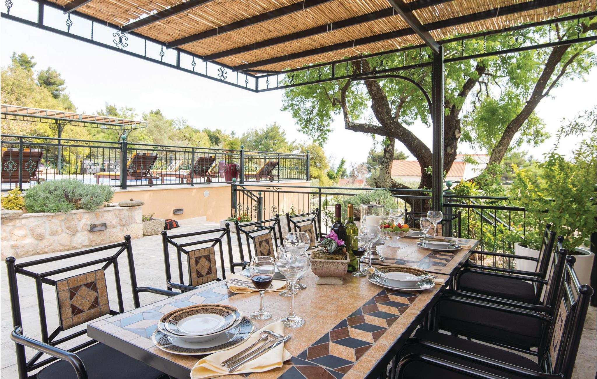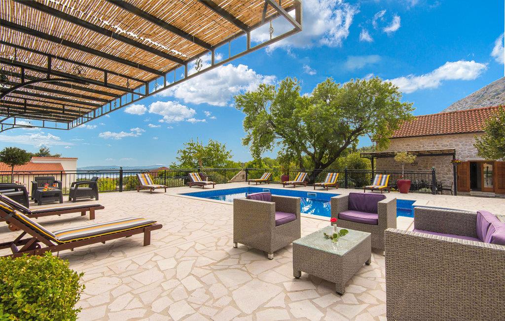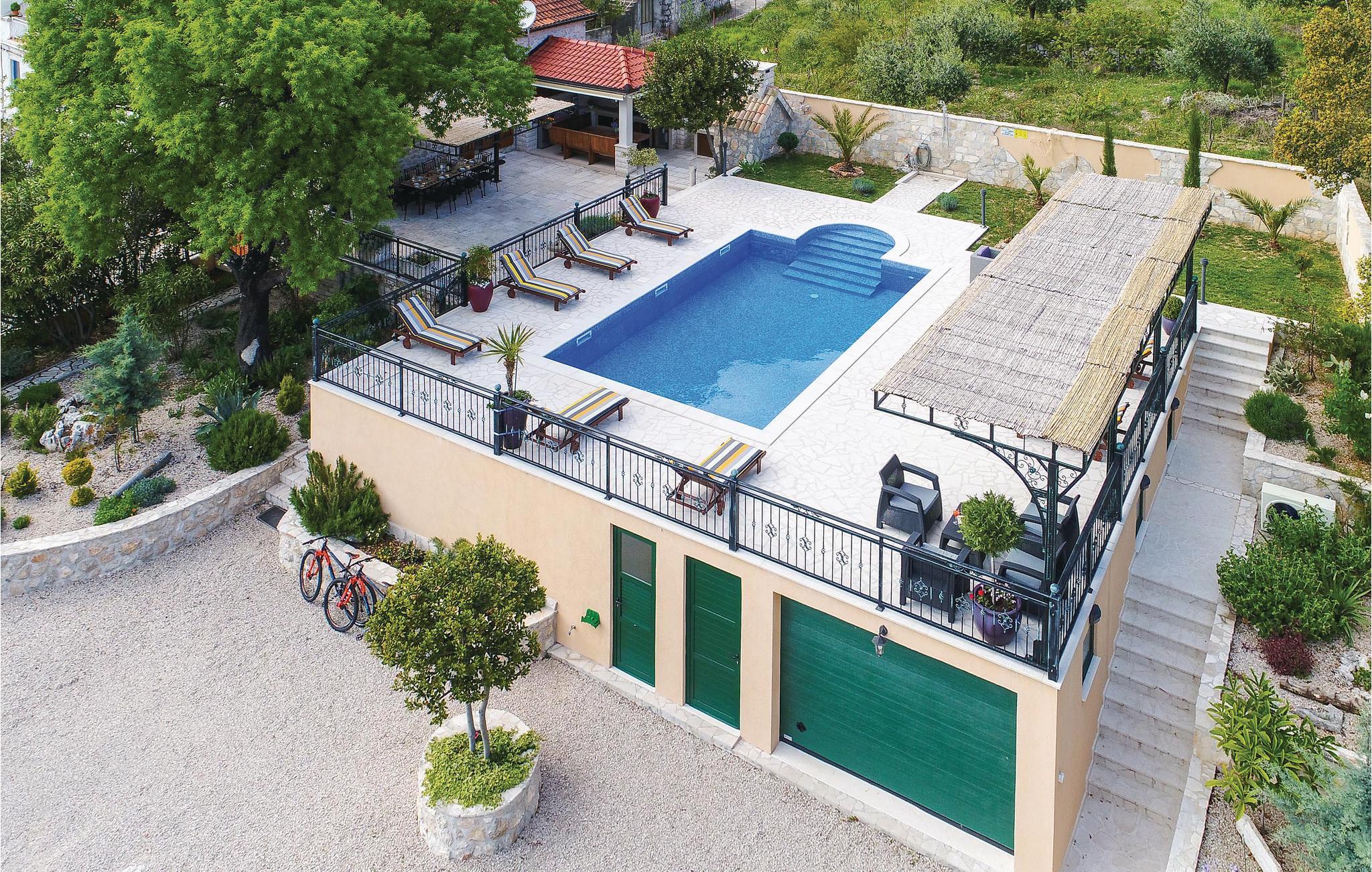 Dette traditionelle feriehus i den lille landsby Ruscovici ligger oven for bebyggelsen Orebic. Træmøbler i landlig stil giver jer her en god ramme til at slappe af i. I stueetagen er spisekøkkenet og dagligstuen, på de øverste etager ligger værelserne. Fra 1. sal kommer I ud i gården og direkte til poolen, hvor der også er et komplet udstyret udekøkken med grill og en stor terrasse. Nyd udsigten til St. Ilijas' Bjerge. Bjørnene vil more sig med legeudstyret, og ved siden af garagen er der også et rum med fitnessudstyr og et badeværelse. Gå på restauranterne og på de børnevenlige strande i nærheden.