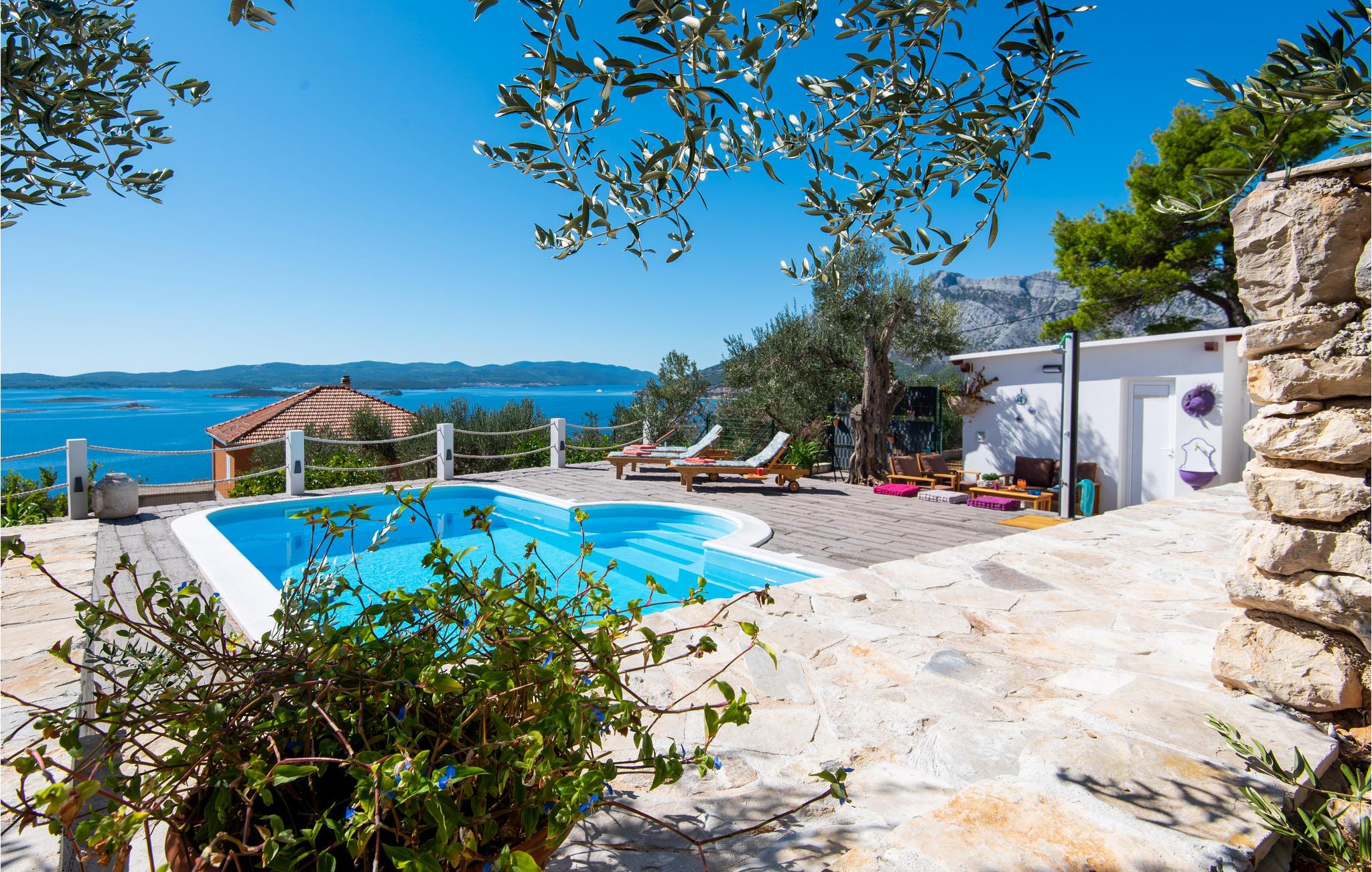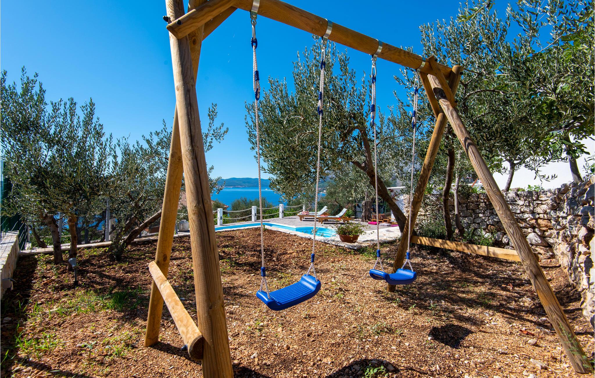 Dette enkle feriehus i to etager ligger på en lille høj. I stueetagen ligger køkkenet med en lille stue, badeværelse og soveværelse. På første sal er der et større og et mindre soveværelse. Fra gangen i overetagen kommer I til en dejlig terrasse med overvældende udsigt. Slap også af i haven med masser af grønt og skyggefulde steder, som I kan nyde jeres kaffe på. Der venter timevis af badesjov i den opvarmede pool. Eller tag en tur til Mokalo, en af de dejligste badestrande i Peljesac, lige i nærheden. Tilbered dejlige retter på grillen og nyd skønne lokale Peljesacvin.