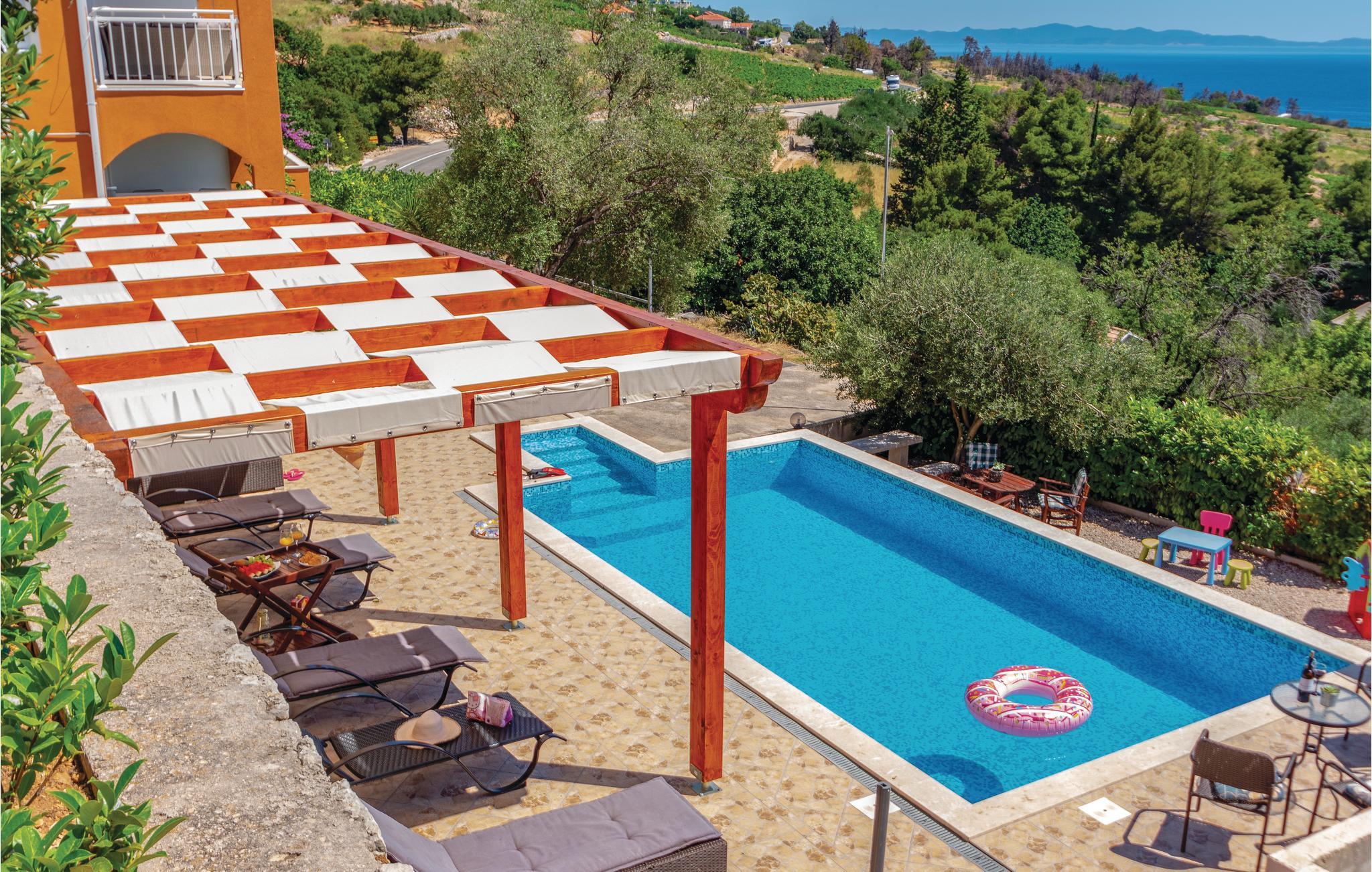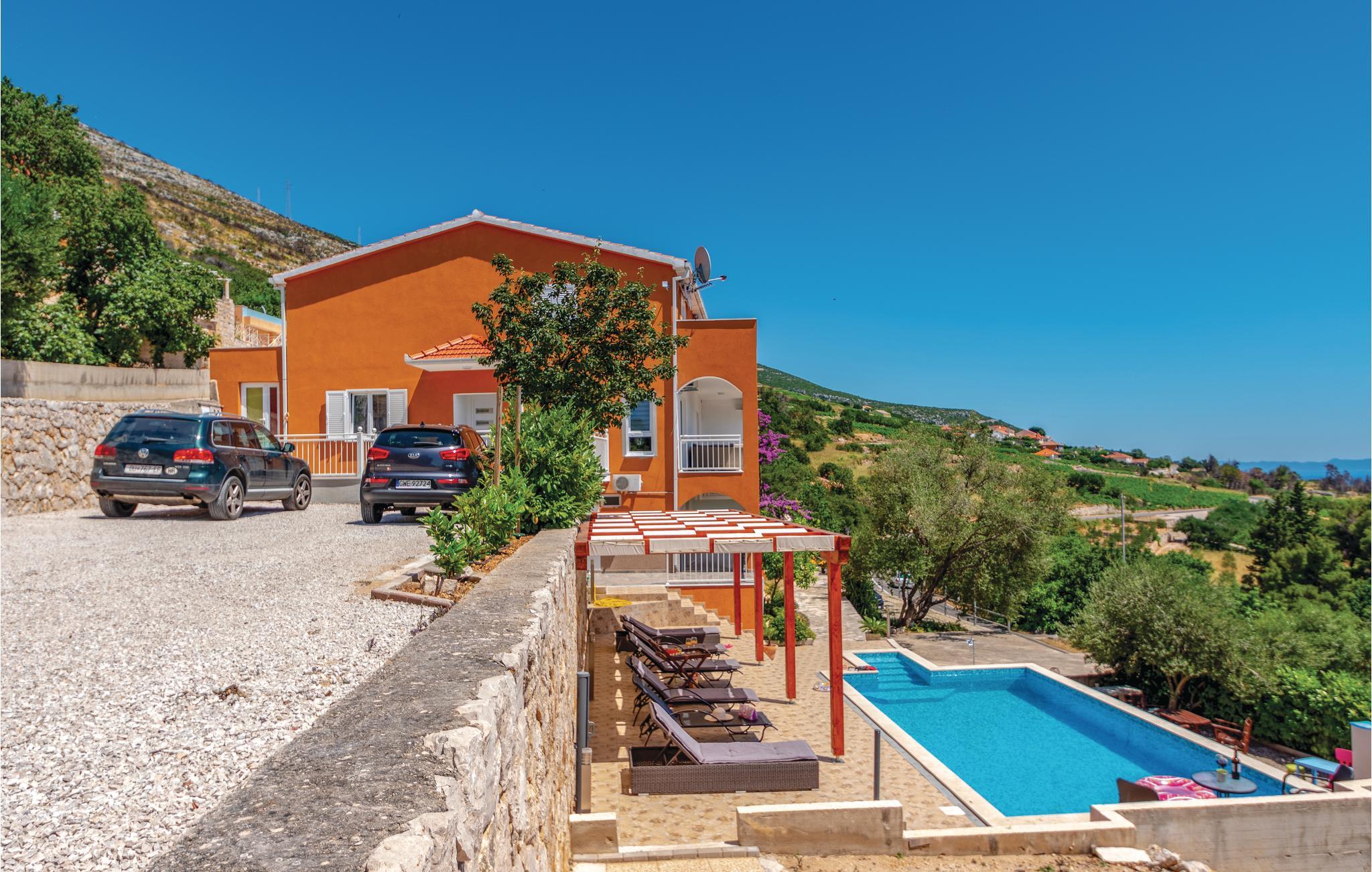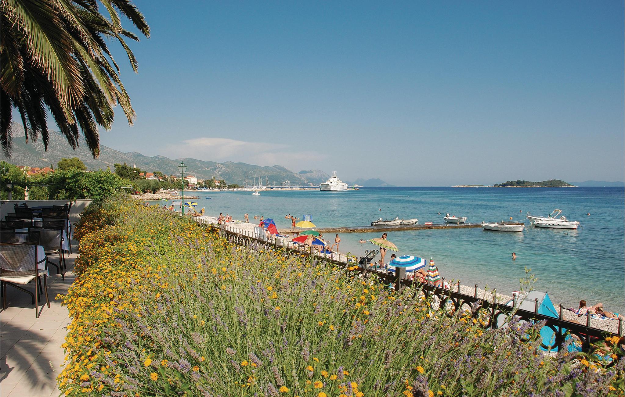 Nyd den betagende panoramaudsigt over havet, fra denne moderne og smukt indrettede ferielejlighed der ligger på første sal. De tre soveværelser og to badeværelser, gør lejligheden oplagt til ferie for mange. Terrassen strækker sig langs hele stuen og herfra er der en betagende udsigt, ikke blot over havet, men også over de små øer der ligger som perler på snor, mellem Peljesac og Korcula. Til lejligheden hører to parkeringspladser, en fælles grill og fælles adgang til en udendørs pool. Halvøen Peljesac er kendt for sine gode vine og velsmagende muslinger. Tag også på tur til de grønne øer Korcula og Mljet.