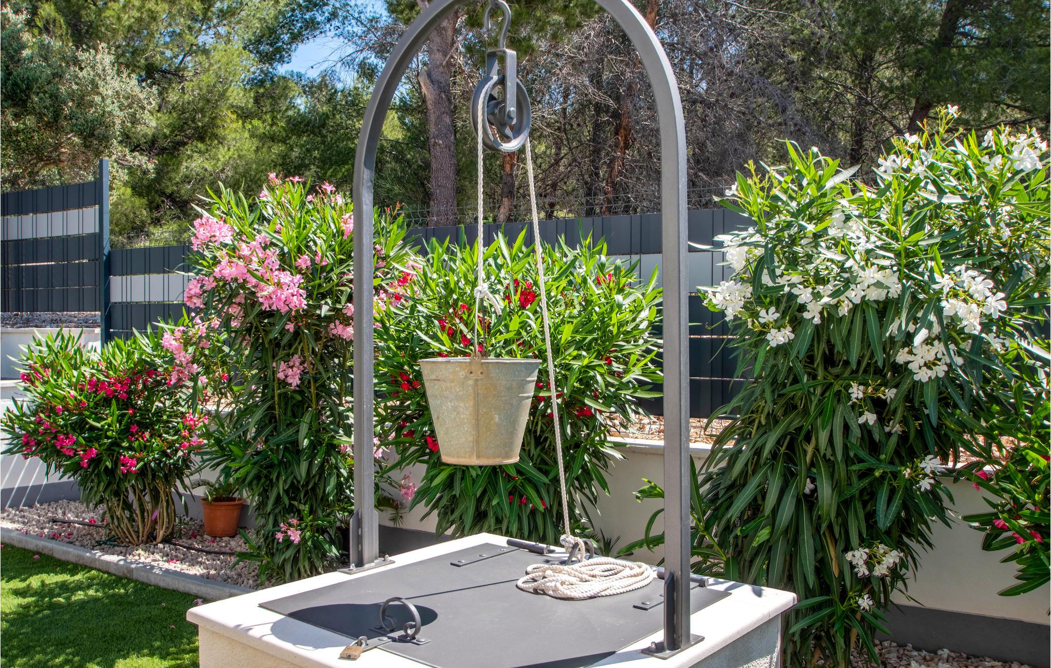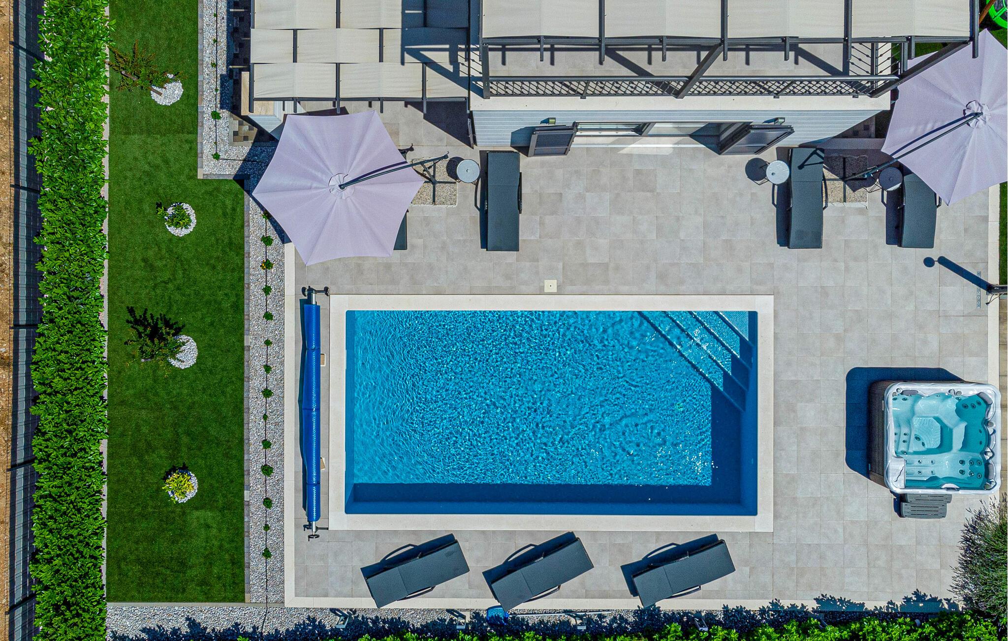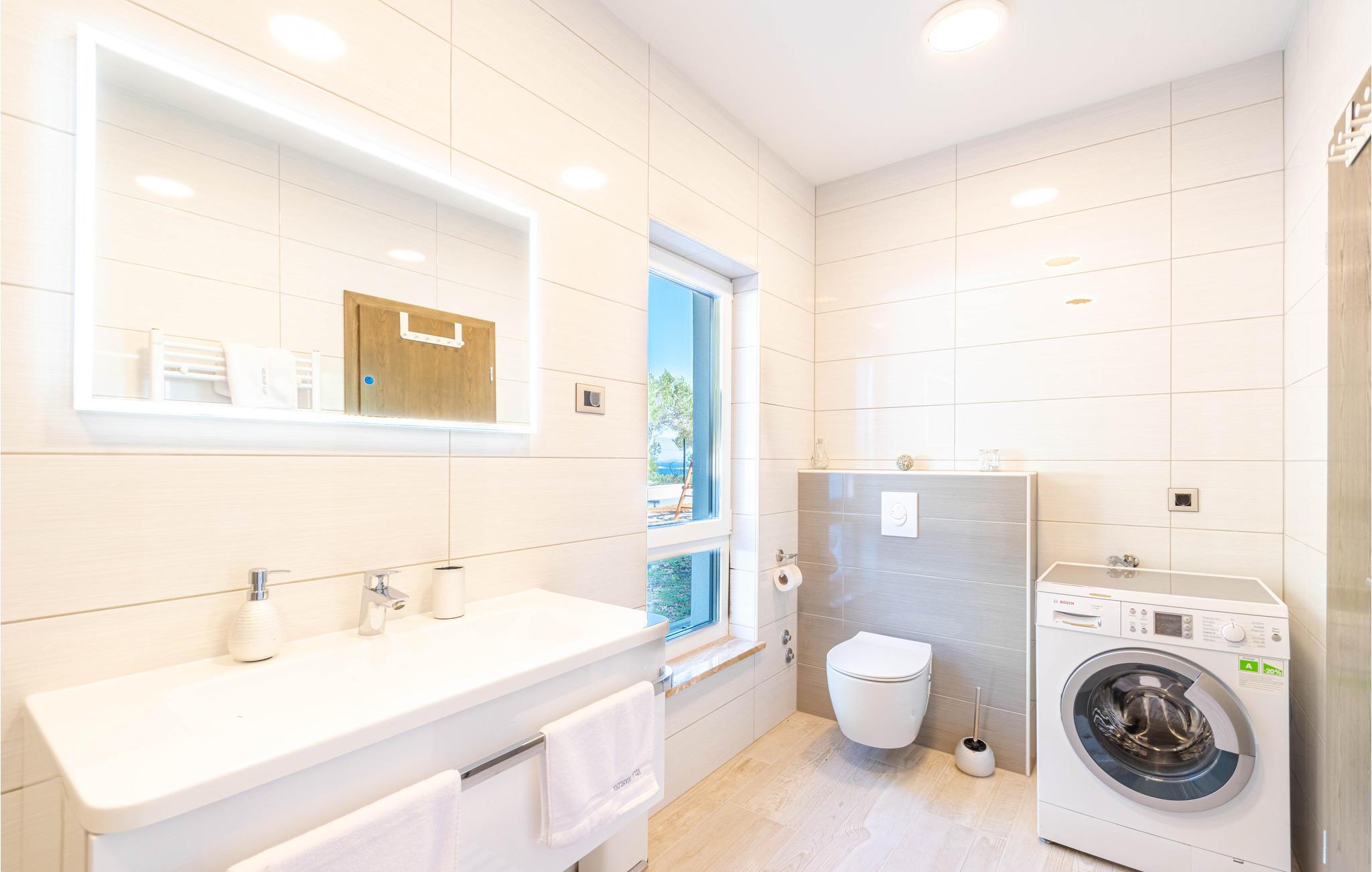 Dette stilfulde feriehus har egen pool og en fremragende beliggenhed. Det er tæt på den vidunderlige Trstenica-strand med fint sand og grus.