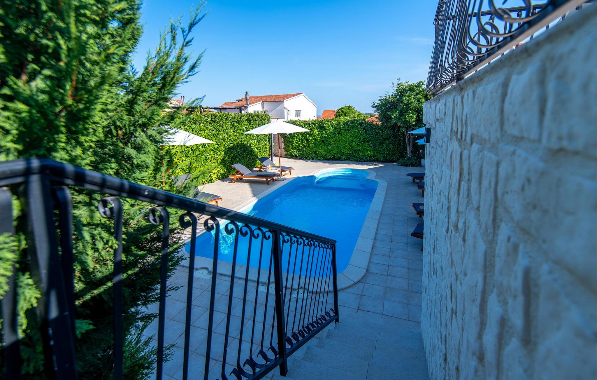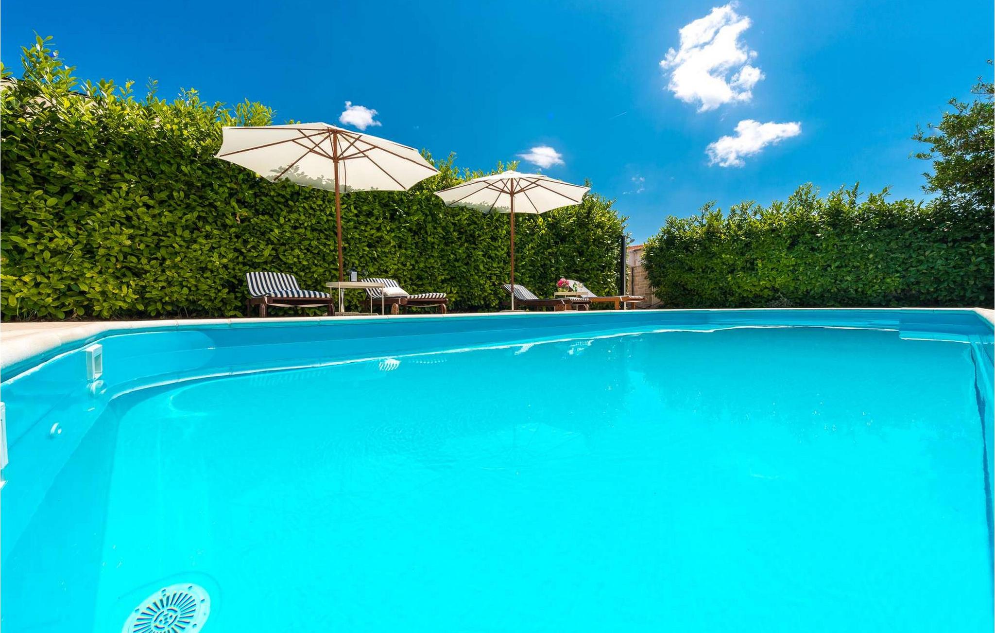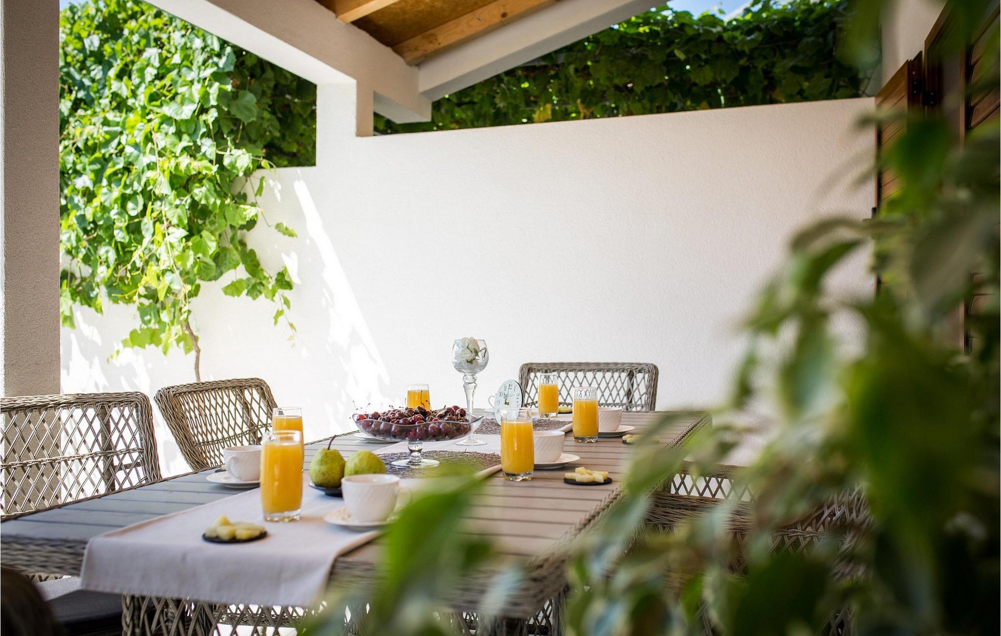 Villaens store have har en smuk pool, hvor I kan tilbringe afslappende timer under den blå himmel. Snak over et glas vin på de charmerende havemøbler og nyd hyggelige grillaftener i middelhavsmiljøer.