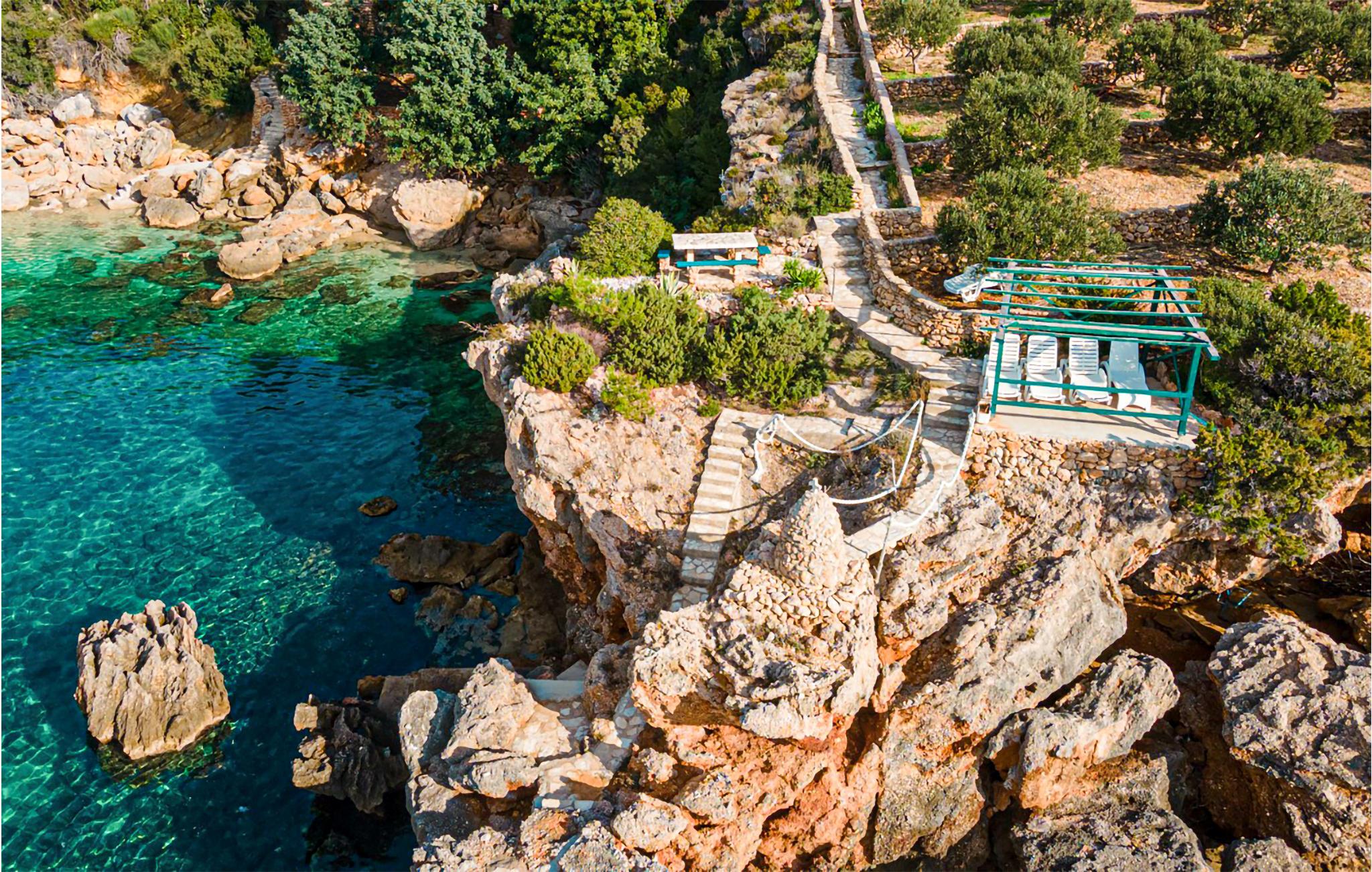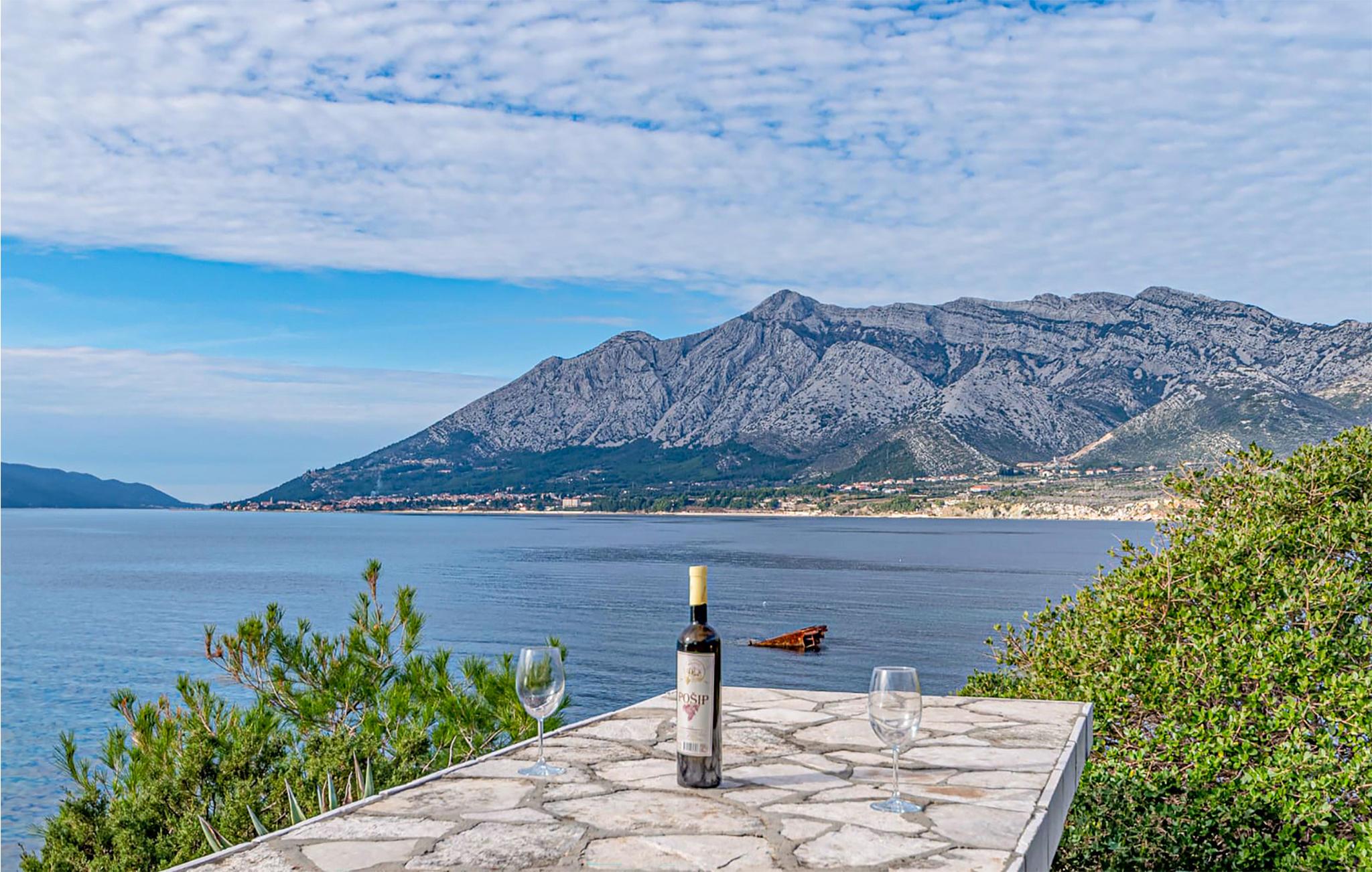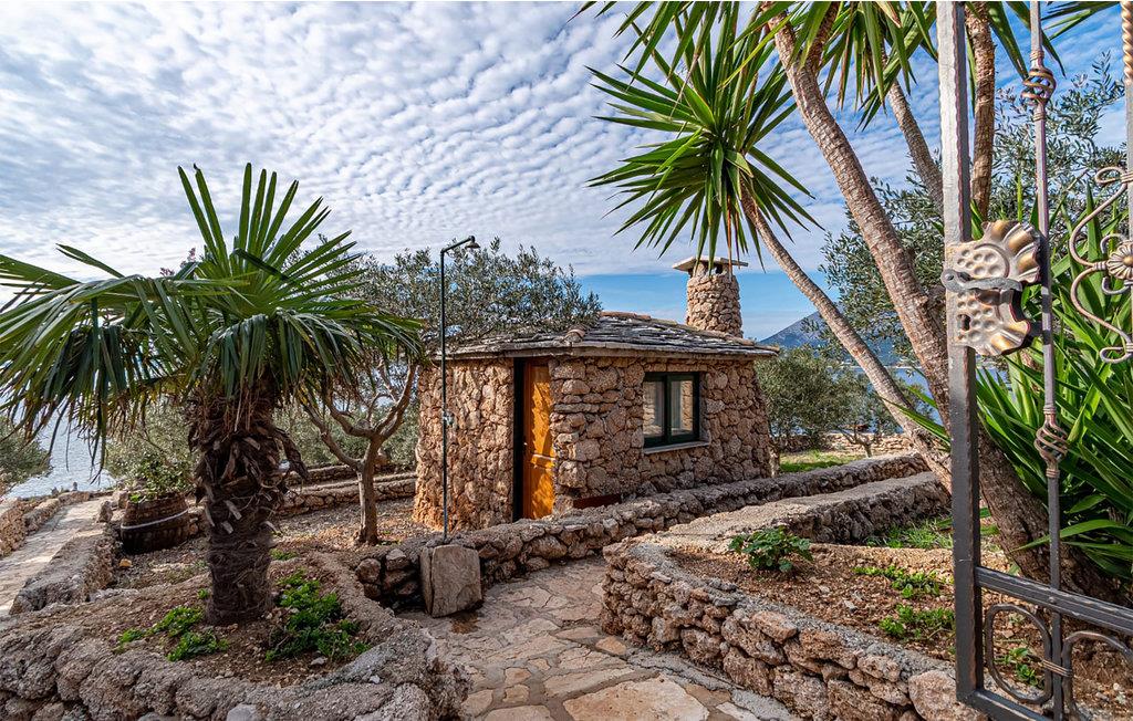 Dette funktionelt indrettede feriehus ligger lige ved havet, i et område med garanti for privatliv. Grunden ligger på en bakke, omgivet af frodigt grønt og en velplejet have med panoramaudsigt ud over Korcula-Kanalen og bjergene Sv. Llija. Huset er indrettet med håndsnedkererede møbler, som er specielt tilpasset husets atmosfære. På husets store terrasse, som hænger sammen med pladsen, hvor grillen står, kan I tilberede jeres egne friskfangede fisk. Foran huset løber en vej, der fører ned til havet og kiselstranden mellem klipperne. Der ligger en hule op til stranden, hvor I kan søge skygge på de varme dage, mens resten af familien svømmer. Ejer låner jer gerne sin robåd mod gebyr, så I kan ro til den nærliggende campingplads med legeplads, restaurant og bar. 500 m fra huset ligger Hotel San Antonio, hvor I kan benytte poolen gratis, se den på et af husets fotoer. De sidste 200 meter op til huset er grusvej. Besøg den spændende by Korcula. Lige ved siden af huset, ligger et anneks med sauna, til yderligere afslapning i ferien.
