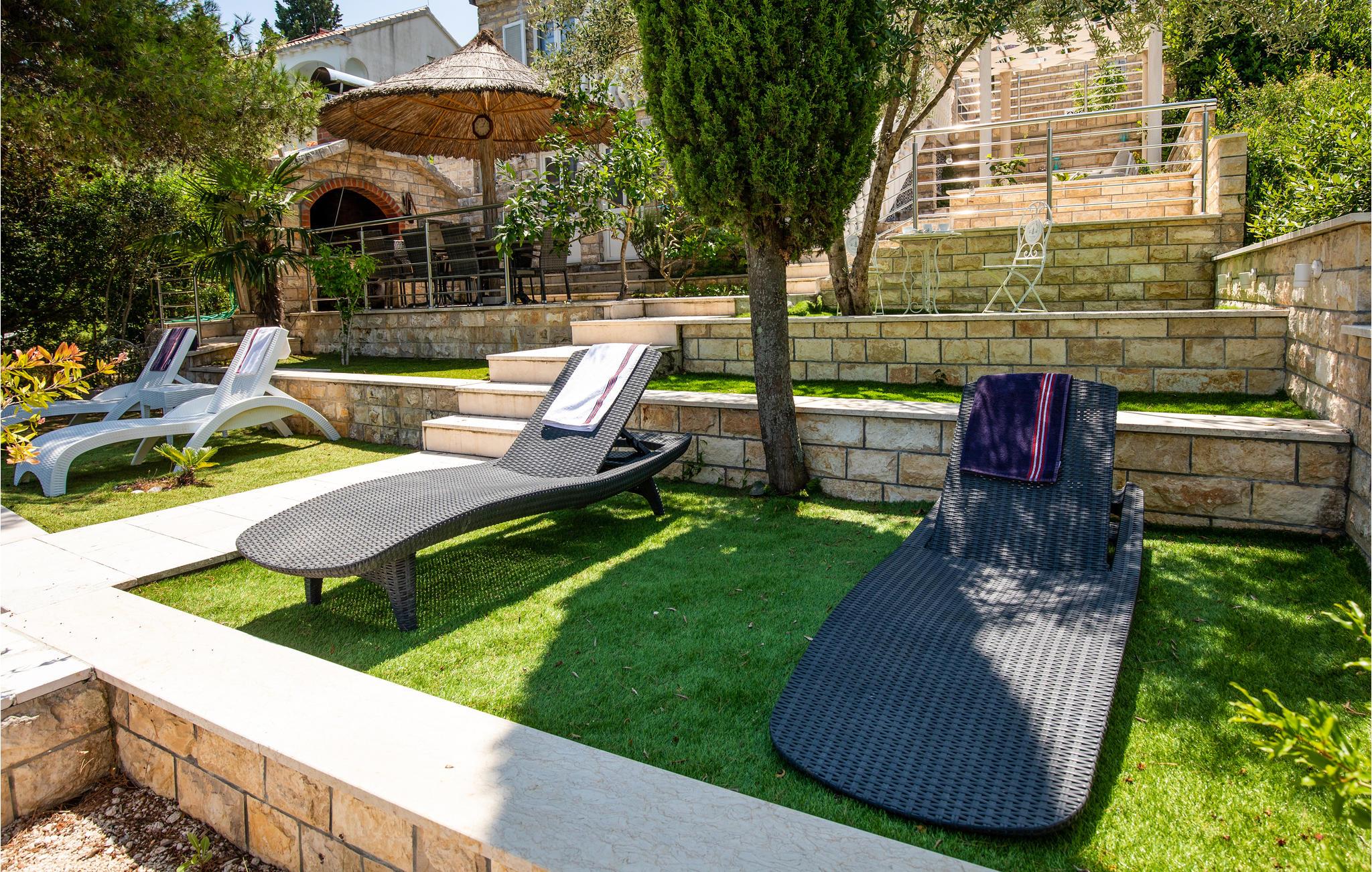 Det velholdte, alsidige udendørsområde er perfekt til at nyde middelhavsklimaet fuldt ud. Snup en frisk dukkert i poolen, slap af i spabadet, fordyb jer i en god bog på liggestolen eller nyd en solnedgang. Nyd lune sommeraftener på den hyggelige terrasse og snak til langt ud på natten med et glas vin.