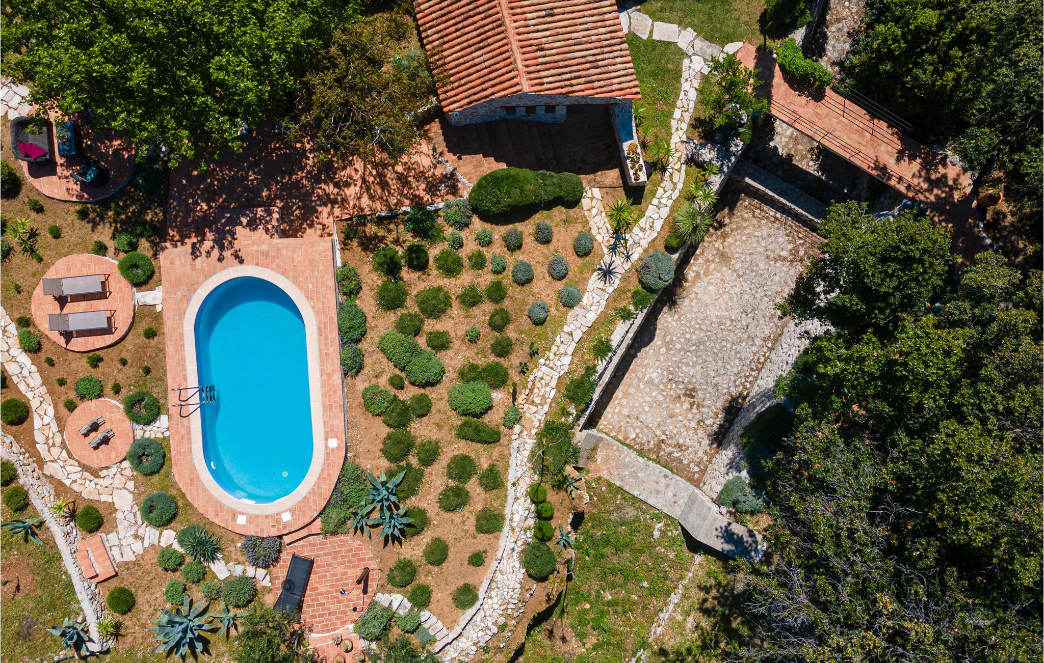 Denne komfortable villa med swimmingpool ligger på en bakketop i den idylliske by Trstenik. Den er moderne og bekvemt indrettet med interessante og skønne detaljer. Den traditionelle byggeskik med de tykke ydermure sørger for at der også om sommeren er dejligt svalt i huset. Kieselstranden nås på en kort spadseretur. I kommer fra parkeringspladsen til huset ad flere trin og en lille bro. På den store grund er der oliventræer, terrasser og en lille rislende bæk i nærheden. Huset er indrettet med skønne møbler. Stueplan rummer en stor stue og et køkken. På første sal ligger to rummelige soveværelser og yderligere et badeværelse. Huset er en gammel bygning. De tykke vægge sikrer behagelig kølighed selv på de hedeste sommerdage. I middelalderbyen Korcula, 30 km, kan I opleve Moreska og Kumpanija, gamle ridderdanse.