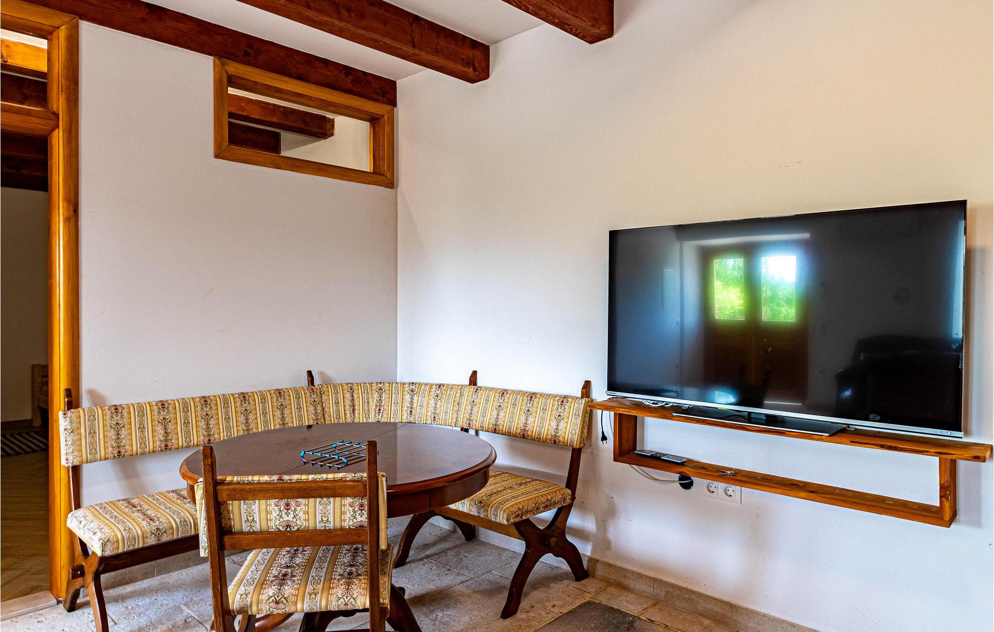 Ankom med familien i dette traditionelle feriehus og tilbring en dejlig ferie i dette hyggeligt indrettede hus. Her finder I alt, hvad I skal bruge til at have det godt og slappe af. Nyd stemningen skabt af synlige bjælker, en åben pejs og pudsede stenvægge. Men I kan også nyde udendørsområdet. En stor overdækket terrasse er til rådighed til aften og hyggelige grillaftener. I kan også nyde panoramaet over havet og det omkringliggende landskab i den smukke pool.