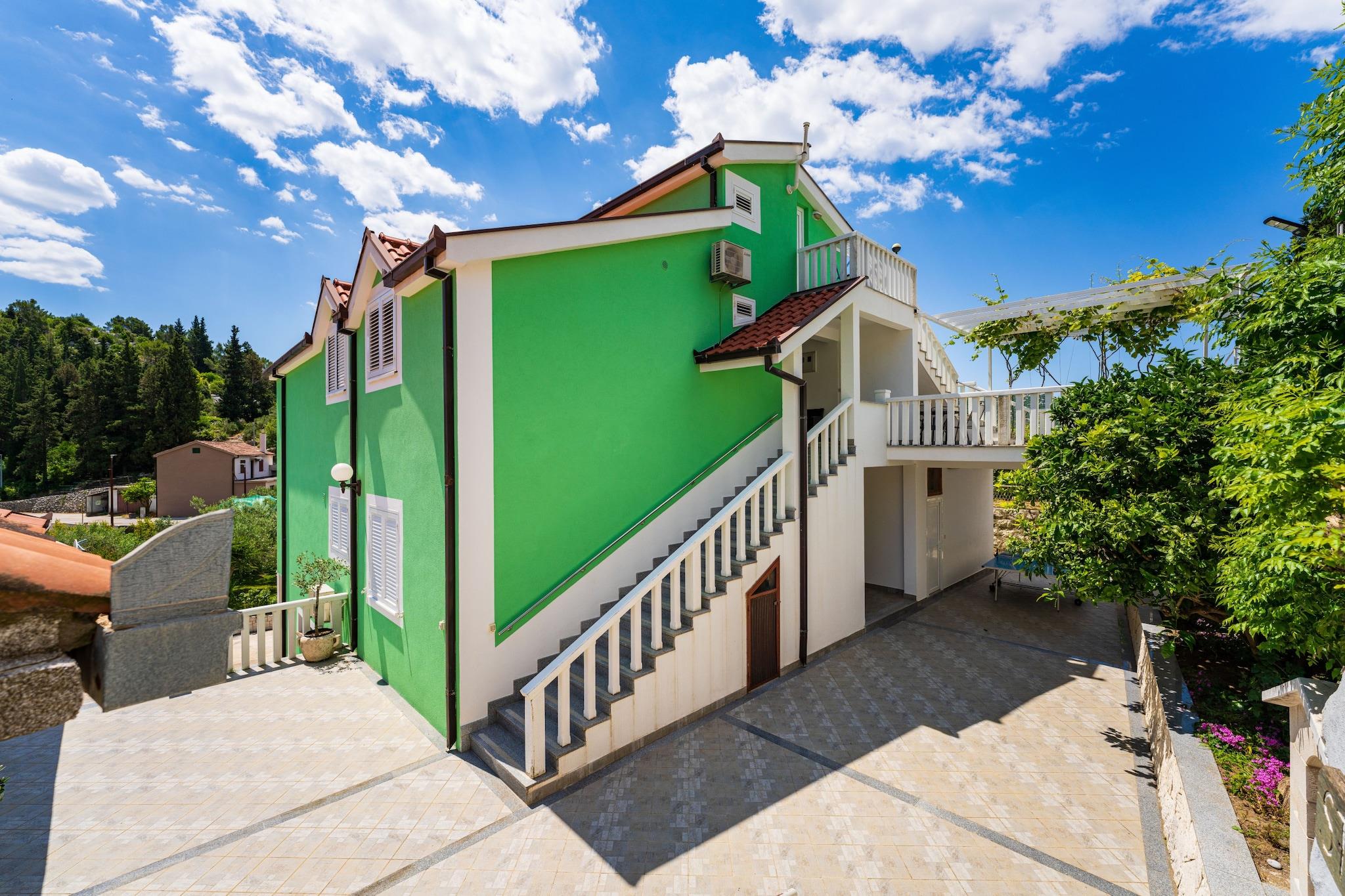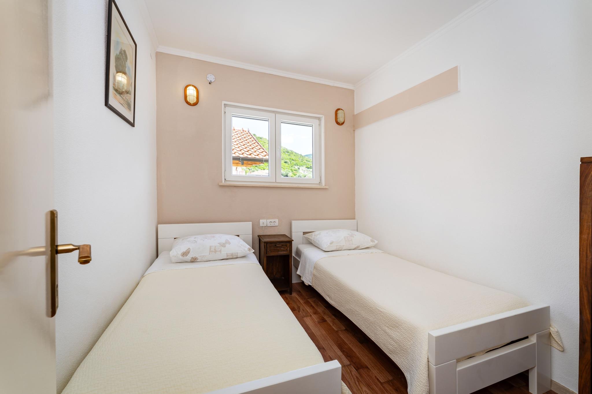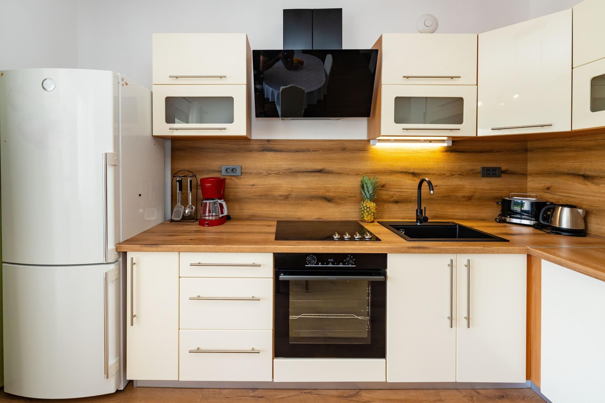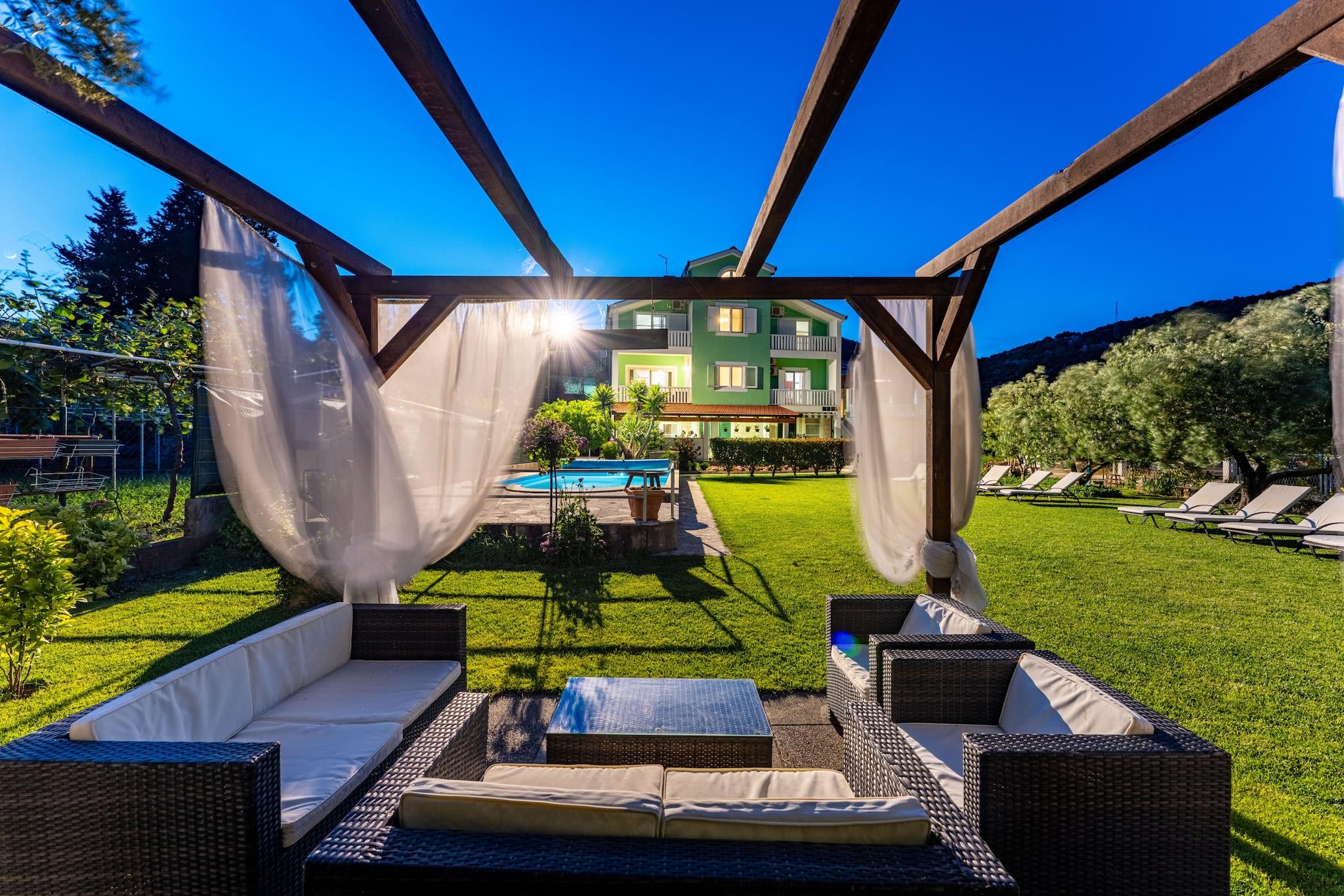 Nyd et fredeligt ophold kun 350 meter fra stranden i denne charmerende og moderne lejlighed til fire personer. Indkvarteringen tilbyder et lyst opholdsrum med en komfortabel sofa, spiseplads og fuldt udstyret åbent køkken med alt, hvad du behøver for et behageligt ophold med egen forplejning. Gå ud på den møblerede terrasse for at nyde afslappende øjeblikke i det fri i en rolig og venlig atmosfære. Lejligheden har to hyggelige soveværelser og et badeværelse, hvilket gør den ideel til familier eller venner. Moderne faciliteter såsom aircondition, Wi-Fi og satellit-tv sikrer et bekymringsfrit ophold. Gæsterne har også adgang til en fælles swimmingpool og privat parkering. Takket være den perfekte beliggenhed tæt på stranden, lokale butikker og restauranter kan du nyde både ro og komfort. Uanset om du ønsker at slappe af ved poolen, udforske de nærliggende attraktioner eller tage en aftenvandring langs kysten, tilbyder denne lejlighed alt, hvad du behøver for en afslappende og behagelig ferie ved havet.
