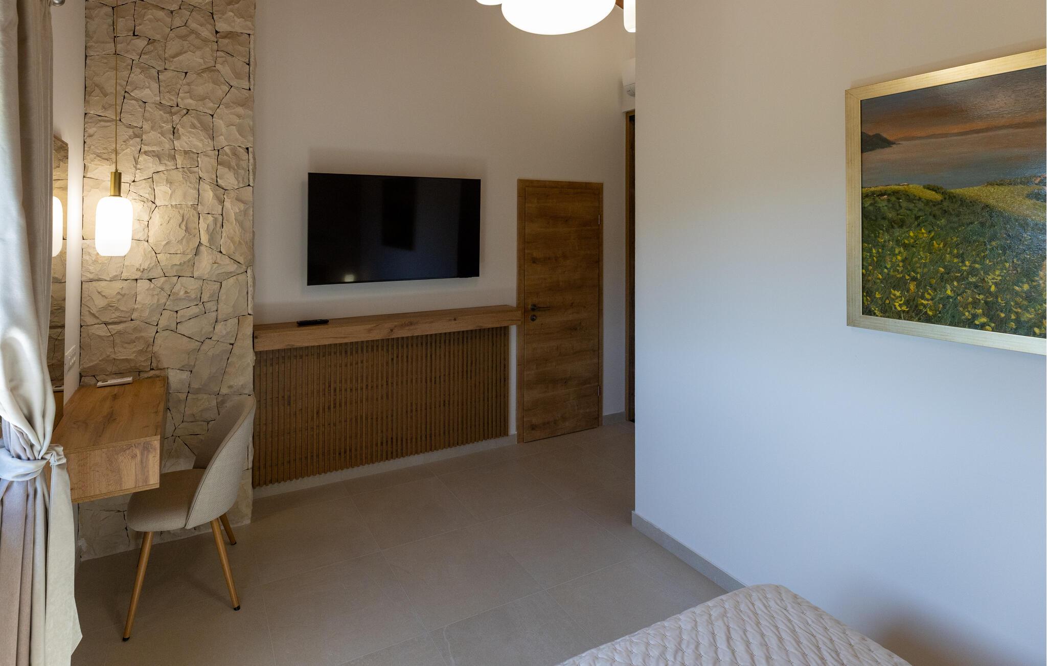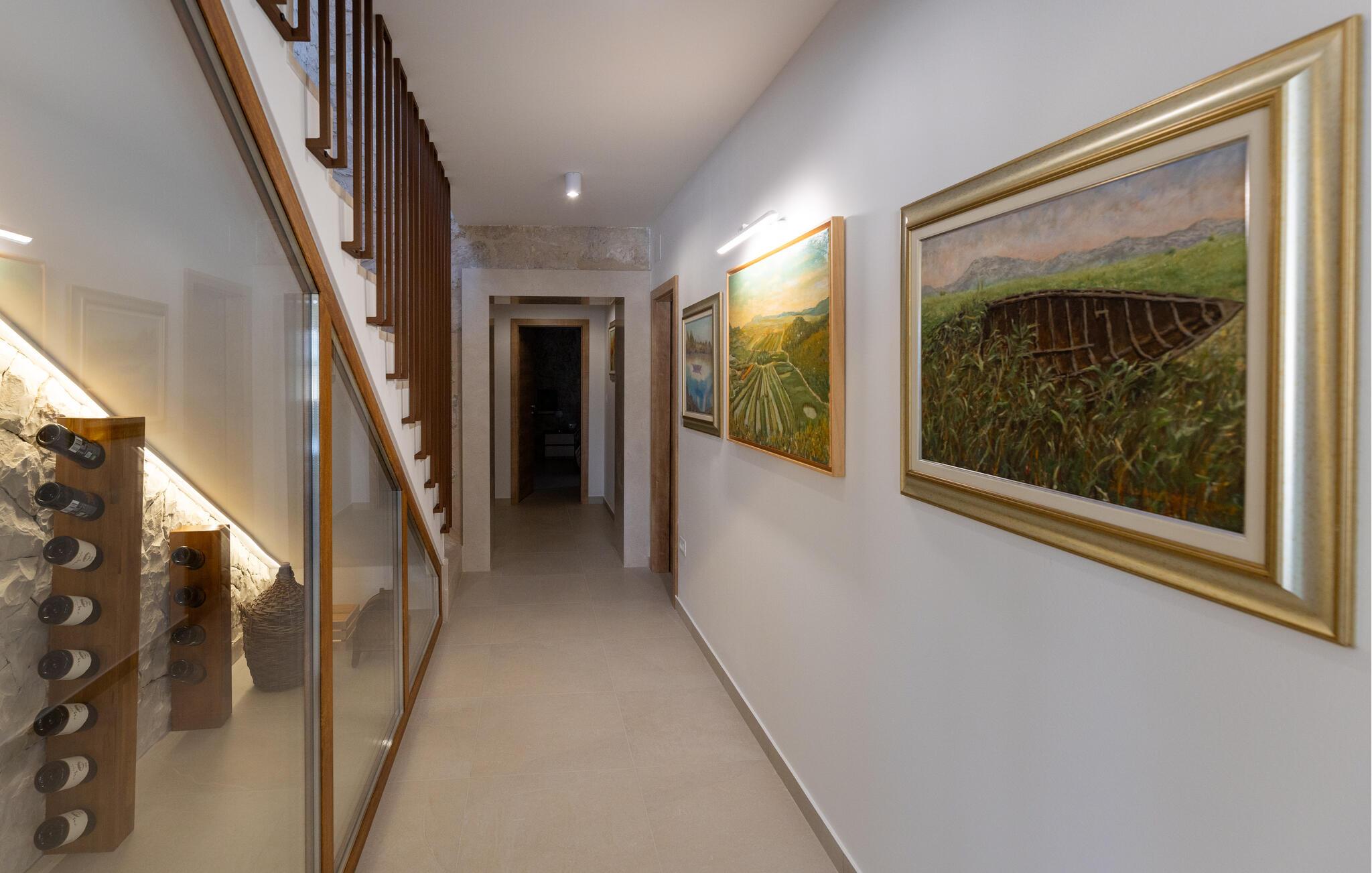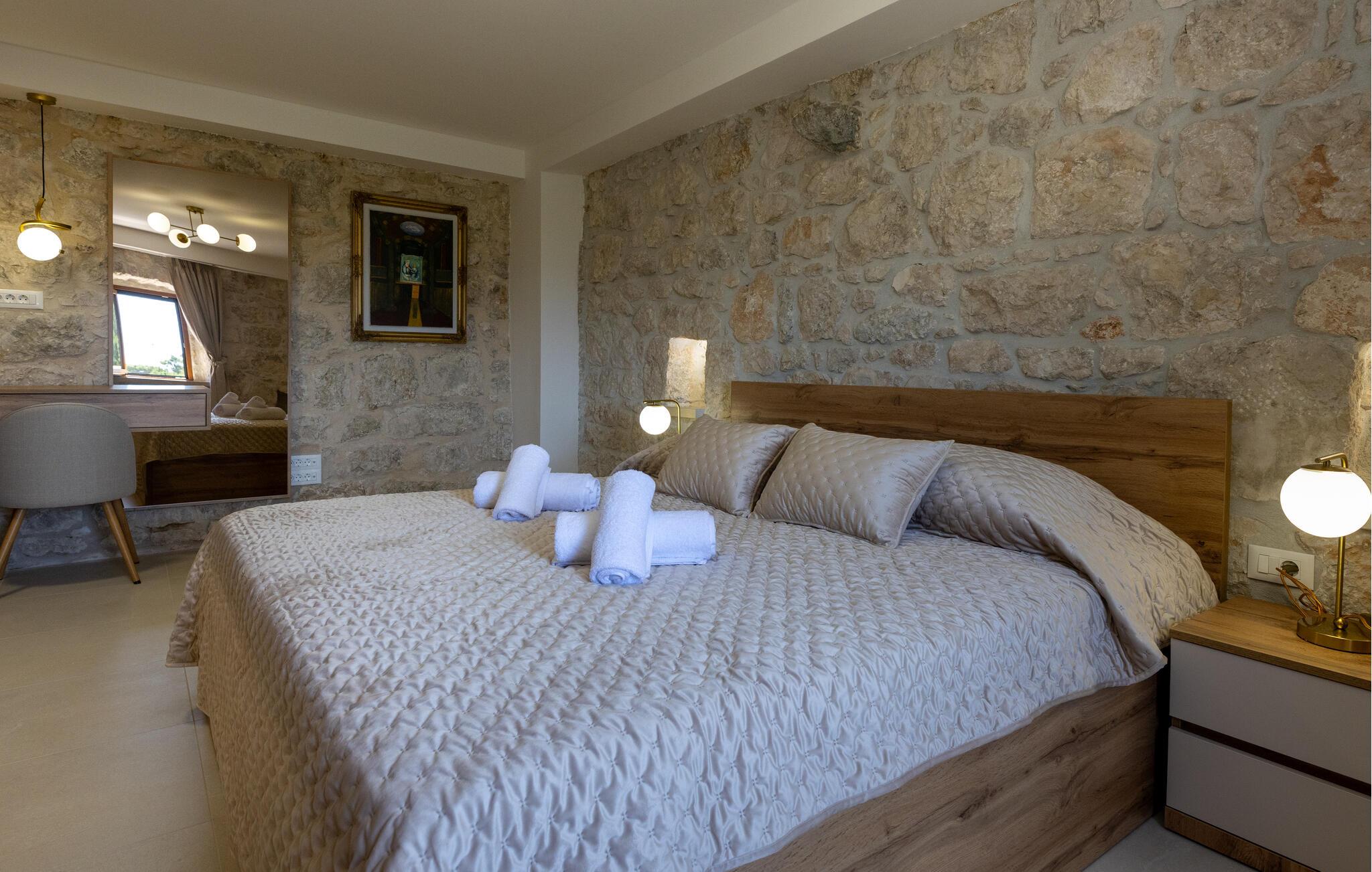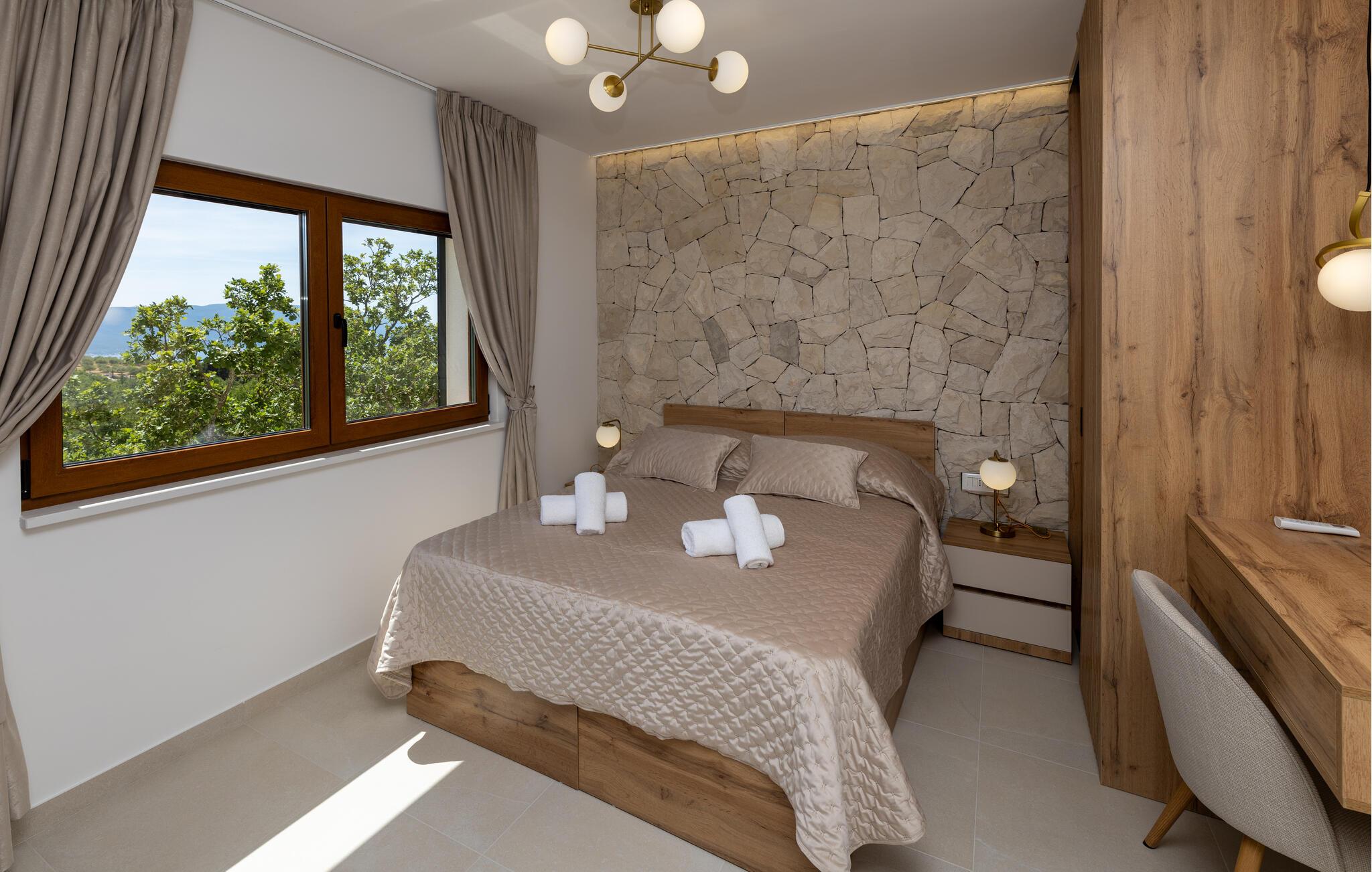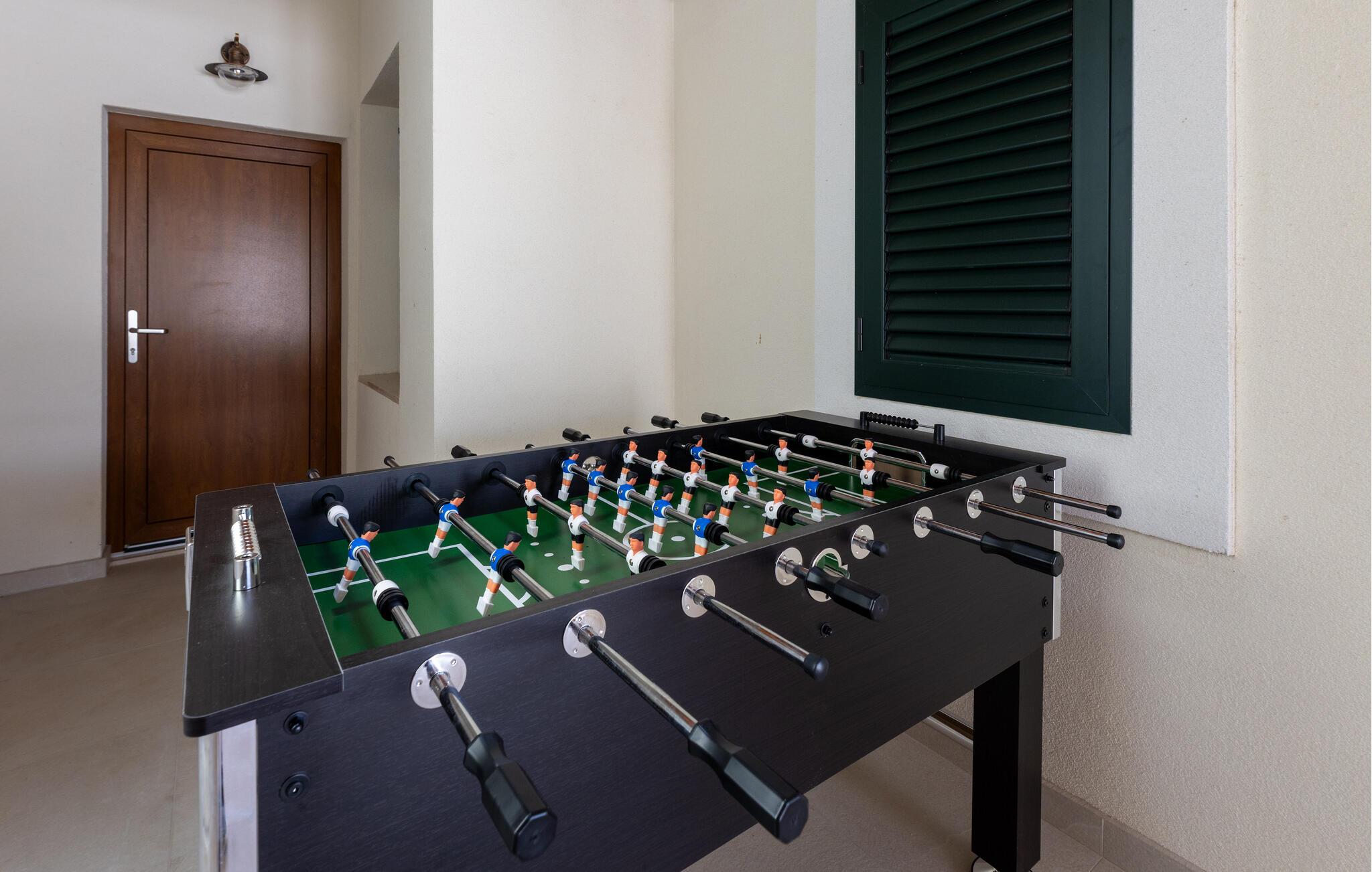 Denne moderne og luksuriøst møblerede villa forkæler jer med adskillige ekstrafunktioner, der vil gøre en hyggelig ferie til en uforglemmelig oplevelse. Mens andre nyder poolbordet eller darttavlen, slapper af i saunaen eller spabadet. Glæd jer til hyggelige madlavningsaftener og Find sammen til hyggelige tv-aftener i den elegante stue.