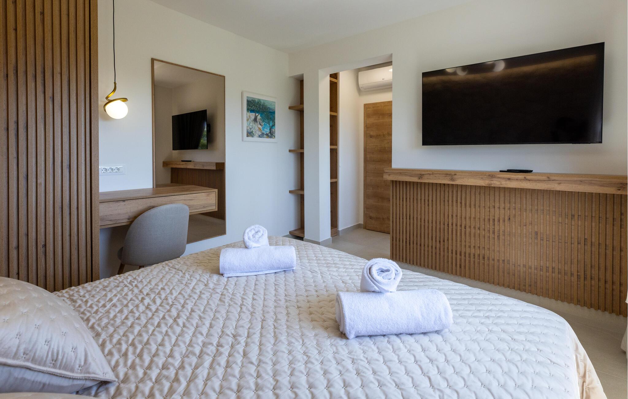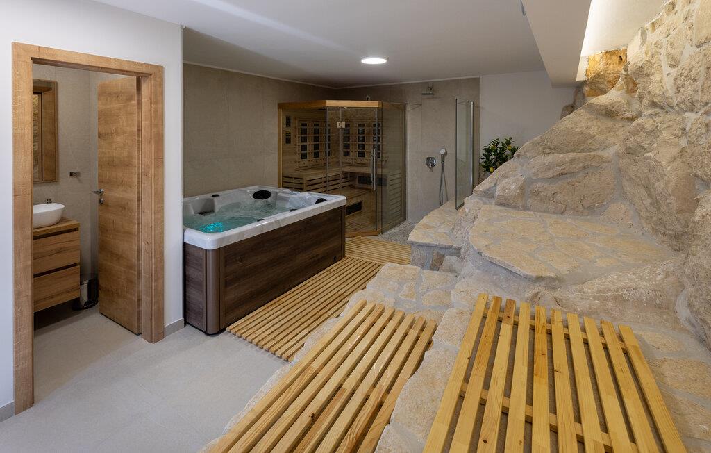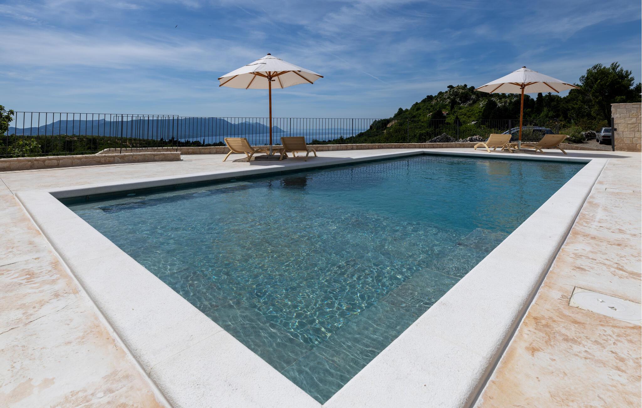 Forkæl jer selv med en drømmeferie i dette rummelige feriehus med pool, wellness-oase og havudsigt.
