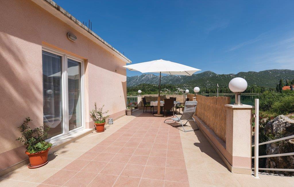 Umiddelbart ved Bacina-søerne venter denne ferielejlighed på første sal. Her råder I over tre soveværelser, en stue med køkken og spiseområde samt et badeværelse. På den rummelige terrasse vil I nok tilbringe den meste tid, mens I nyder udsigten til søerne. Der er kun omkring 10 m til bredden af søen. Bacina er en fredelig dalmatisk by med mange fritidsmuligheder i omgivelserne. Oplev en aktiv og underholdende ferie og tag på udflugter til flotte Dubrovnik, til øen Korcula og til Mostar.