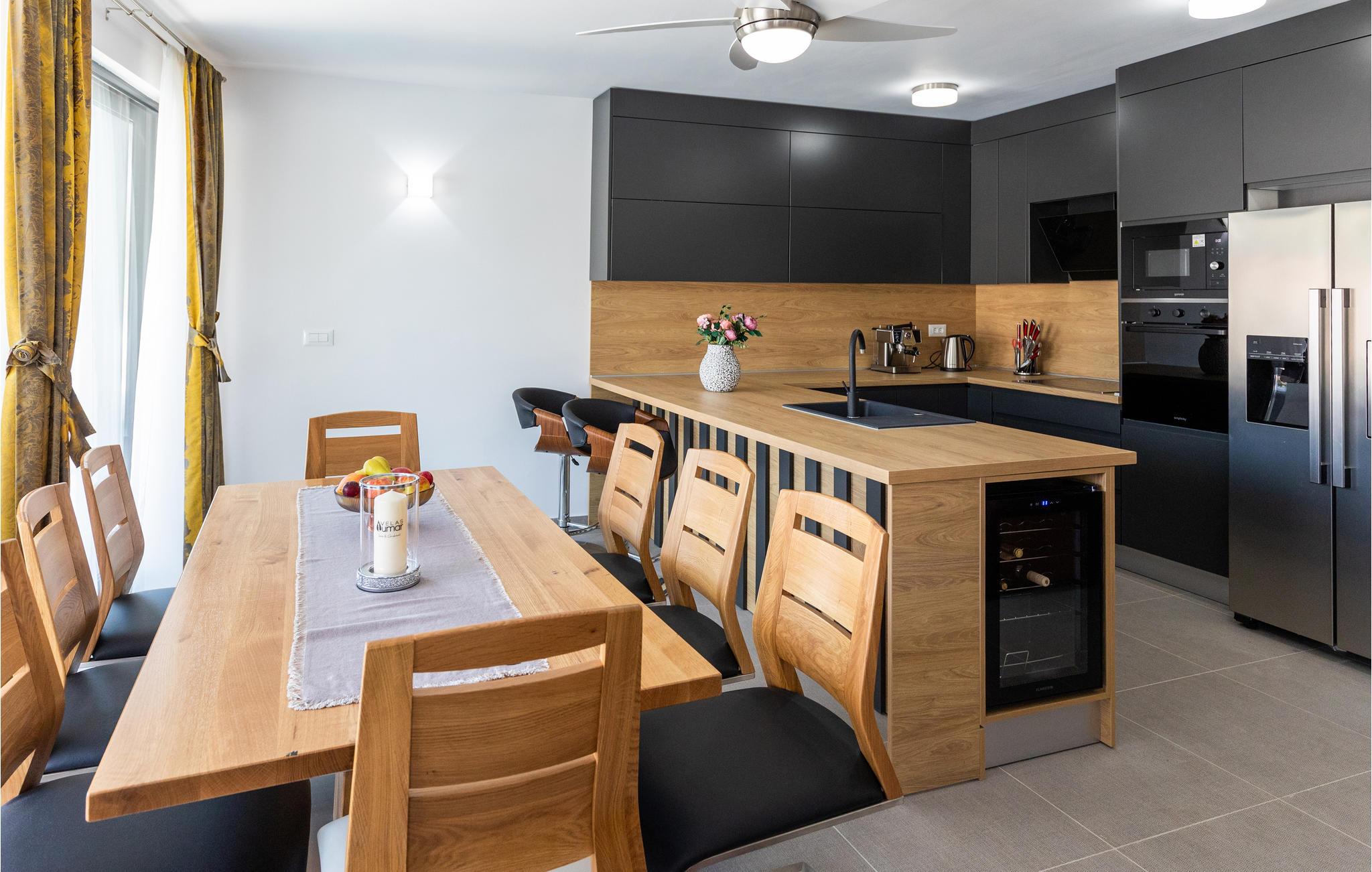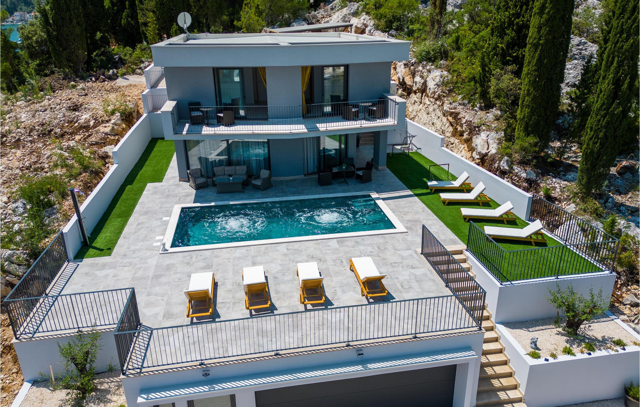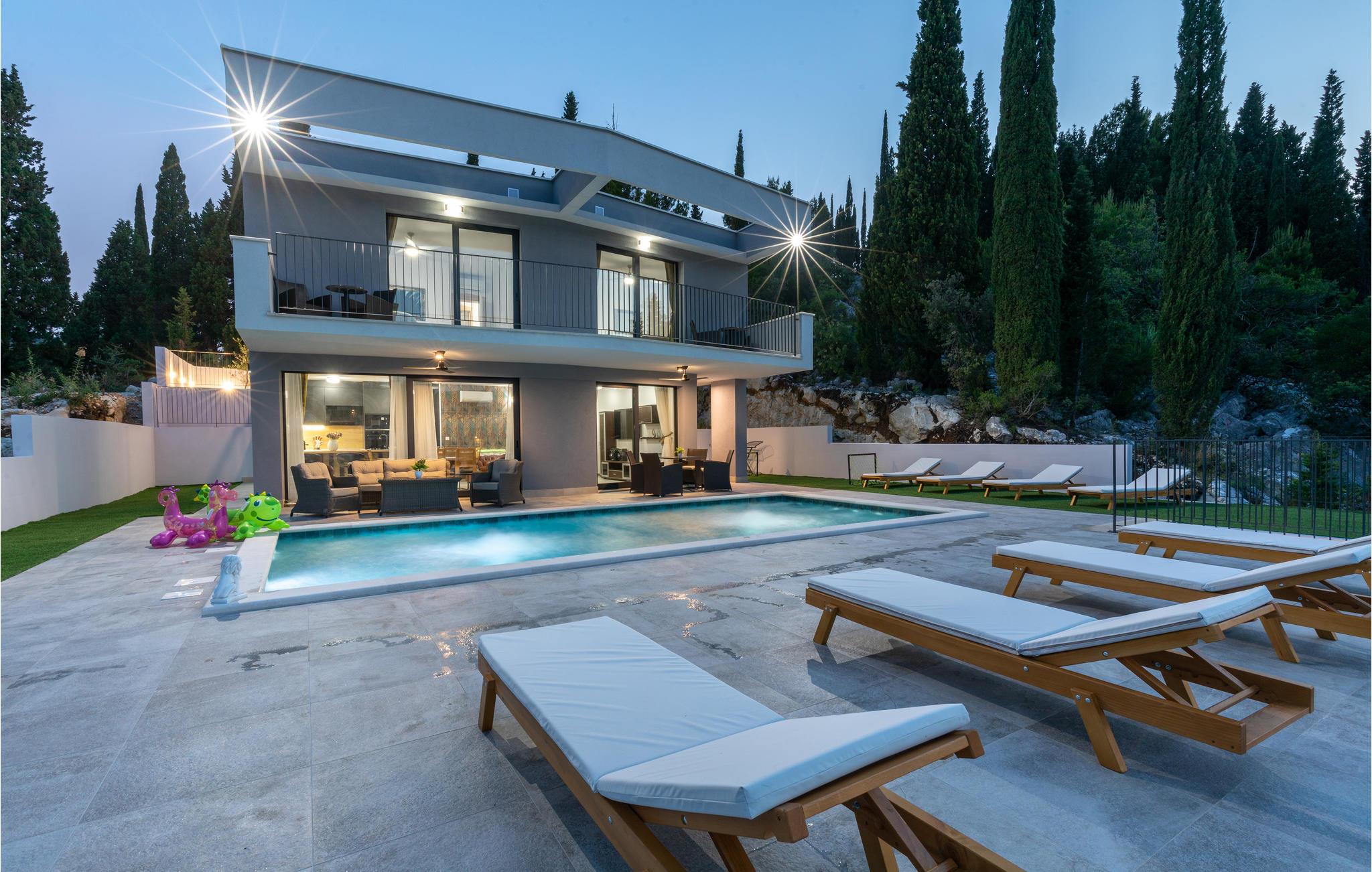 Tilbring en dejlig ferie i dette attraktive feriehus med pool nær havet. Velkommen til dette attraktive og komfortable hus, der tilbyder dig alle de faciliteter, du har brug for til din ferie. Nyd en uforglemmelig tid med familien i huset, som imponerer med sin smagfulde indretning og store panoramavinduer. Tilbring hyggelige aftener her med spil og gode samtaler ved det lange spisebord eller på de indbydende sofaer. Omkring huset er der talrige muligheder for at tilbringe dejlige timer udendørs. Uanset om du nyder udsigten og en kop kaffe på altanen, læser en bog i skyggen på en af terrasserne eller tager sol ved poolen, er du sikker på at slappe af på ferien. Du kan nemt nå den smukke sandstrand til fods. Du kan nyde det krystalklare hav i afsondrede bugter og på små strande. Slap af i det maleriske naturscenarie mellem fyrreskove, floder, havet og imponerende klippeformationer. Den nærliggende Dubrovnik eller Peljesac-halvøen med sine berømte vinmarker samt øen Korcula, kendt som hjemsted for opdagelsesrejsende Marco Polo, er velegnede til længere ture. I nord finder du Mostar med den Unesco-beskyttede bro, pilgrimsrejsestedet Medjugorje og øerne Hvar og Brac. Glæd dig til en mindeværdig ferie i det sydlige Dalmatien.