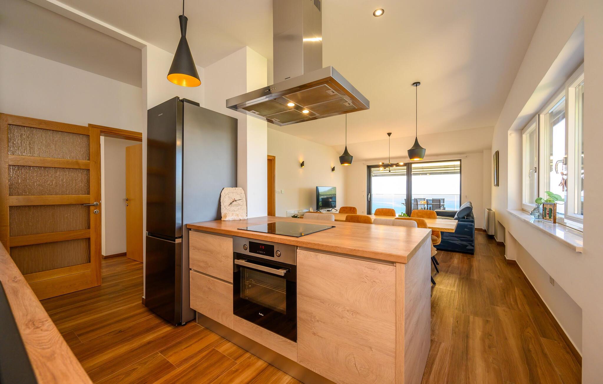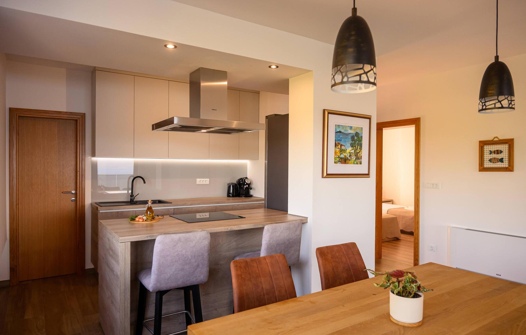 I kommer næppe til at bo tættere på vandet end i denne smukke ferielejlighed med en vidunderlig panoramaudsigt. Tilbring en vidunderlig tid med familien eller venner i denne moderne og stilfuldt indrettede feriebolig. Fra altanen har I en fantastisk udsigt over kysten. Her kan I spise en dejlig morgenmad sammen, mens I planlægger jeres dag, og senere nyde en kølig drink og beundre solnedgangen over vandet. Husets pool giver mulighed for forfriskende dukkerter, mens aircondition indenfor sørger for en behagelig temperatur alle tider af året.