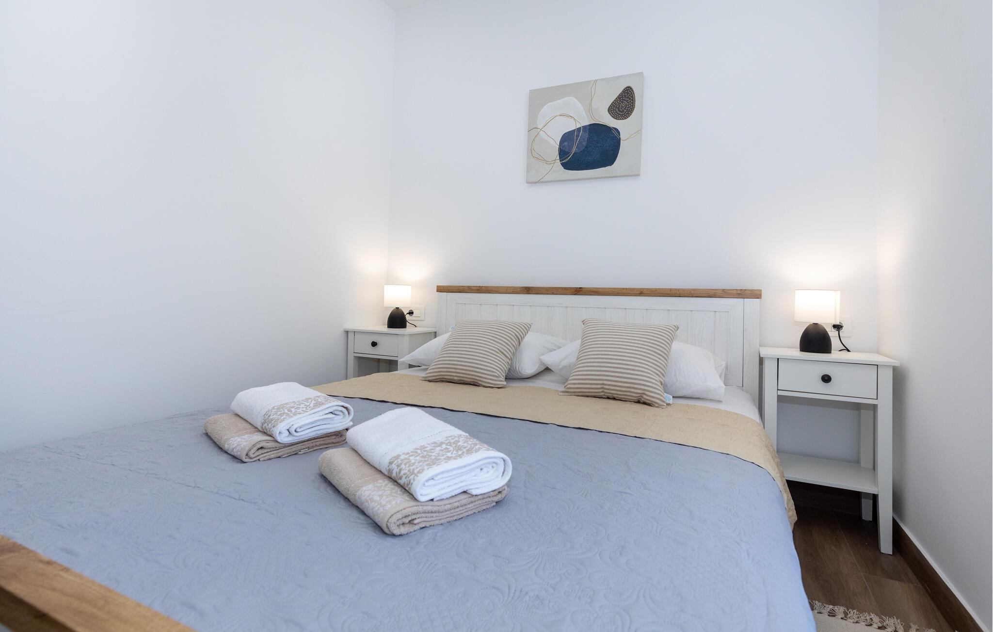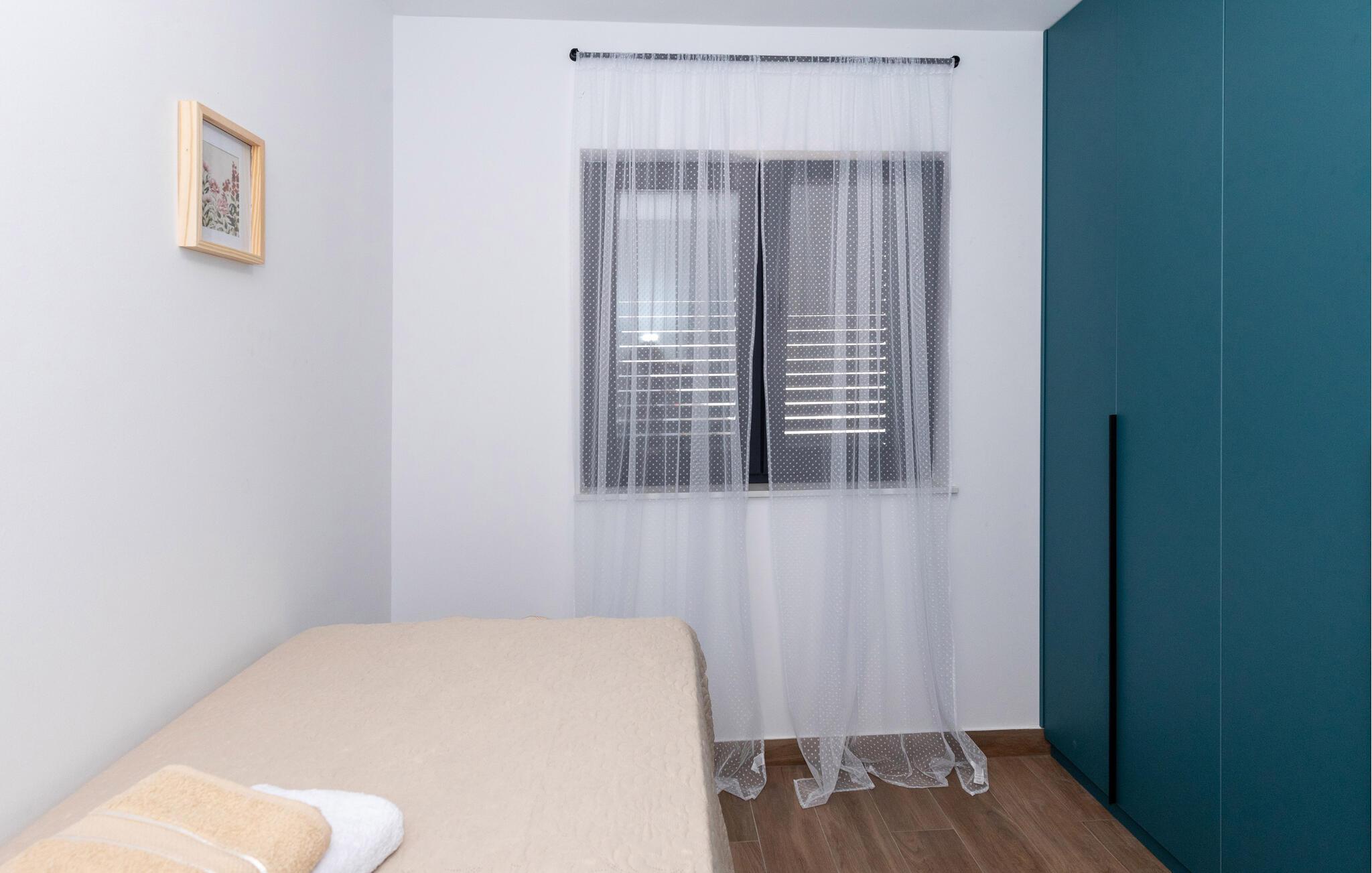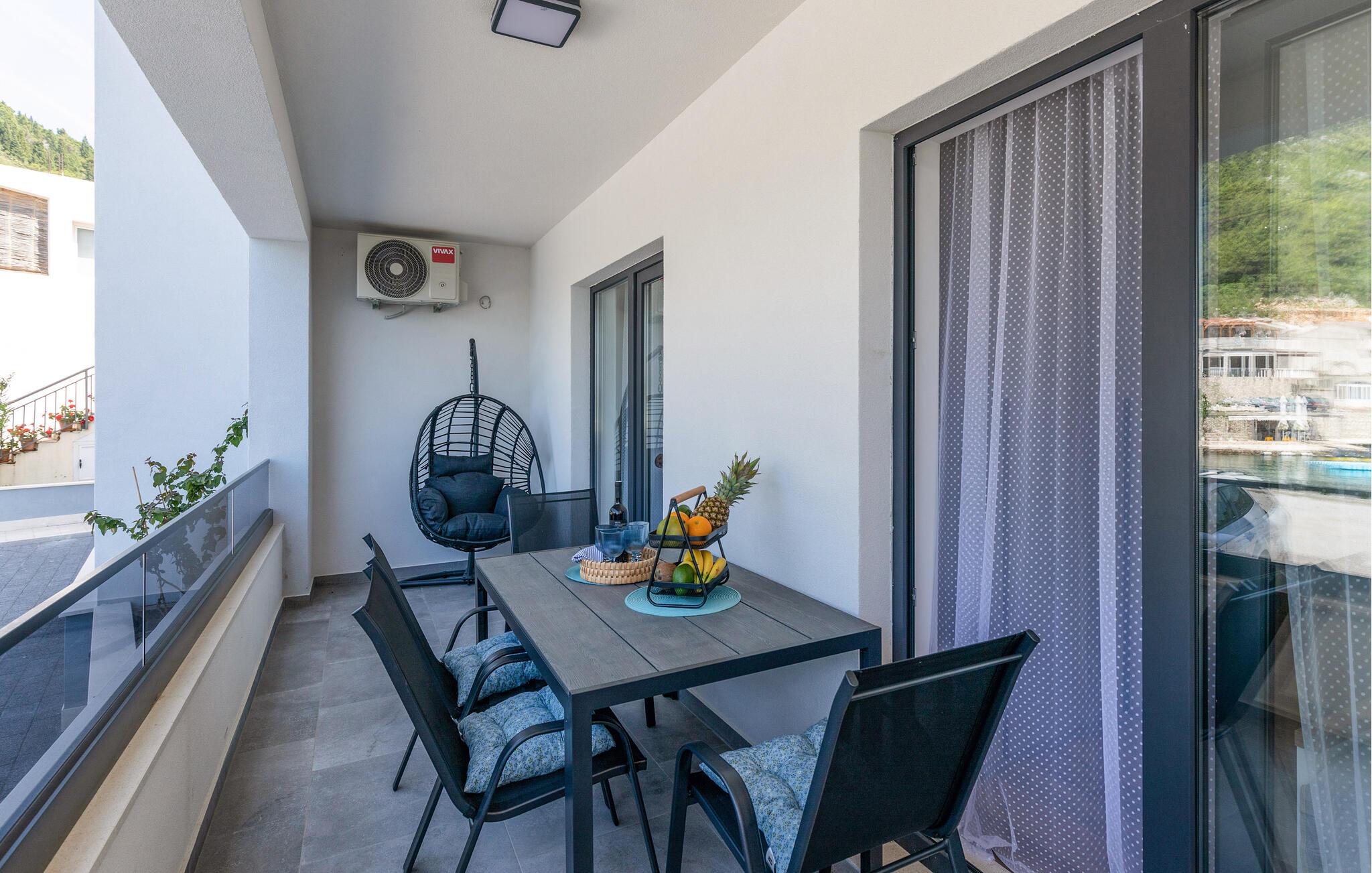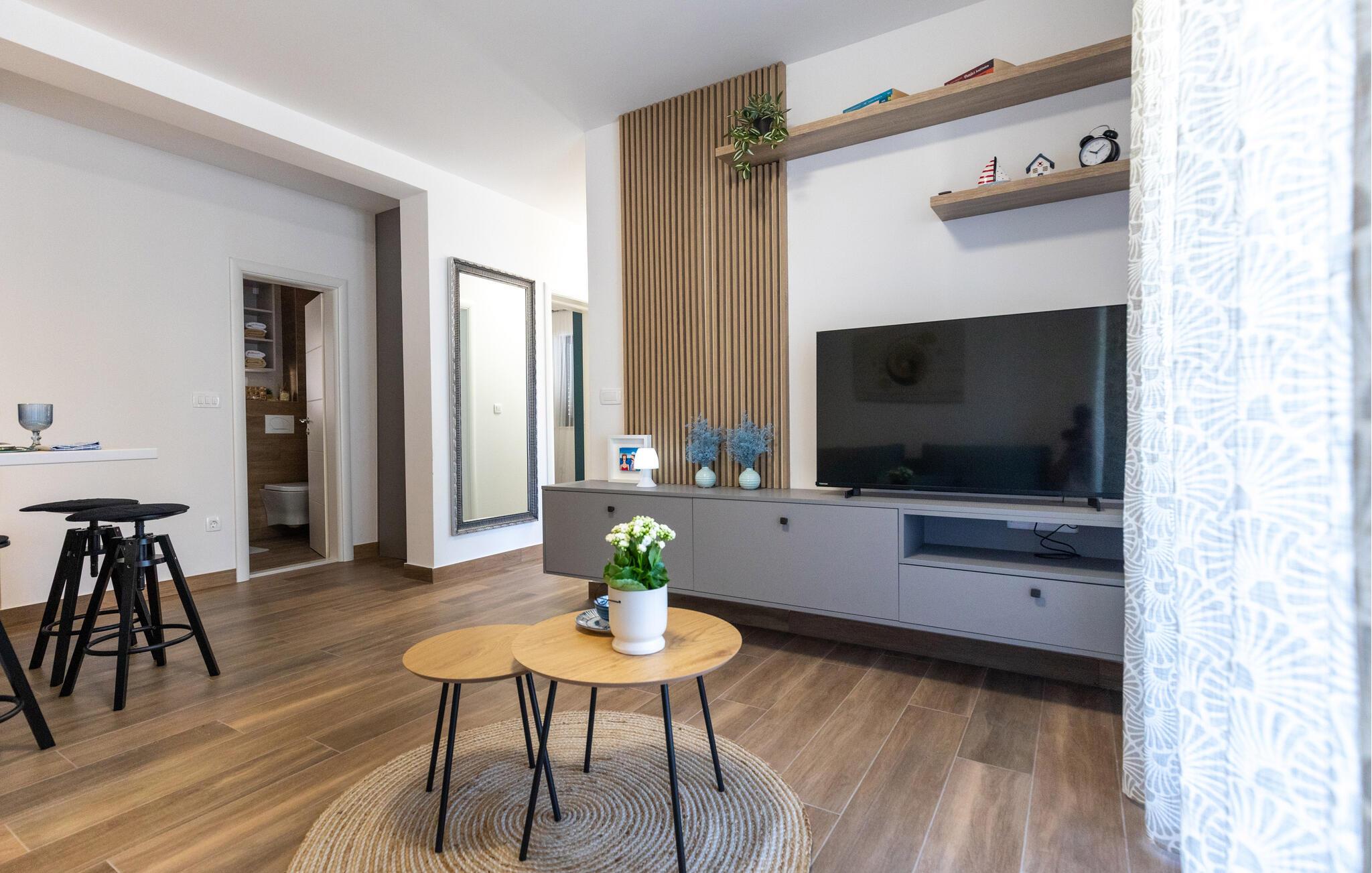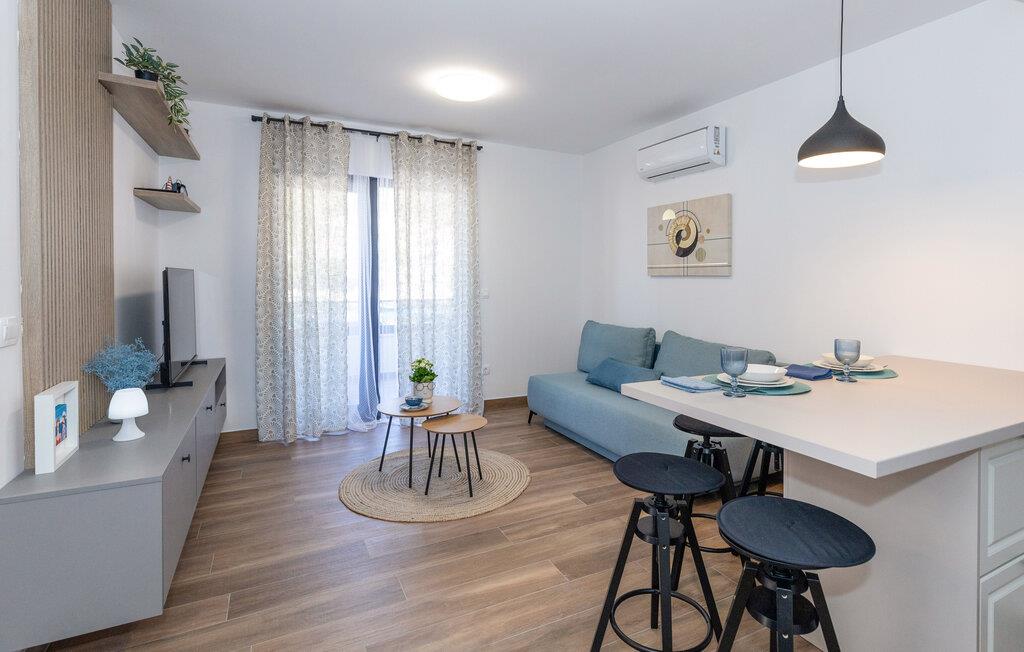 Rejs til det sydlige Kroatien med familien og flyt ind i denne lejlighed, der er en herlig base for en ferie med masser af sol, strand og vand. Trods sin beskedne størrelse er boligen kompakt og flot indrettet med alt, I behøver til at kunne slappe af før, mellem og efter jeres udflugter. Køkkenet er fuldt udstyret, og her kan I lave noget god mad og nyde maden ved spisebordet, inden I smækker fødderne op i sofaen og smider en god film på tv'et.
