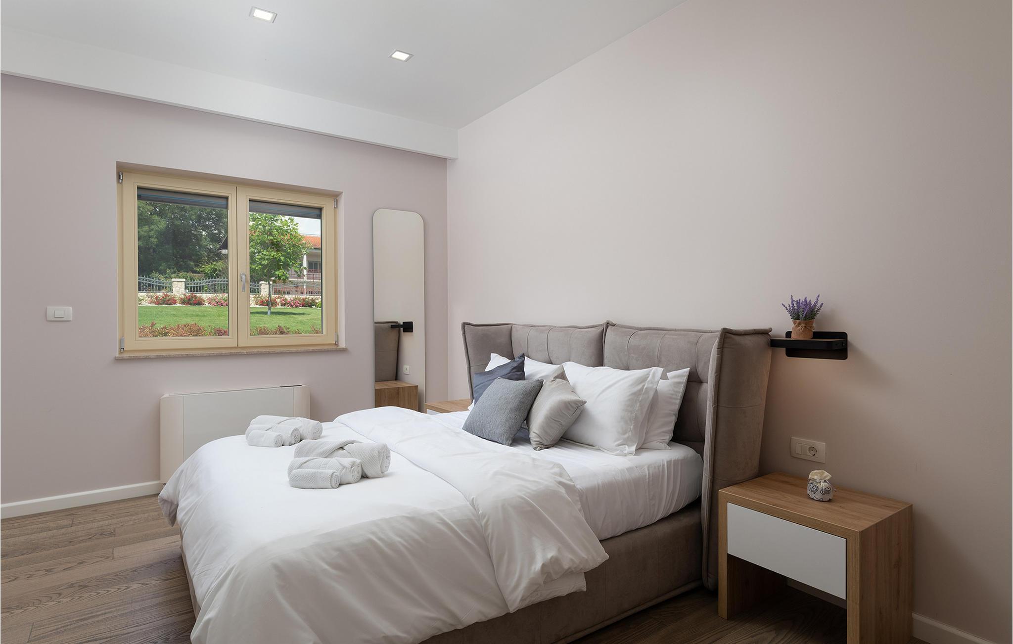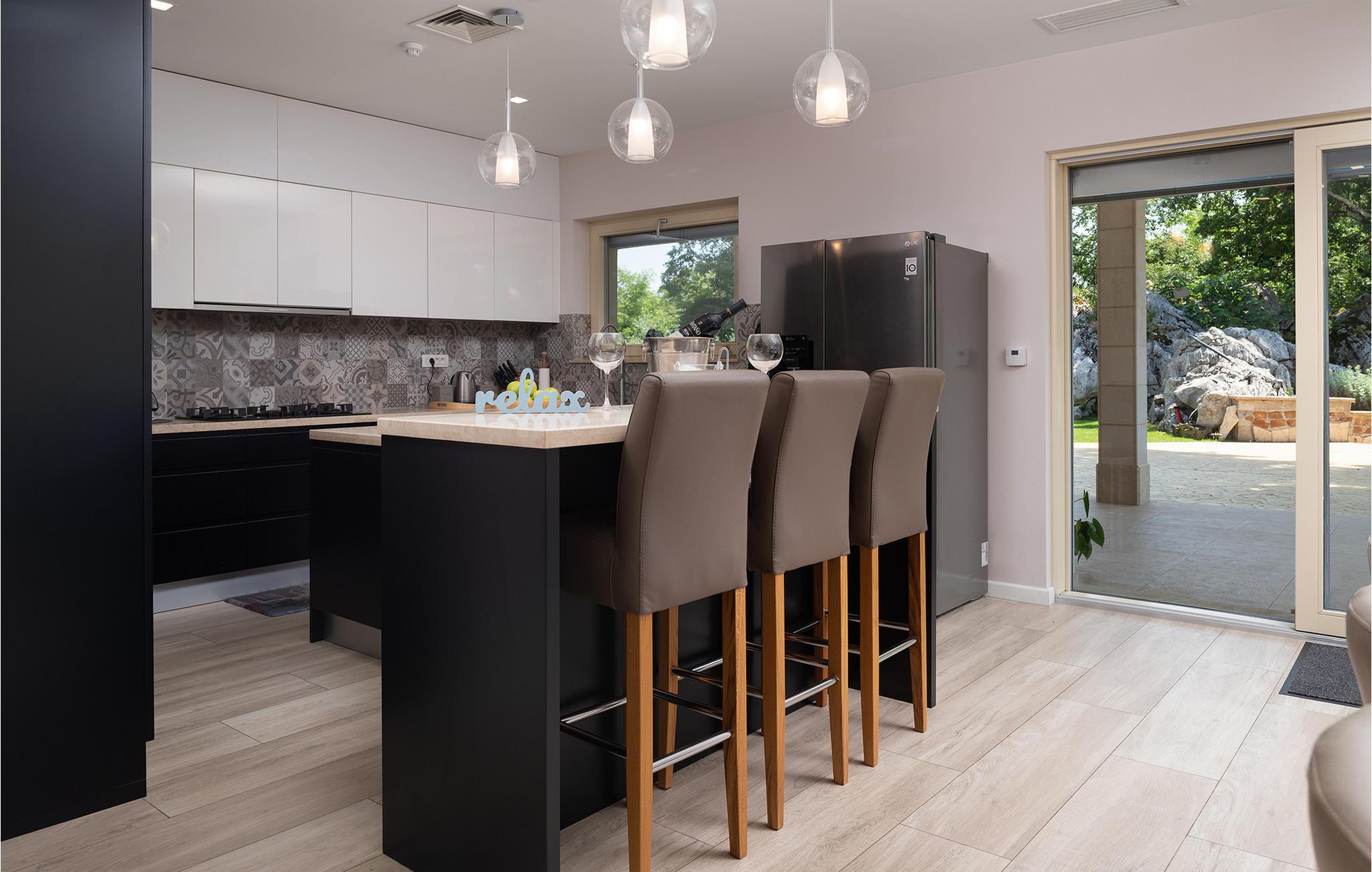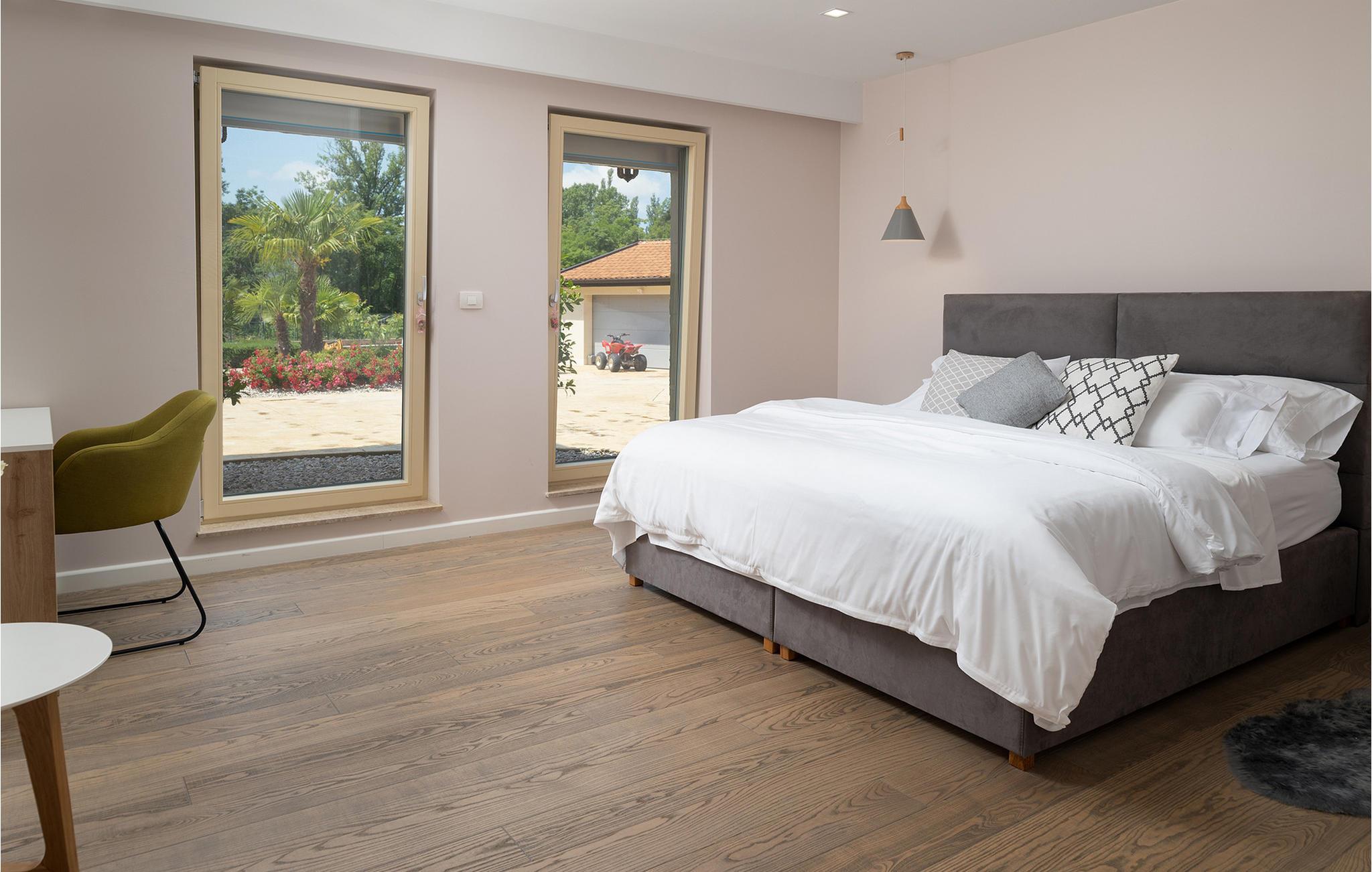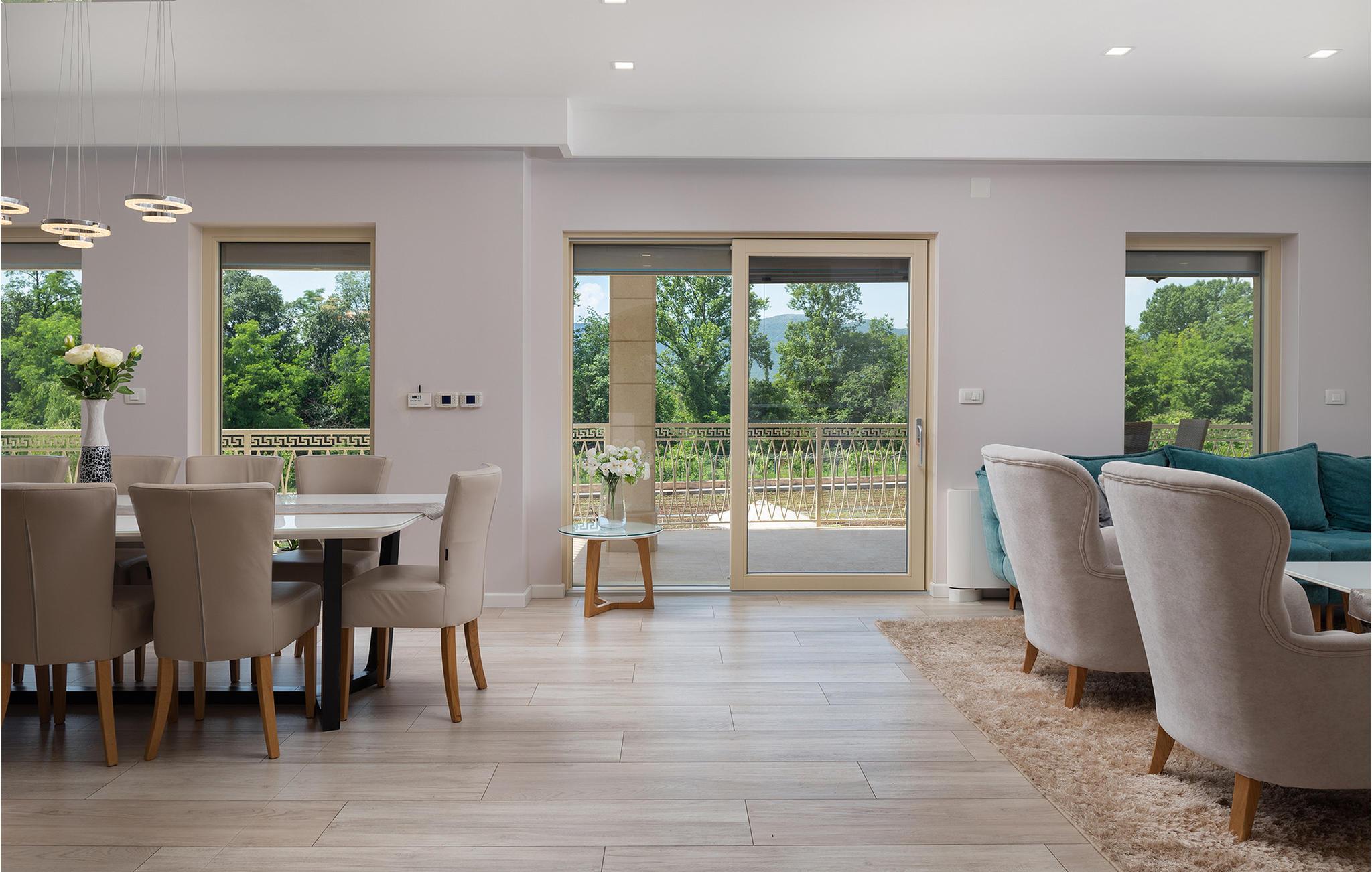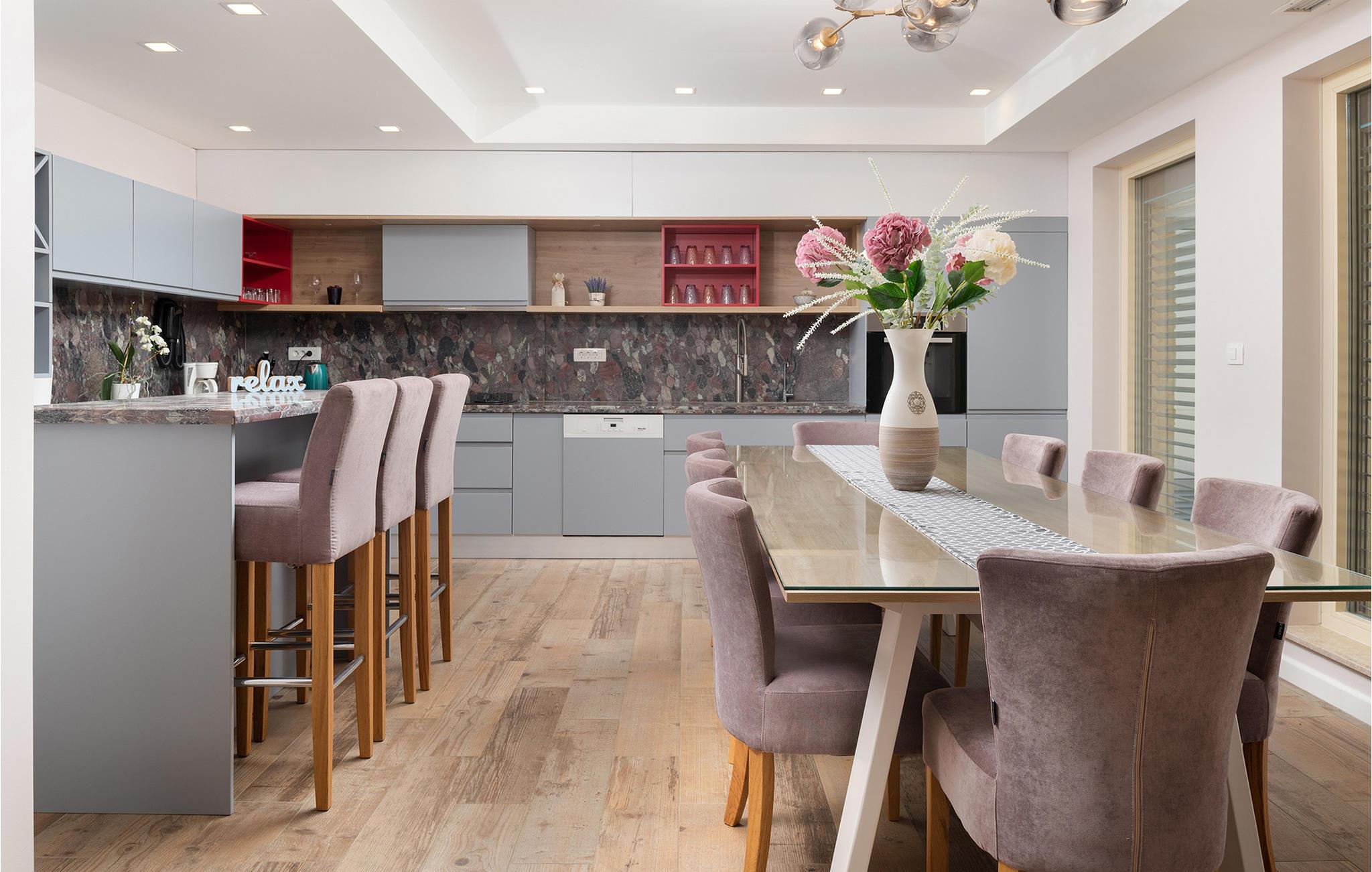 Dette rummelige og elegant designede hus er perfekt til en uforglemmelig ferie med familie og venner. Her finder I masser af plads til at slappe af, luksuriøs komfort og nok private rum til at nyde hvert øjeblik. De stilfulde møbler og den harmoniske atmosfære lægger op til at slappe af, lave mad sammen eller tilbringe hyggelige aftener i det lyse opholdsområde.