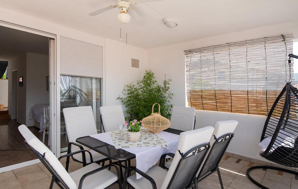 Her er stue, køkken, spisestue, tre soveværelser og bad med separat toilet. Stranden med klipper finder I bare 20 meter fra lejligheden, stenstranden 100 meter væk.