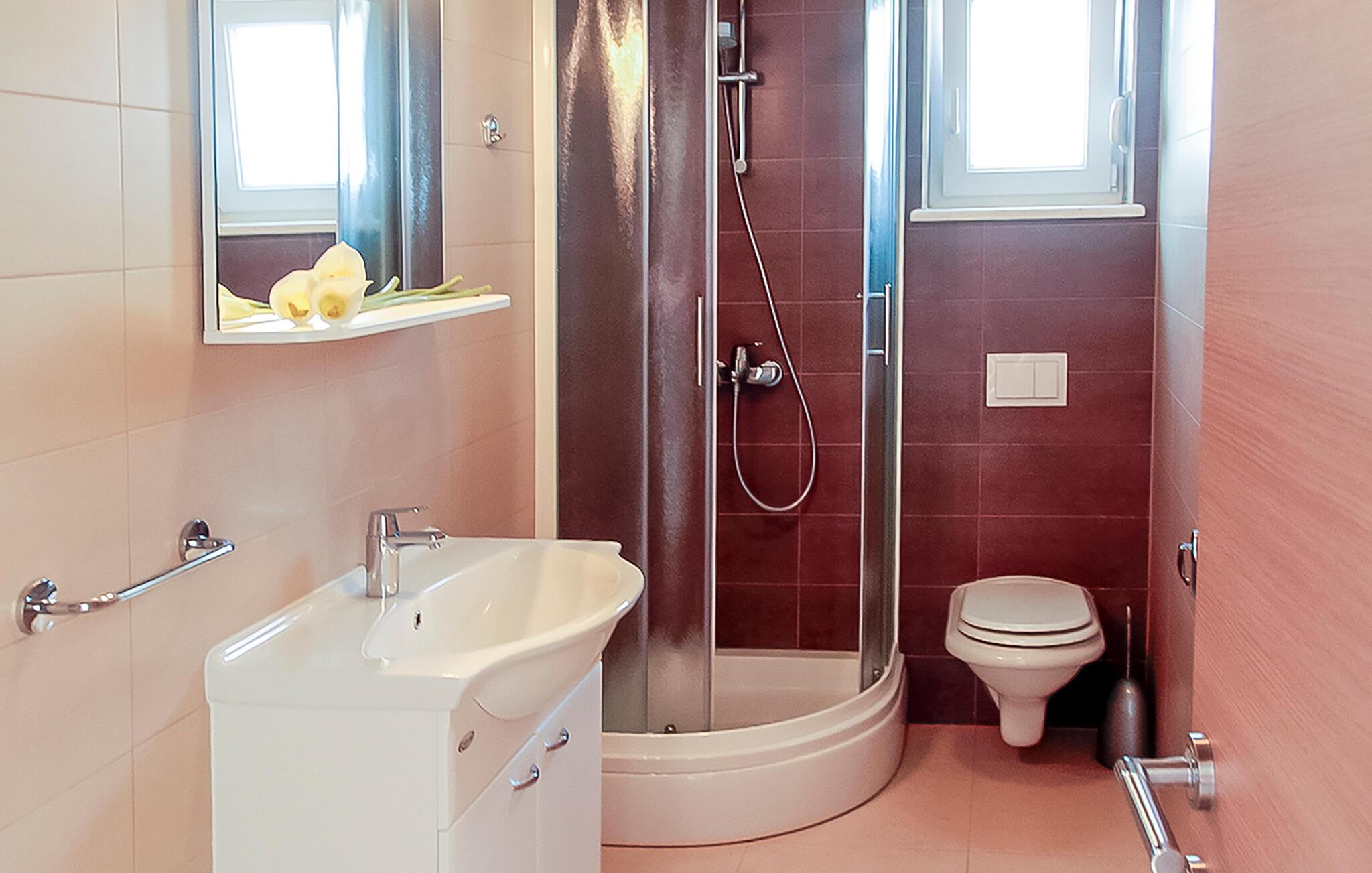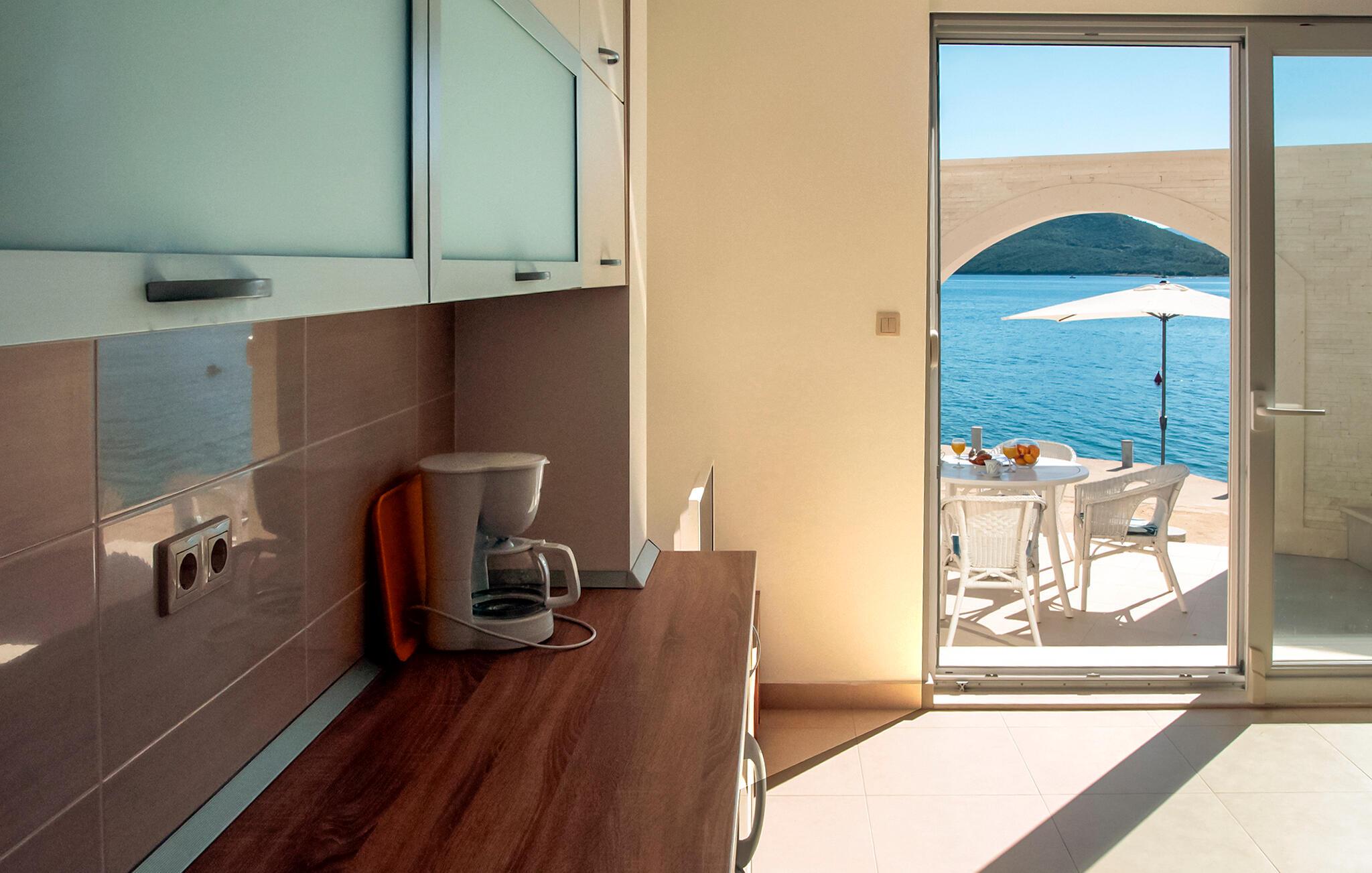 Denne lejlighed er perfekt til en forfriskende ferie ved havet. I vil ikke kun nyde en vidunderlig udsigt over det azurblå Adriaterhav, men også alle de faciliteter, I har brug for til en ubekymret ferie. Slap af i den komfortable sofa med en kop kaffe, stream den nyeste serie eller tilbered frisk fisk og skaldyr i køkkenet.