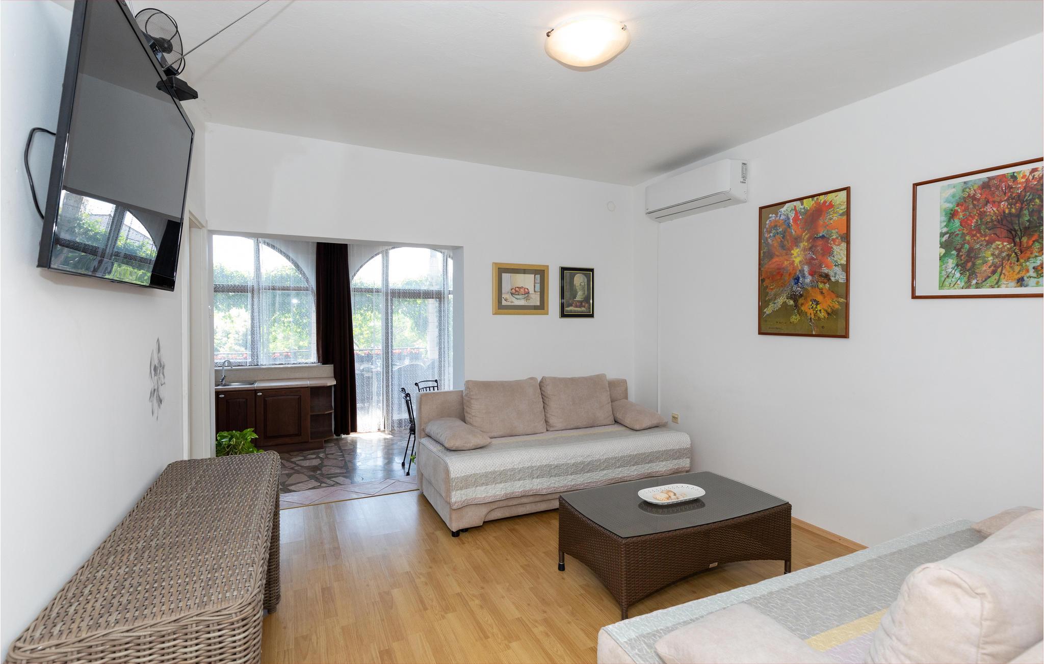To dejlige ferielejligheder, tæt på havet, ideel til to familier der gerne vil holde ferie sammen. CDR136 er lidt større og ligger på første sal, mens CDR166 ligger på anden sal. Fra den overdækkede altaner med udsigt over havet, kan I nyde at betragte solen glide i havet i et væld af farver. I havens bageste del er der en fælles plæne, så mens nogle er praktiske og sørger for maden, kan andre slappe af og nyde solen. Den nærmeste kiesstrand ligger 50 m væk. Komarna er en lille by der ligger perfekt når I vil besøge Dubrovnik, Mostar eller øen Korcula.