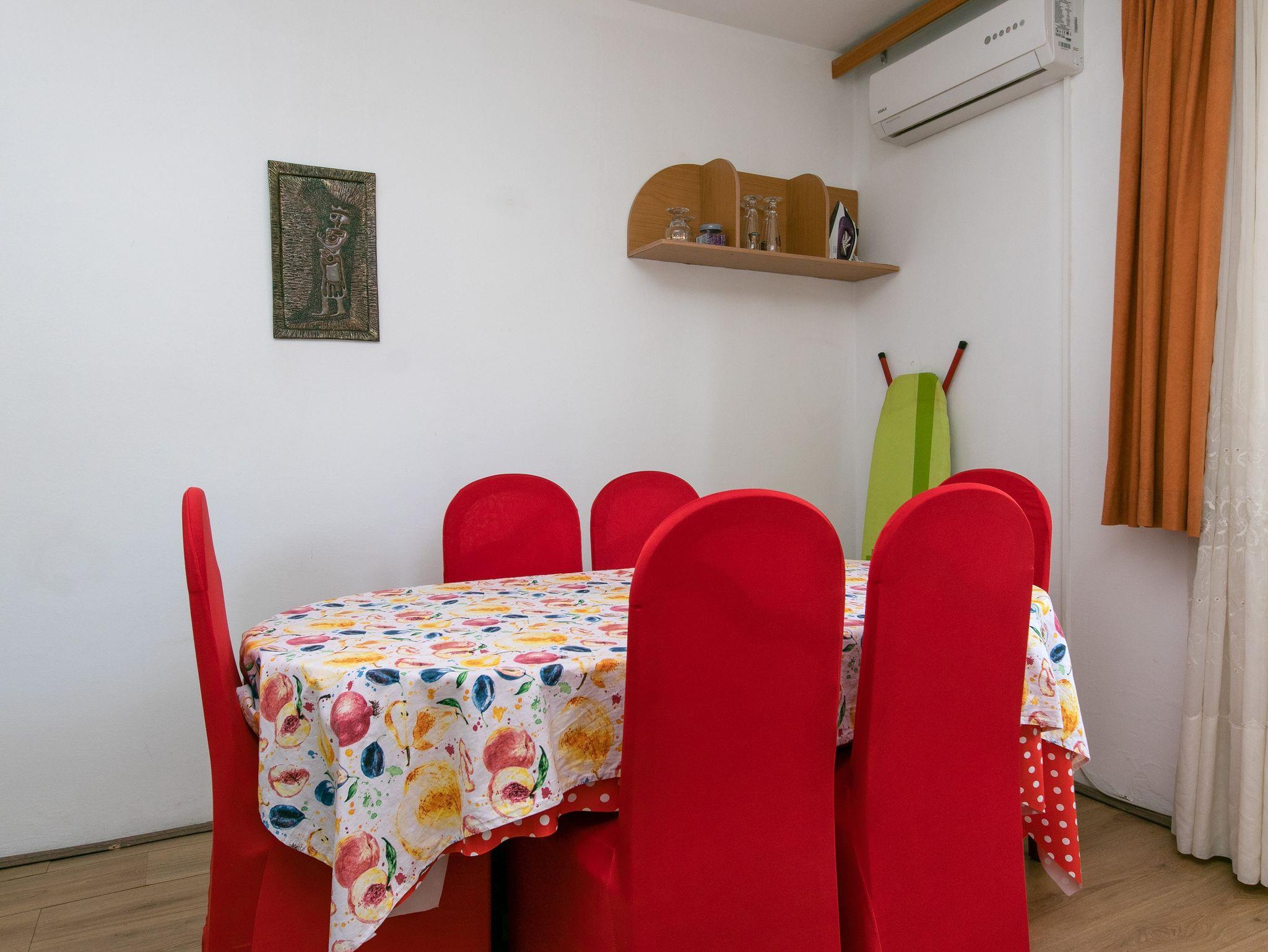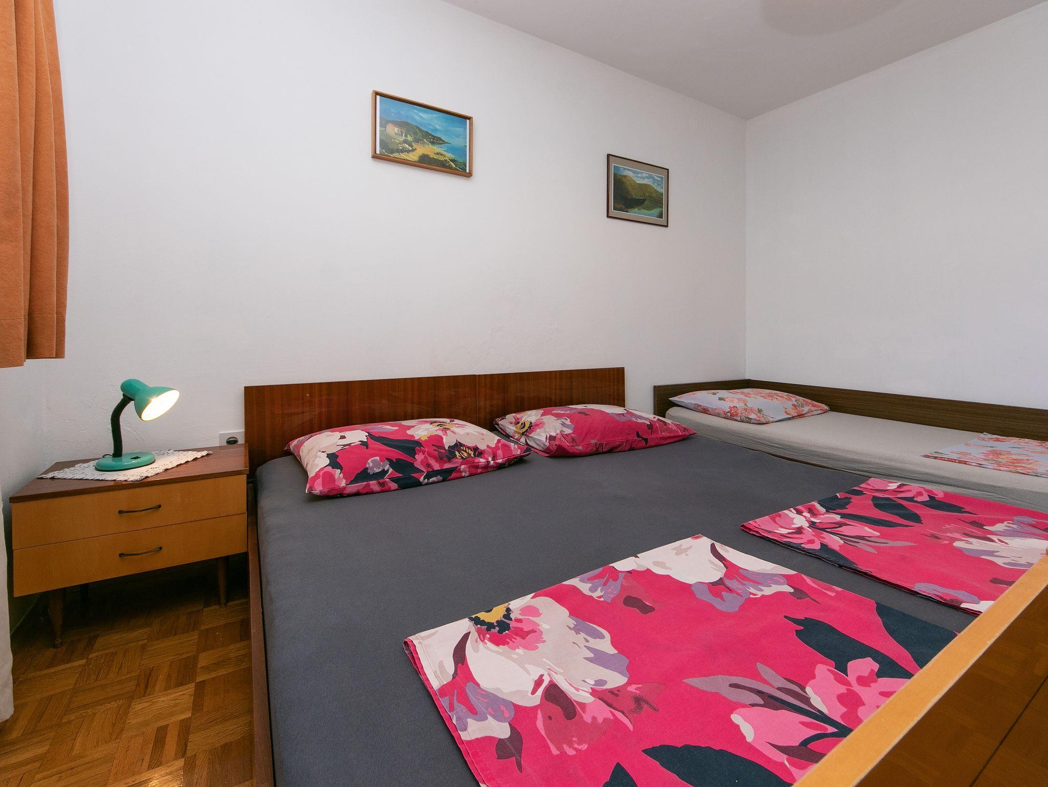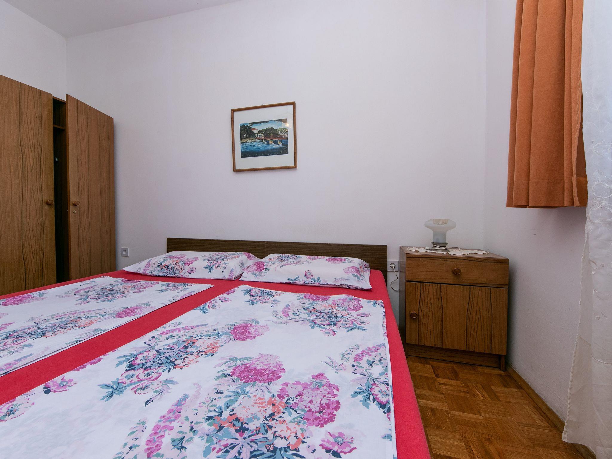 Ferienwohnung bietet Platz für 7 Gäste. Die Betten sind in Schlafzimmern, die es 2 gibt, und in Wohnzimmer, innerhalb einer Gesamtfläche von 56m2, angeordnet. Die Gäste haben einen eigenen Balkon zur Verfügung, auf der sie in warmen Sommernächten genießen können. Es ist erlaubt, Speisen auf dem Gemeinschafts-Grill vorzubereiten. IM PREIS INBEGRIFFEN: Kurtaxe, Endreinigung, Klimatisierung, Parkplatz, Internet, Bootsanlegeplatz, Bügeleisen, Bügelbrett, Föhn. VERBINDLICHE ZUSÄTZLICHE KOSTEN: Aufzahlung für Kurzaufenthalte (prozentualer Zuschlag pro Nächtigungsanzahl: 30% - 1, 20% - 2, 10% - 3). Die Verfügbarkeit zusätzlicher Dienstleistungen in Ihrem reservierten Termin und die Preise derselben (falls nicht aufgeführt) müssen im Voraus überprüft werden. Zusätzliche Dienstleistungen die in der Zahlungsaufforderung nicht aufgeführt sind werden direkt beim Vermieter bezahlt, angenommen der Gast nutzt auch diese.