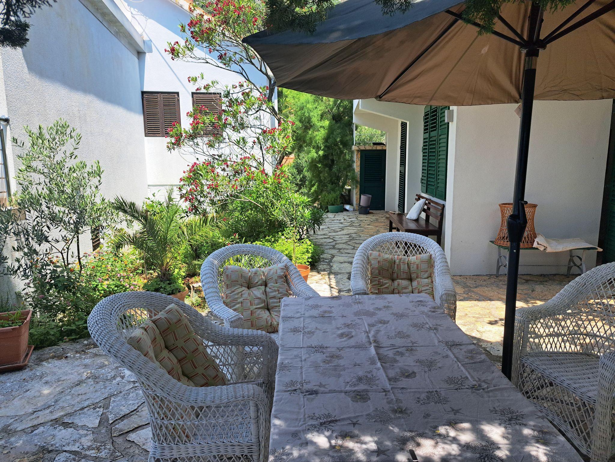 Hof (50m2, Sitzbereich), Parkplatz (Anzahl der Parkplätze: 5, Entfernung vom Objekt: 50 m), WiFi Internet, Bootsanlegeplatz (Entfernung vom Objekt: 60 m, Bootsanlegeplatztyp: Boje), Föhn, Bügeleisen, Bügelbrett, Tragbarer Grill, Sonnenschirm, Liegestühle
