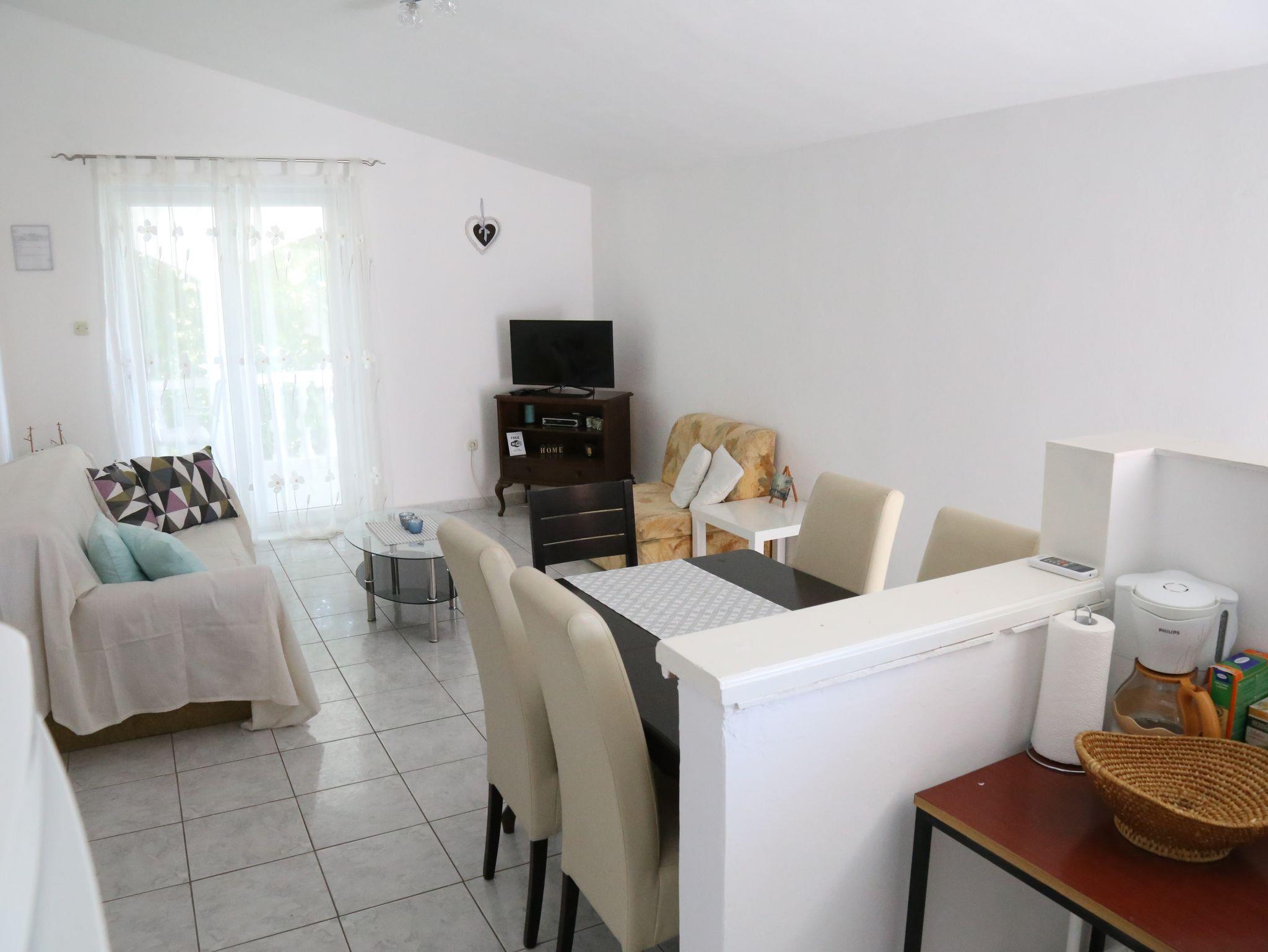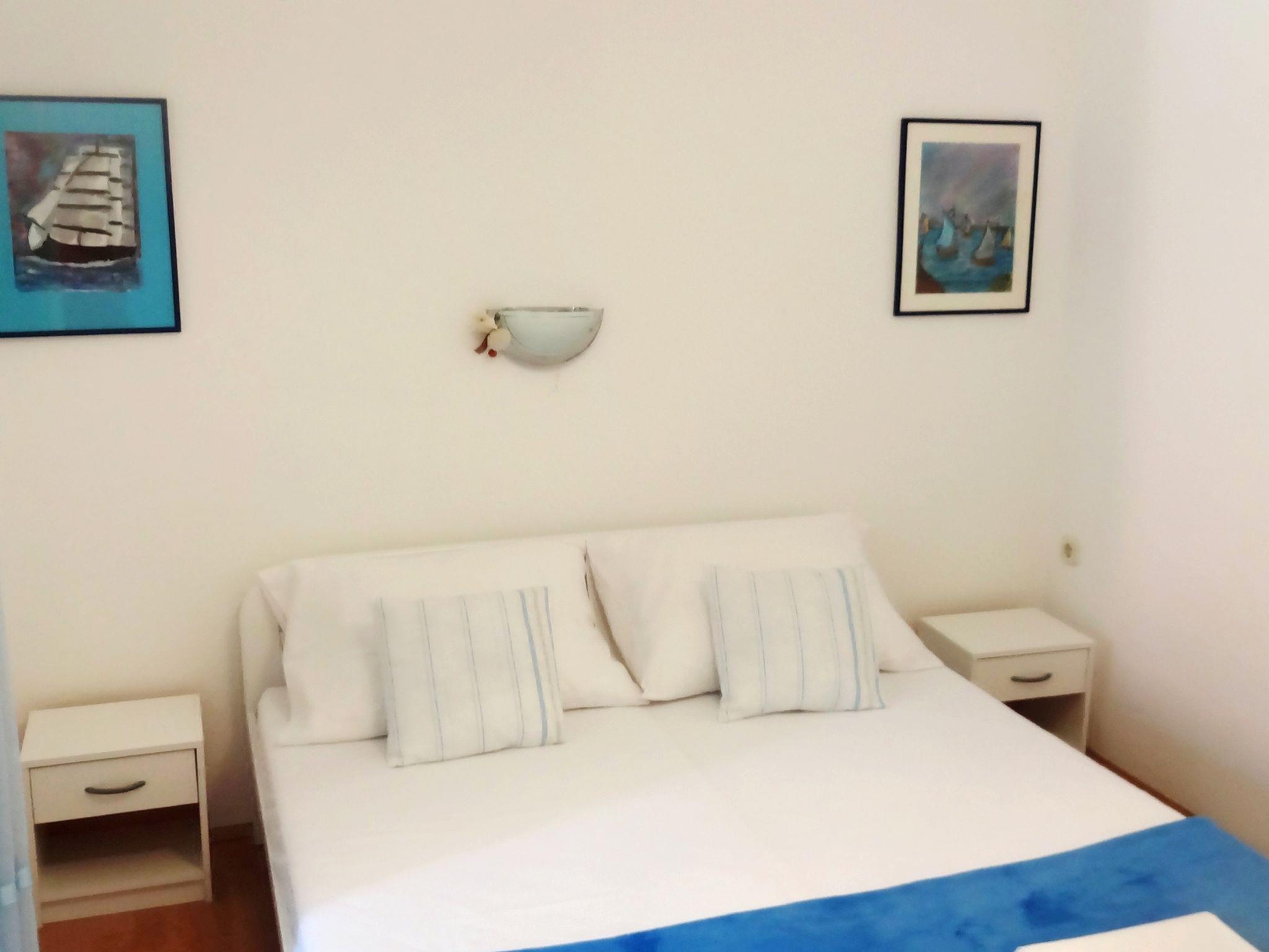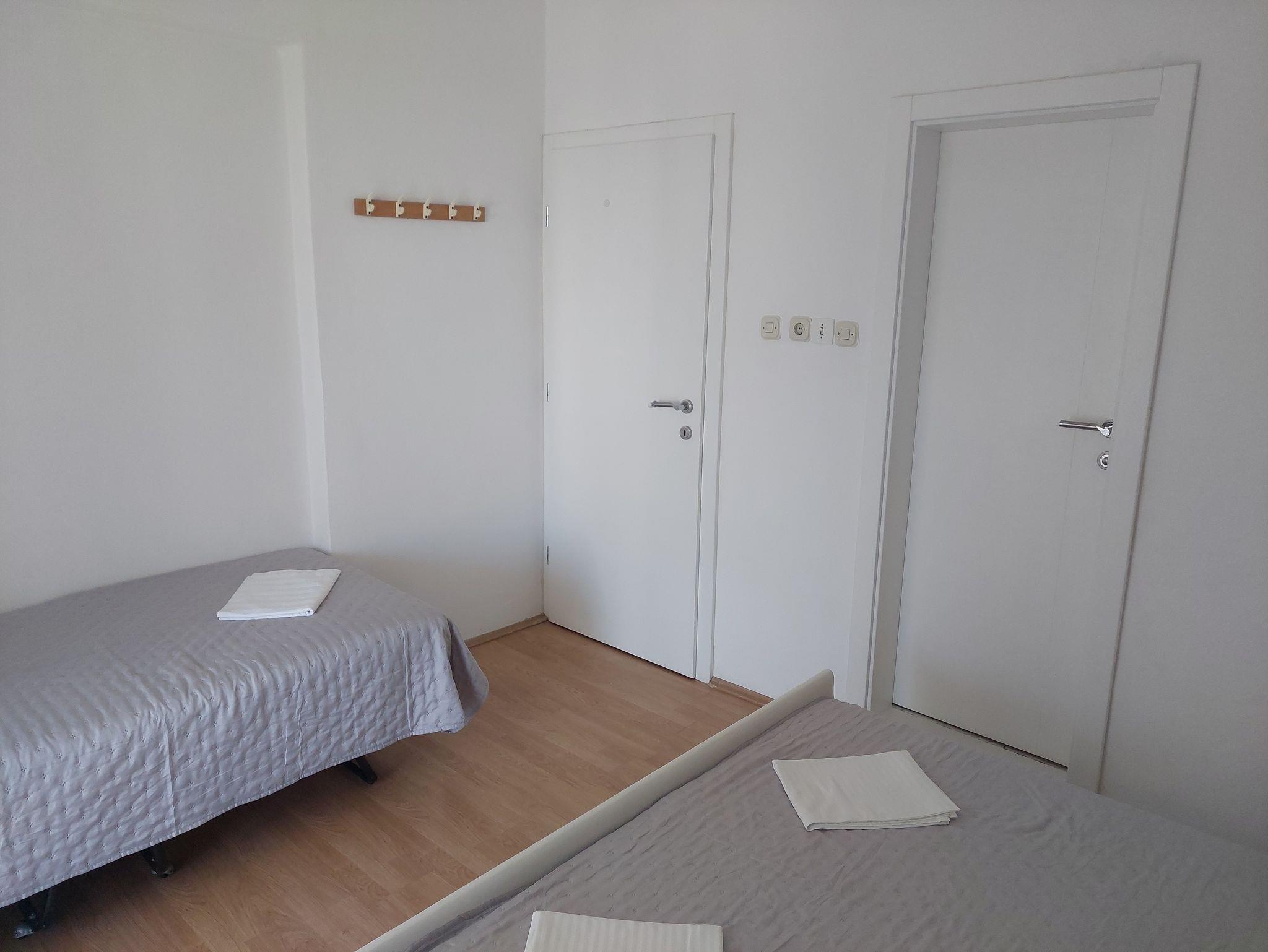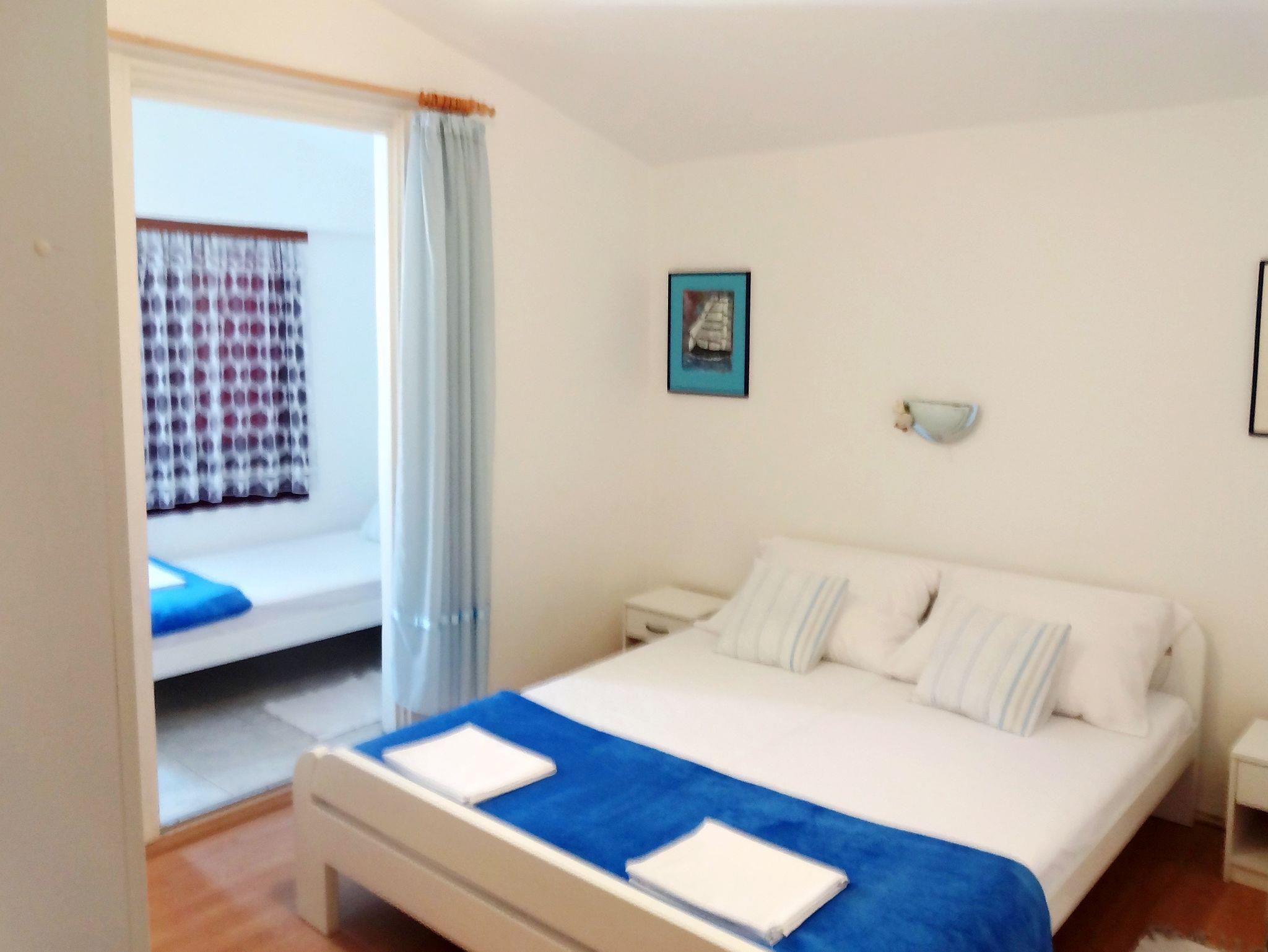 Ferienwohnung bietet Platz für 6 Gäste. Die Betten sind in Schlafzimmern, die es 2 gibt, innerhalb einer Gesamtfläche von 78m2, angeordnet. Die Gäste haben eine eigene Terrasse zur Verfügung, auf der sie in warmen Sommernächten genießen können. Das Apartment bietet Meerblick. Es ist erlaubt, Speisen auf dem Gemeinschafts-Grill vorzubereiten. IM PREIS INBEGRIFFEN: Kurtaxe, Endreinigung, Klimatisierung, Parkplatz, Internet, Wäschewaschen, Kinderbett, Zusatzbett, Bügeleisen, Bügelbrett, Föhn. VERBINDLICHE ZUSÄTZLICHE KOSTEN: Aufzahlung für Kurzaufenthalte (prozentualer Zuschlag pro Nächtigungsanzahl: 30% - 1, 20% - 2, 10% - 3). Die Verfügbarkeit zusätzlicher Dienstleistungen in Ihrem reservierten Termin und die Preise derselben (falls nicht aufgeführt) müssen im Voraus überprüft werden. Zusätzliche Dienstleistungen die in der Zahlungsaufforderung nicht aufgeführt sind werden direkt beim Vermieter bezahlt, angenommen der Gast nutzt auch diese. Ermäßigung auf den Grundpreis: Gratistag 14=13 (bei einem Aufenthalt von 14 Tagen oder mehr erhalten Sie einen Gratistag für den Aufenthalt bis 31.12.26).