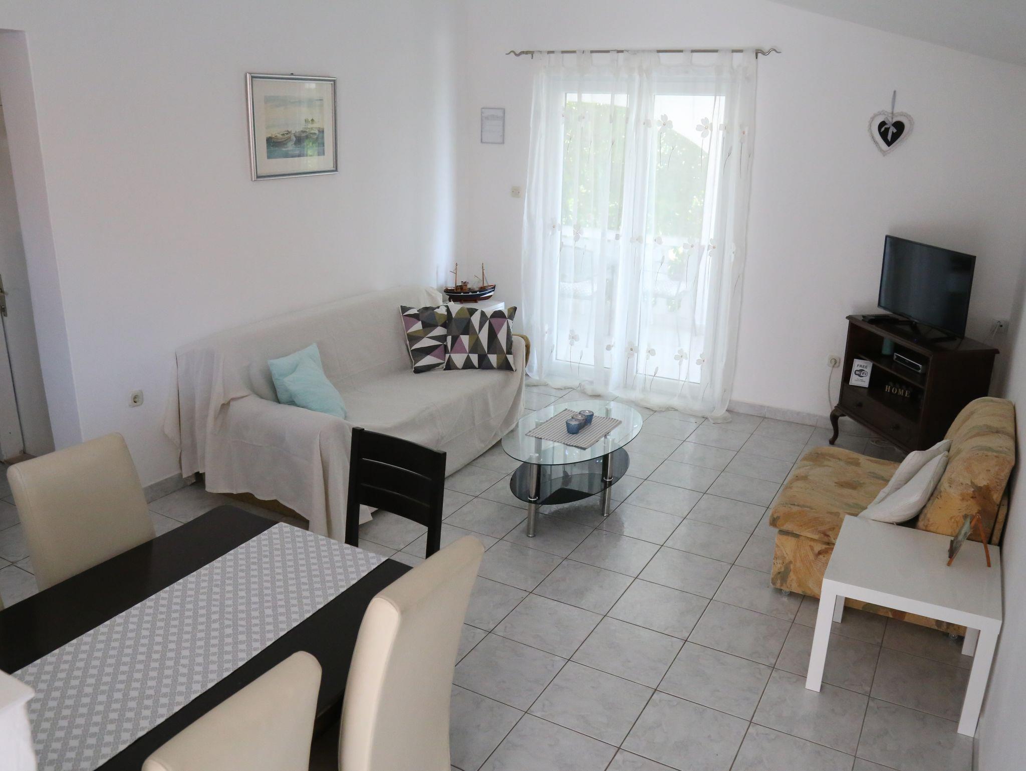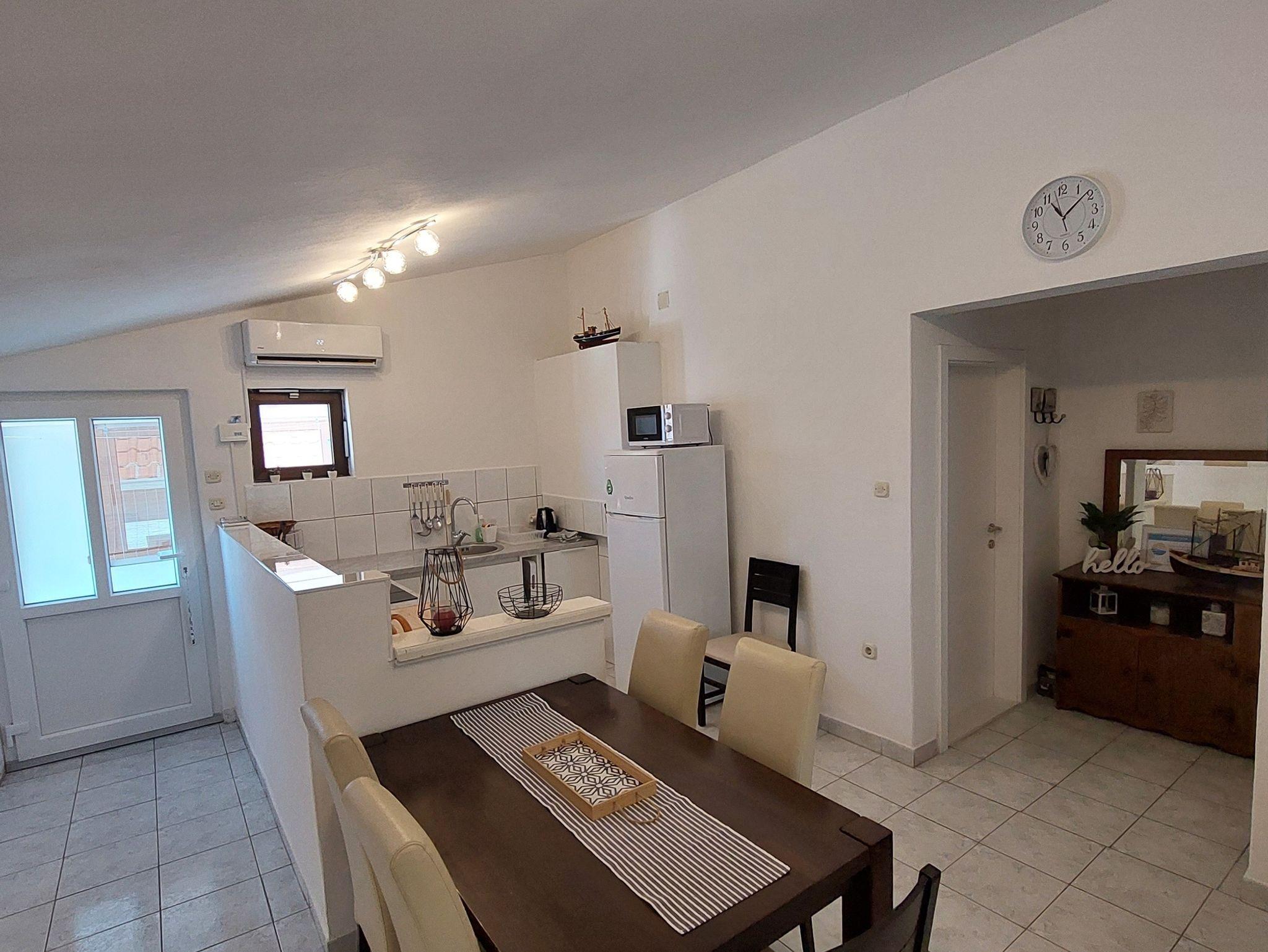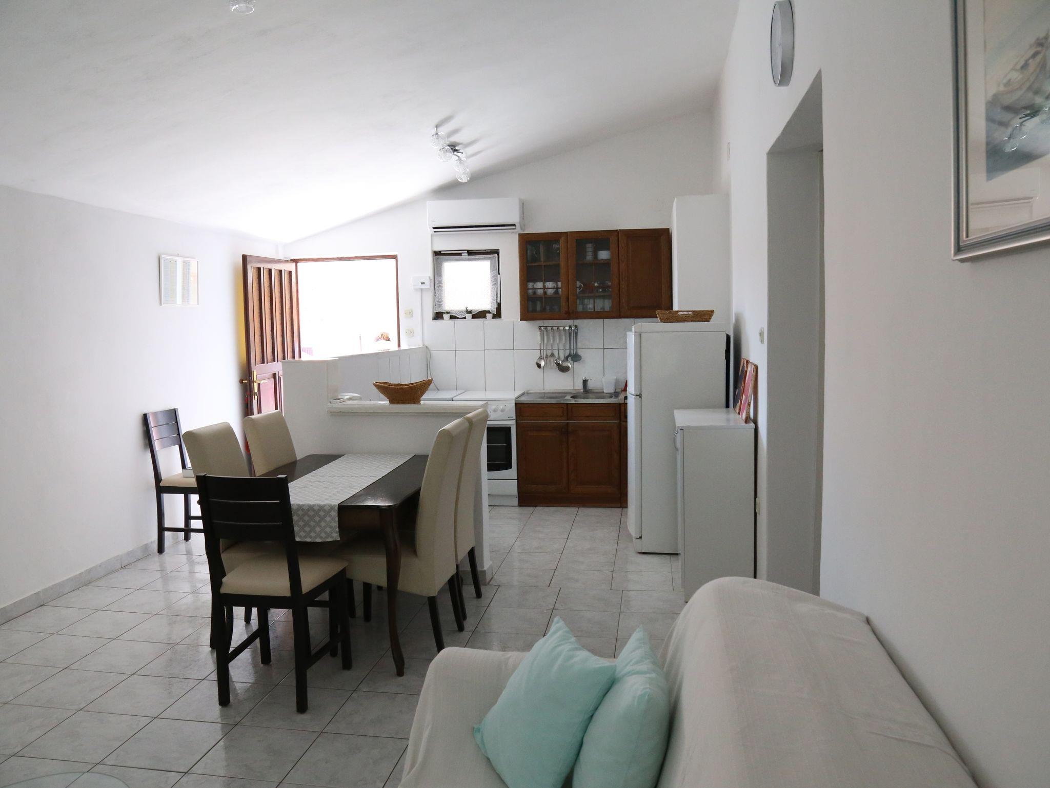 Ferienwohnung bietet Platz für 6 Gäste. Die Betten sind in Schlafzimmern, die es 2 gibt, innerhalb einer Gesamtfläche von 78m2, angeordnet. Die Gäste haben eine eigene Terrasse zur Verfügung, auf der sie in warmen Sommernächten genießen können. Das Apartment bietet Meerblick. Es ist erlaubt, Speisen auf dem Gemeinschafts-Grill vorzubereiten. IM PREIS INBEGRIFFEN: Kurtaxe, Endreinigung, Klimatisierung, Parkplatz, Internet, Wäschewaschen, Kinderbett, Zusatzbett, Bügeleisen, Bügelbrett, Föhn. VERBINDLICHE ZUSÄTZLICHE KOSTEN: Aufzahlung für Kurzaufenthalte (prozentualer Zuschlag pro Nächtigungsanzahl: 30% - 1, 20% - 2, 10% - 3). Die Verfügbarkeit zusätzlicher Dienstleistungen in Ihrem reservierten Termin und die Preise derselben (falls nicht aufgeführt) müssen im Voraus überprüft werden. Zusätzliche Dienstleistungen die in der Zahlungsaufforderung nicht aufgeführt sind werden direkt beim Vermieter bezahlt, angenommen der Gast nutzt auch diese. Ermäßigung auf den Grundpreis: Gratistag 14=13 (bei einem Aufenthalt von 14 Tagen oder mehr erhalten Sie einen Gratistag für den Aufenthalt bis 31.12.26).