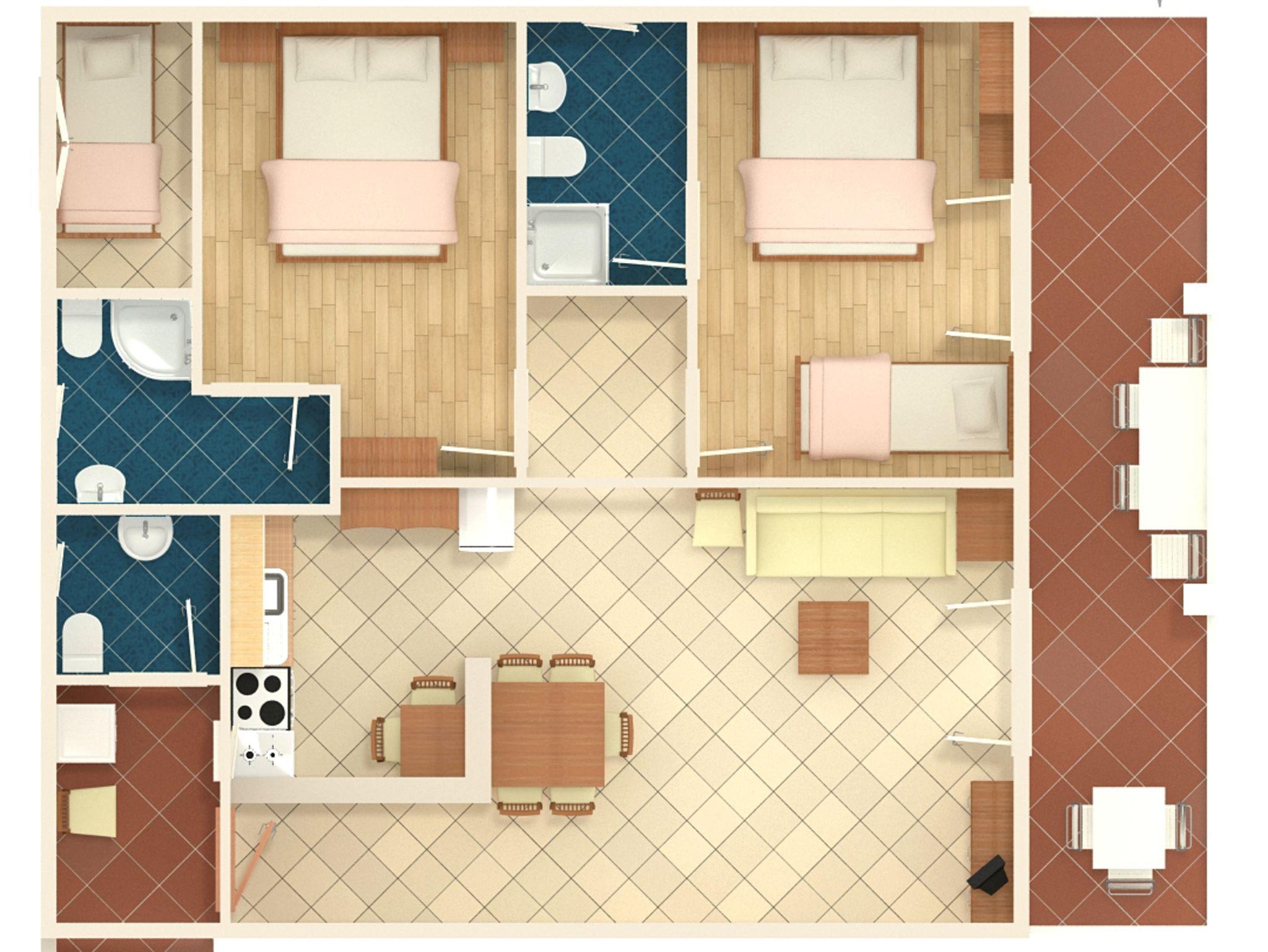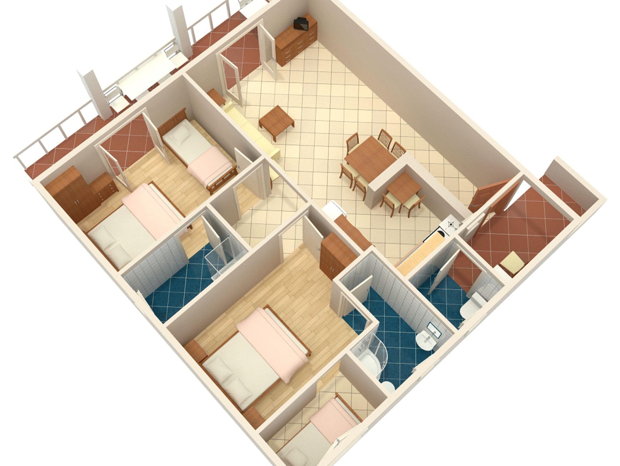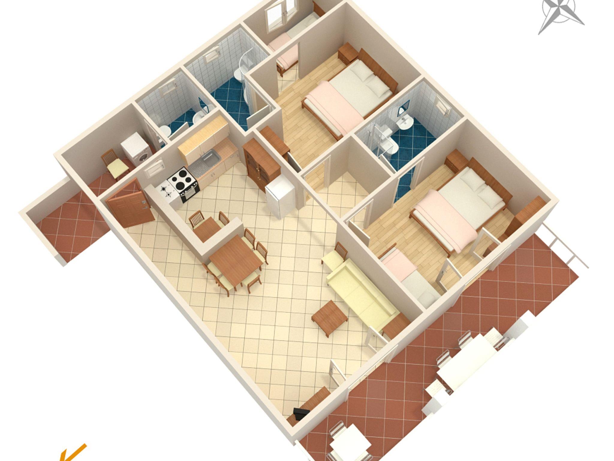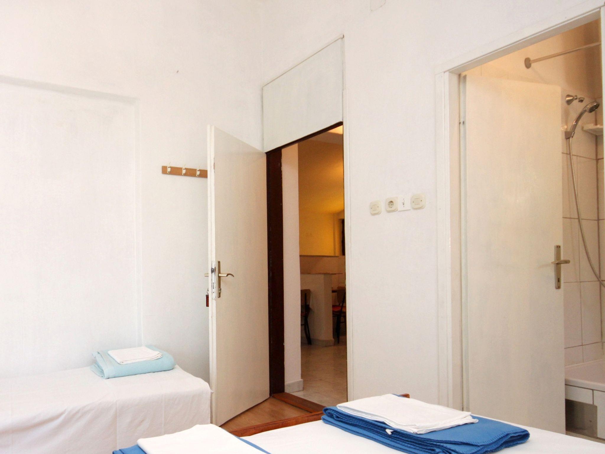 Ferienwohnung bietet Platz für 6 Gäste. Die Betten sind in Schlafzimmern, die es 2 gibt, innerhalb einer Gesamtfläche von 78m2, angeordnet. Die Gäste haben eine eigene Terrasse zur Verfügung, auf der sie in warmen Sommernächten genießen können. Das Apartment bietet Meerblick. Es ist erlaubt, Speisen auf dem Gemeinschafts-Grill vorzubereiten. IM PREIS INBEGRIFFEN: Kurtaxe, Endreinigung, Klimatisierung, Parkplatz, Internet, Wäschewaschen, Kinderbett, Zusatzbett, Bügeleisen, Bügelbrett, Föhn. VERBINDLICHE ZUSÄTZLICHE KOSTEN: Aufzahlung für Kurzaufenthalte (prozentualer Zuschlag pro Nächtigungsanzahl: 30% - 1, 20% - 2, 10% - 3). Die Verfügbarkeit zusätzlicher Dienstleistungen in Ihrem reservierten Termin und die Preise derselben (falls nicht aufgeführt) müssen im Voraus überprüft werden. Zusätzliche Dienstleistungen die in der Zahlungsaufforderung nicht aufgeführt sind werden direkt beim Vermieter bezahlt, angenommen der Gast nutzt auch diese. Ermäßigung auf den Grundpreis: Gratistag 14=13 (bei einem Aufenthalt von 14 Tagen oder mehr erhalten Sie einen Gratistag für den Aufenthalt bis 31.12.26).