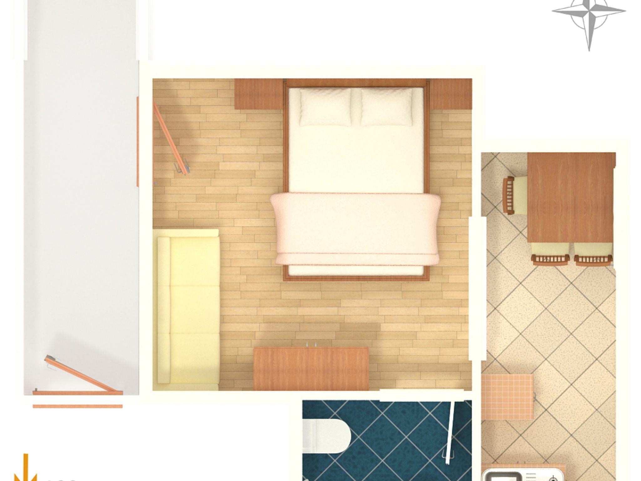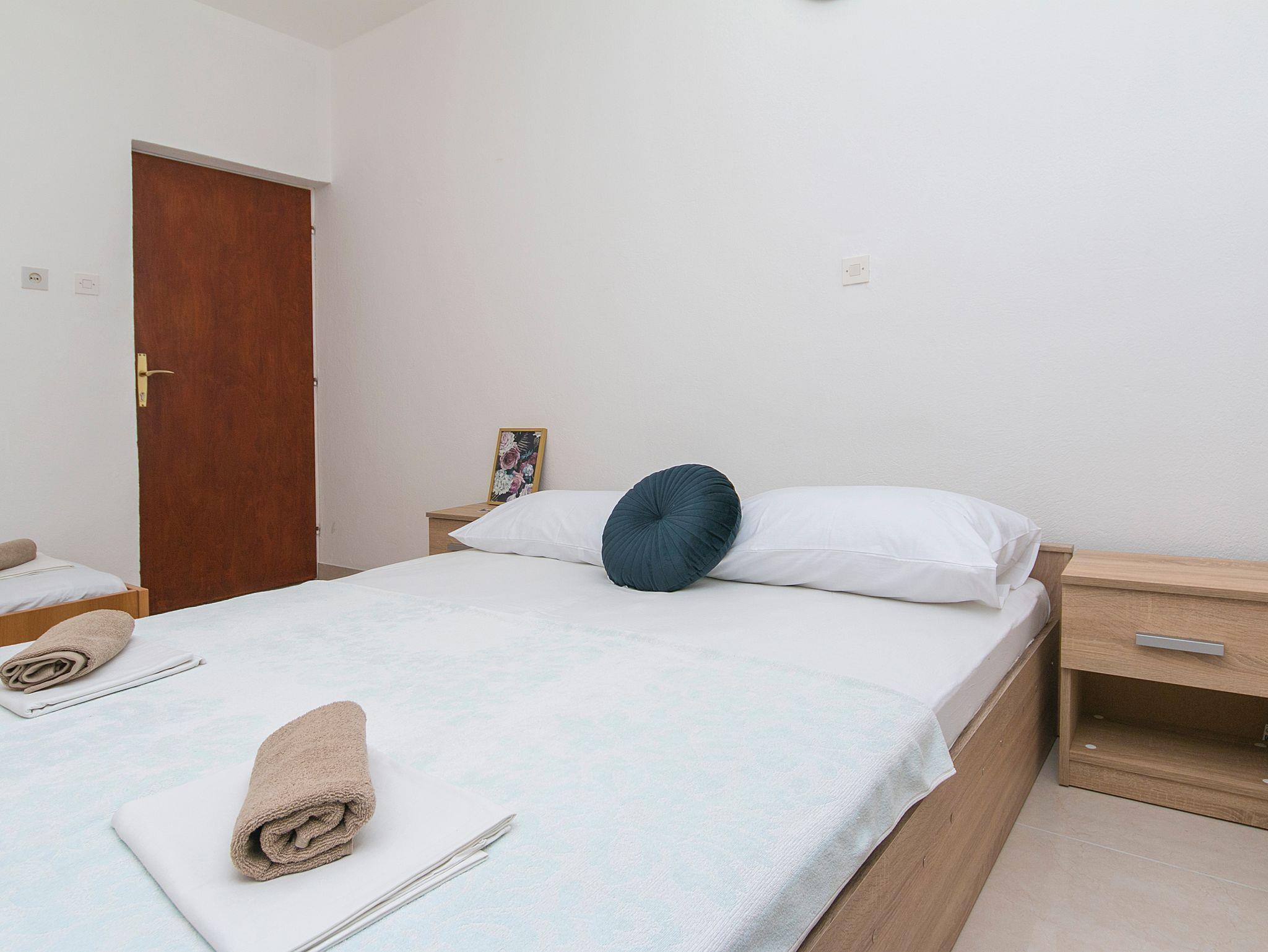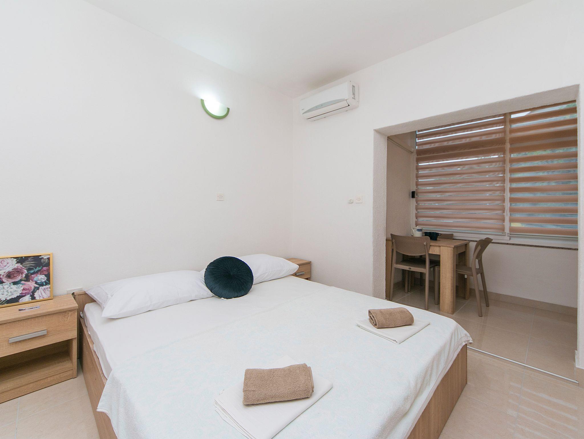 Studio bietet Platz für 3 Gäste. Die Betten sind in Schlafzimmern, die es 1 gibt, innerhalb einer Gesamtfläche von 19m2, angeordnet. Es ist erlaubt, Speisen auf dem Gemeinschafts-Grill vorzubereiten. Die reservierte Unterkunftseinheit hat keinen Balkon und keine Terrasse. IM PREIS INBEGRIFFEN: Kurtaxe, Endreinigung, Klimatisierung, Parkplatz, Internet, Bügeleisen, Bügelbrett, Föhn, tragbarer Grill. VERBINDLICHE ZUSÄTZLICHE KOSTEN: Aufzahlung für Kurzaufenthalte (prozentualer Zuschlag pro Nächtigungsanzahl: 30% - 1, 20% - 2, 10% - 3). UNVERBINDLICHE ZUSÄTZLICHE KOSTEN: Wäschewaschen (7,00 € Waschen), Zusatzbett (6,00 € pro Nacht). Die Verfügbarkeit zusätzlicher Dienstleistungen in Ihrem reservierten Termin und die Preise derselben (falls nicht aufgeführt) müssen im Voraus überprüft werden. Zusätzliche Dienstleistungen die in der Zahlungsaufforderung nicht aufgeführt sind werden direkt beim Vermieter bezahlt, angenommen der Gast nutzt auch diese. Ermäßigung auf den Grundpreis: Gratistag 28=25 (bei einem Aufenthalt von 28 oder mehr Tagen erhalten Sie 3 kostenlose Tage für den Aufenthalt bis 31.12.26).