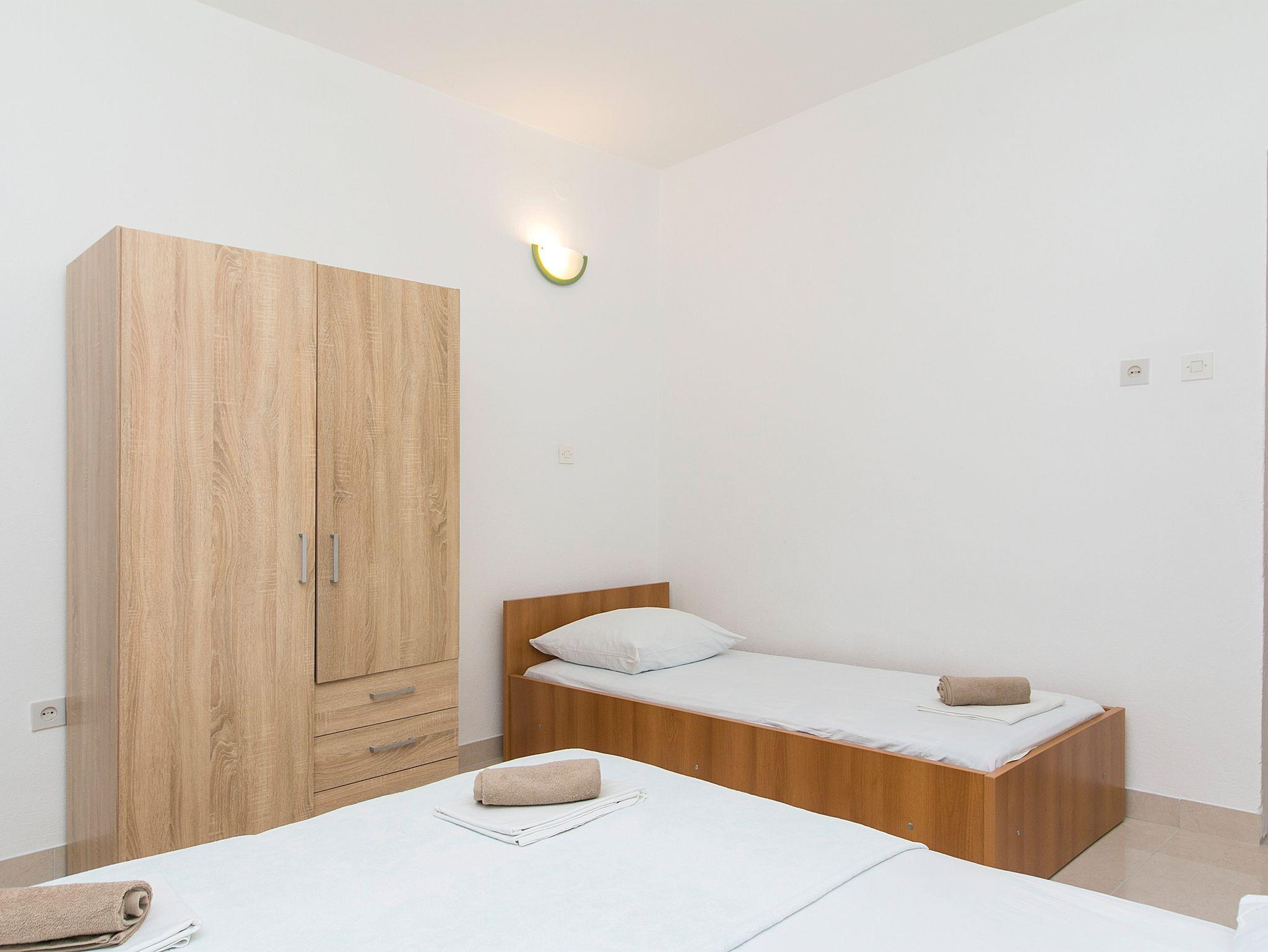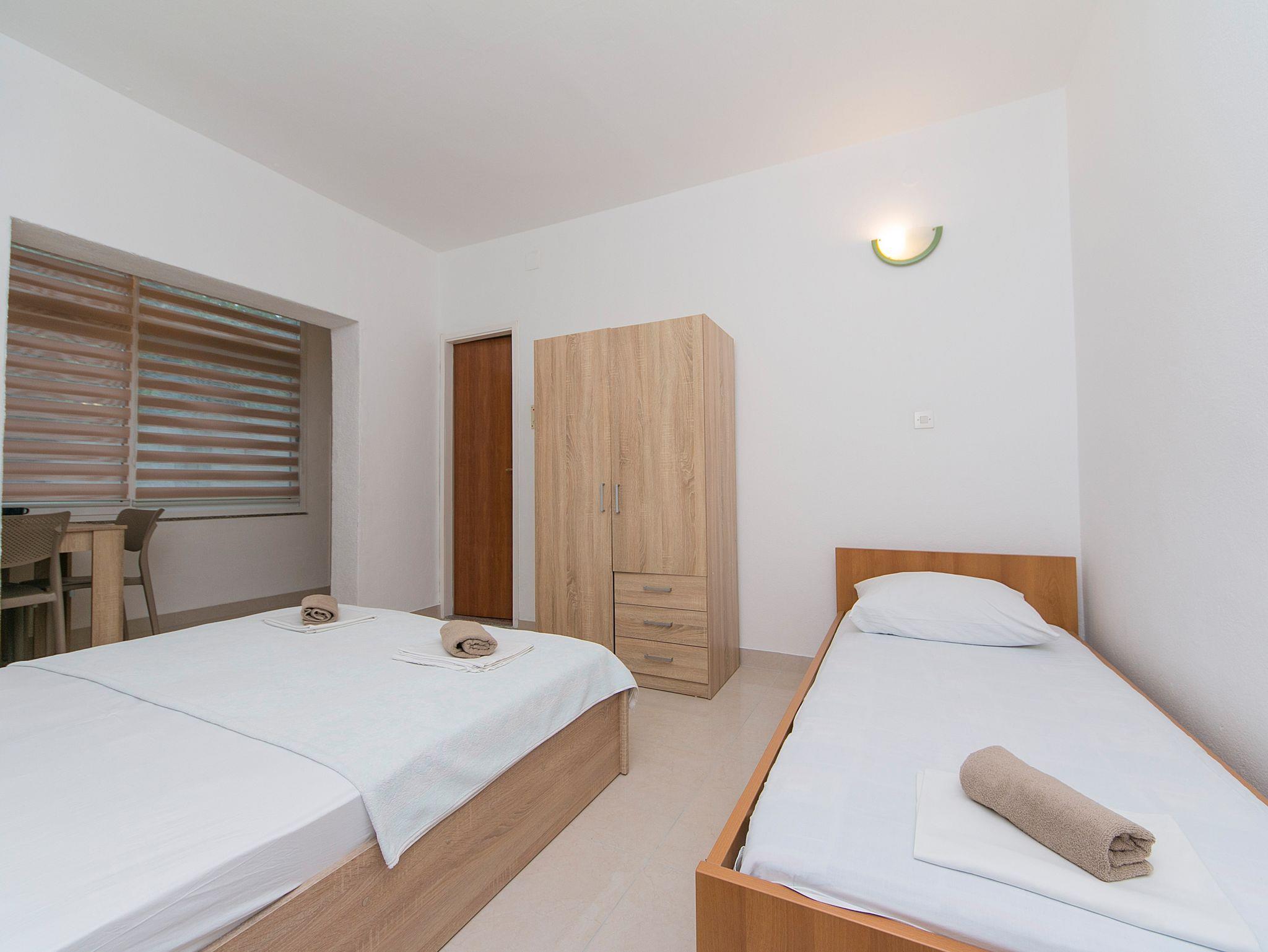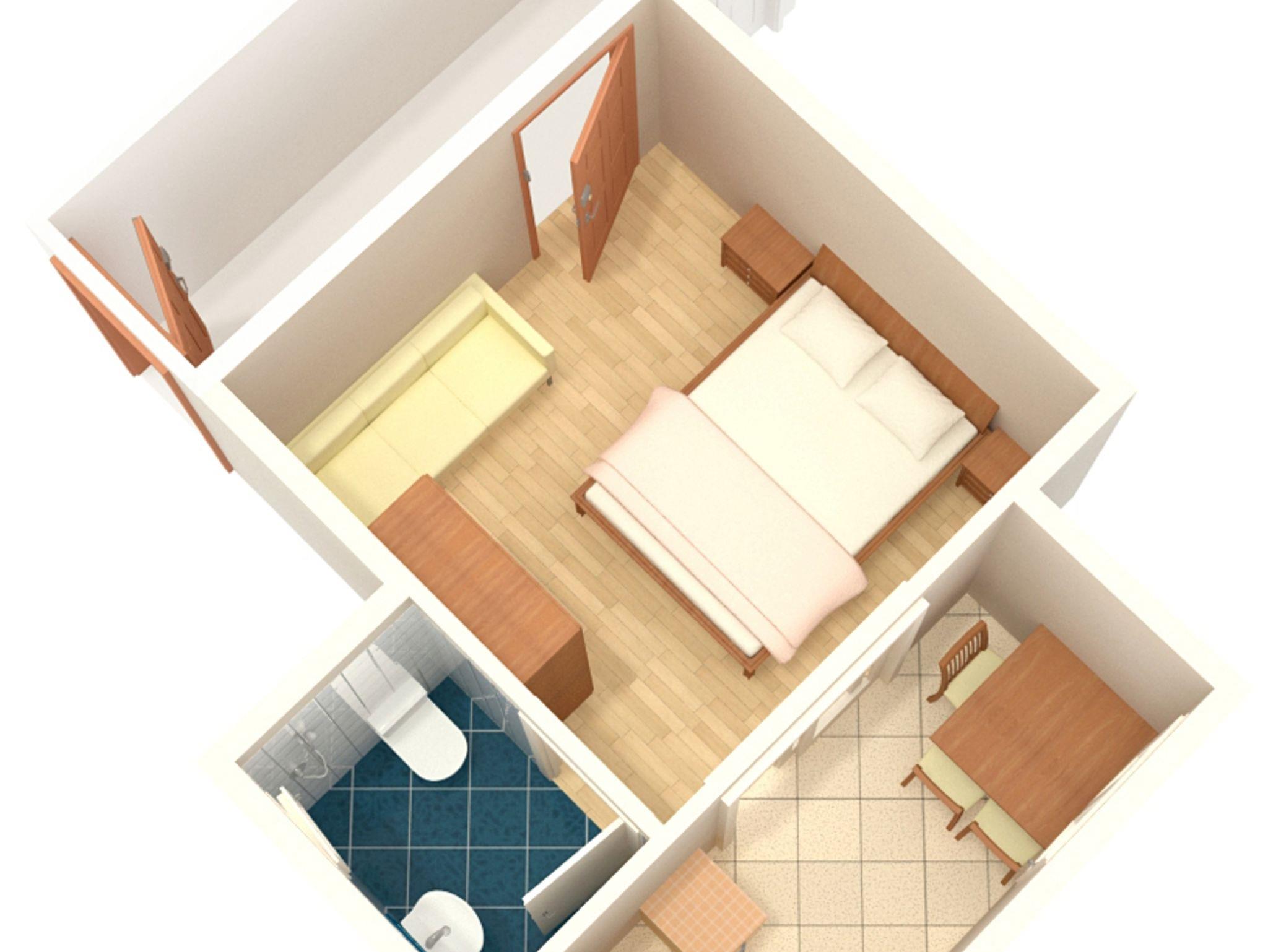 Studio bietet Platz für 3 Gäste. Die Betten sind in Schlafzimmern, die es 1 gibt, innerhalb einer Gesamtfläche von 19m2, angeordnet. Es ist erlaubt, Speisen auf dem Gemeinschafts-Grill vorzubereiten. Die reservierte Unterkunftseinheit hat keinen Balkon und keine Terrasse. IM PREIS INBEGRIFFEN: Kurtaxe, Endreinigung, Klimatisierung, Parkplatz, Internet, Bügeleisen, Bügelbrett, Föhn, tragbarer Grill. VERBINDLICHE ZUSÄTZLICHE KOSTEN: Aufzahlung für Kurzaufenthalte (prozentualer Zuschlag pro Nächtigungsanzahl: 30% - 1, 20% - 2, 10% - 3). UNVERBINDLICHE ZUSÄTZLICHE KOSTEN: Wäschewaschen (7,00 € Waschen), Zusatzbett (6,00 € pro Nacht). Die Verfügbarkeit zusätzlicher Dienstleistungen in Ihrem reservierten Termin und die Preise derselben (falls nicht aufgeführt) müssen im Voraus überprüft werden. Zusätzliche Dienstleistungen die in der Zahlungsaufforderung nicht aufgeführt sind werden direkt beim Vermieter bezahlt, angenommen der Gast nutzt auch diese. Ermäßigung auf den Grundpreis: Gratistag 28=25 (bei einem Aufenthalt von 28 oder mehr Tagen erhalten Sie 3 kostenlose Tage für den Aufenthalt bis 31.12.26).