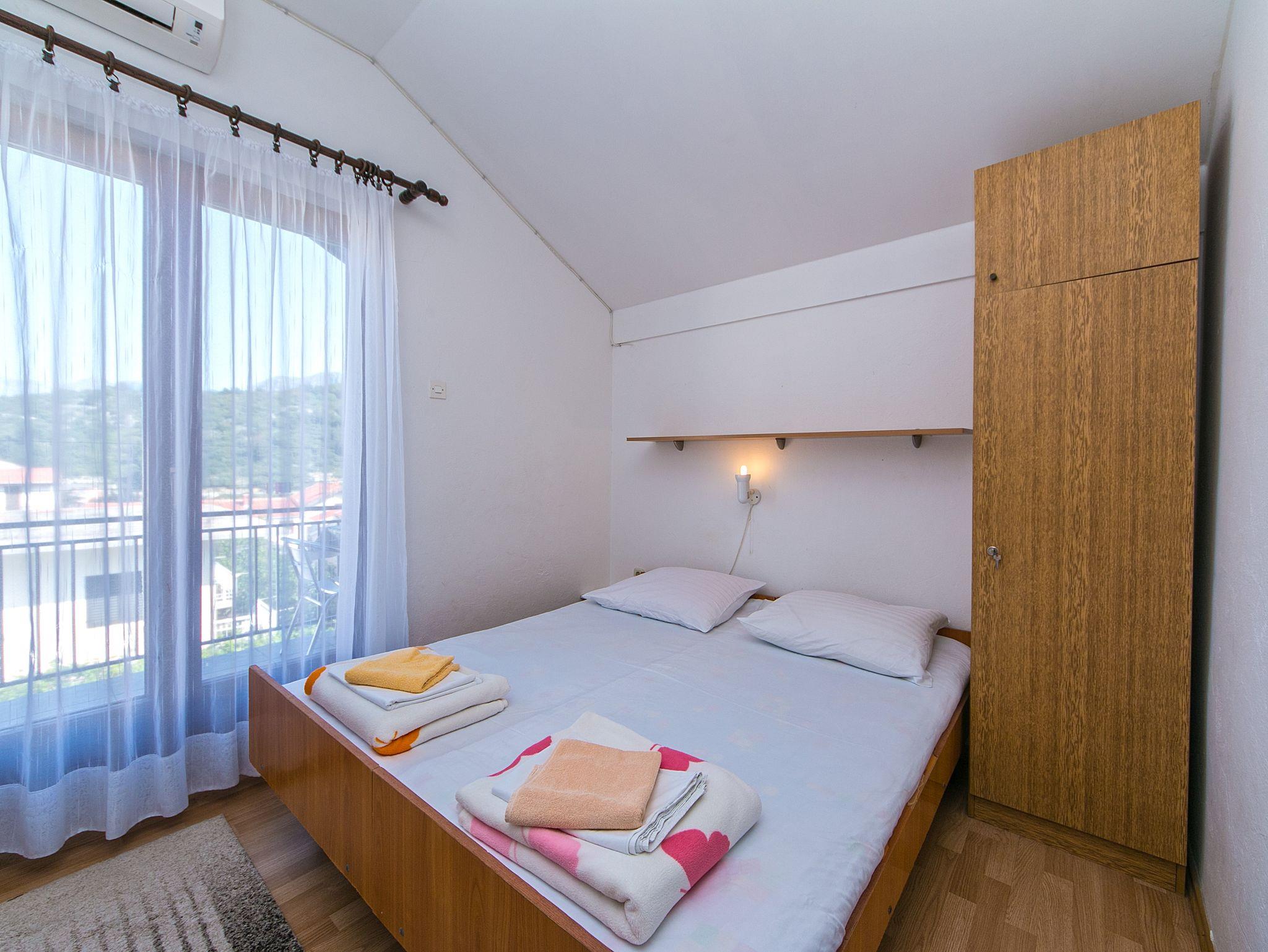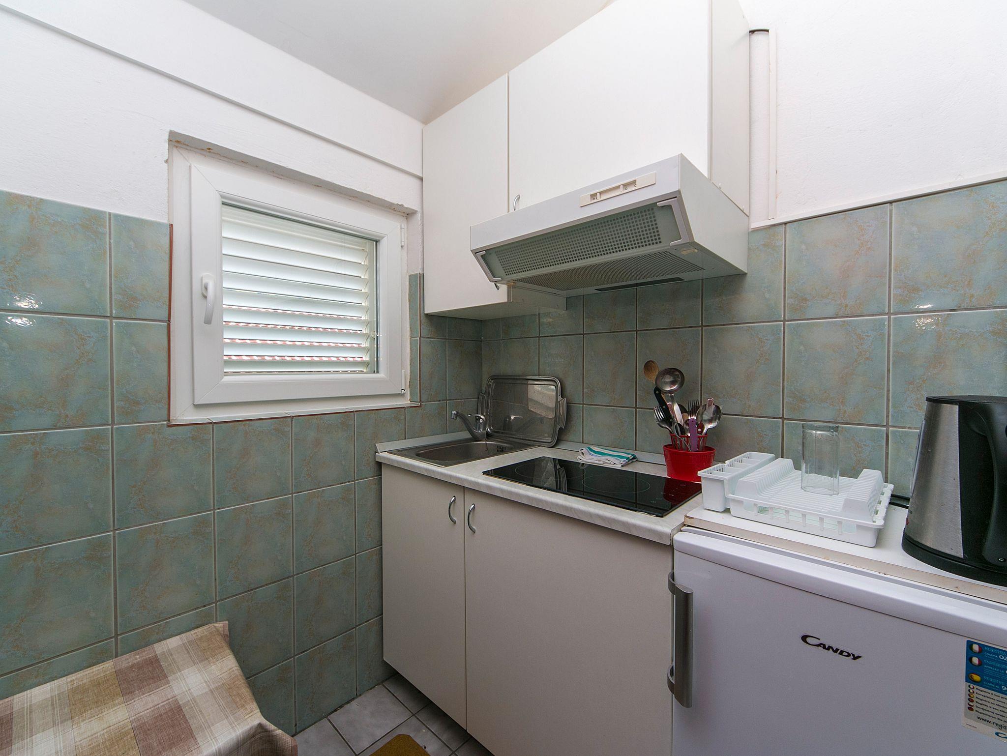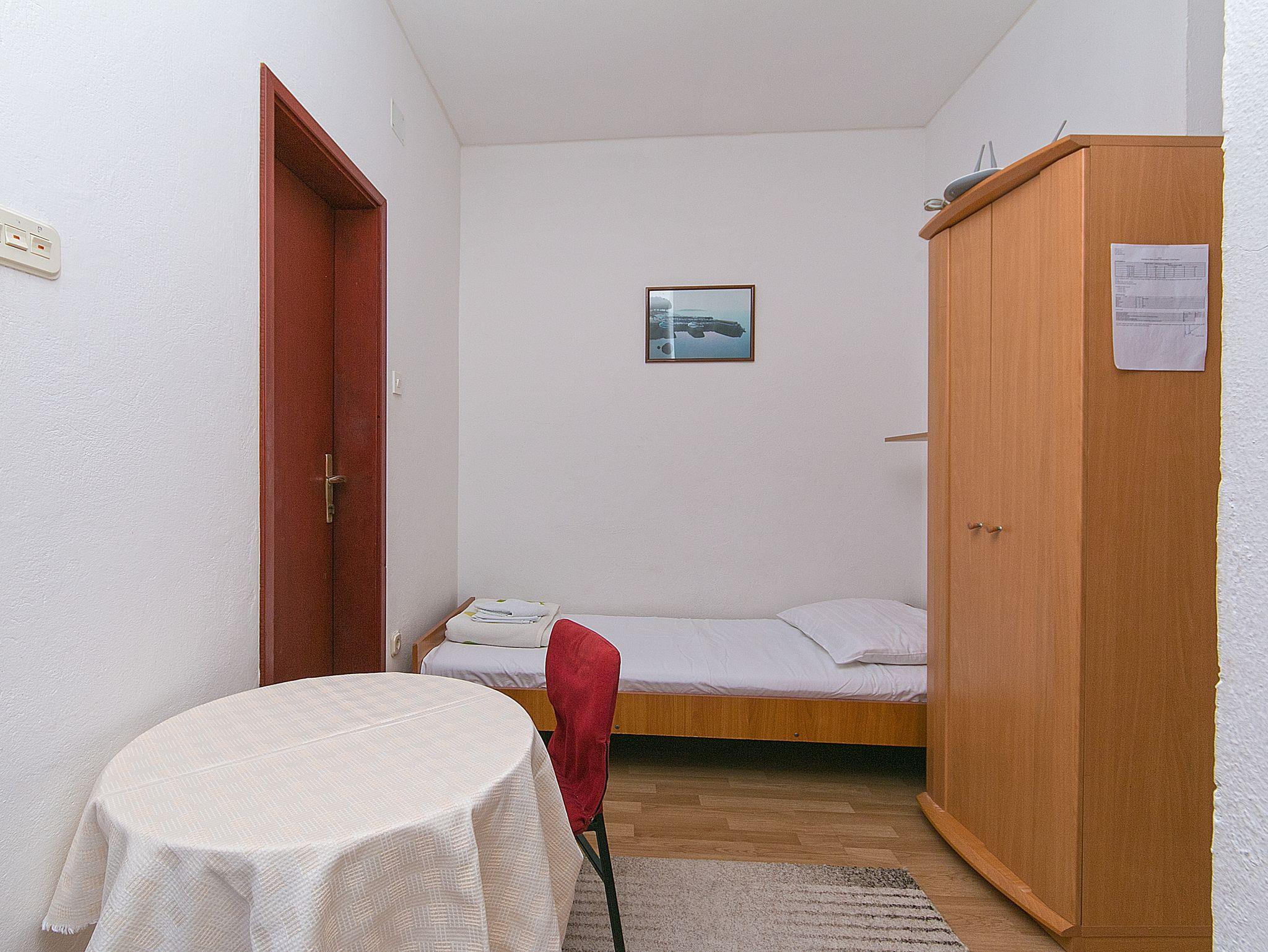 Studio bietet Platz für 3 Gäste. Die Betten sind in Schlafzimmern, die es 1 gibt, innerhalb einer Gesamtfläche von 18m2, angeordnet. Die Gäste haben einen eigenen Balkon zur Verfügung, auf der sie in warmen Sommernächten genießen können. Das Studio-Apartment bietet Meerblick. Es ist erlaubt, Speisen auf dem Gemeinschafts-Grill vorzubereiten. IM PREIS INBEGRIFFEN: Kurtaxe, Endreinigung, Klimatisierung, Parkplatz, Internet, Bügeleisen, Bügelbrett, Föhn. VERBINDLICHE ZUSÄTZLICHE KOSTEN: Aufzahlung für Kurzaufenthalte (prozentualer Zuschlag pro Nächtigungsanzahl: 30% - 1, 20% - 2, 10% - 3). Die Verfügbarkeit zusätzlicher Dienstleistungen in Ihrem reservierten Termin und die Preise derselben (falls nicht aufgeführt) müssen im Voraus überprüft werden. Zusätzliche Dienstleistungen die in der Zahlungsaufforderung nicht aufgeführt sind werden direkt beim Vermieter bezahlt, angenommen der Gast nutzt auch diese. Ermäßigung auf den Grundpreis: Gratistag 28=25 (bei einem Aufenthalt von 28 oder mehr Tagen erhalten Sie 3 kostenlose Tage für den Aufenthalt bis 31.12.26).