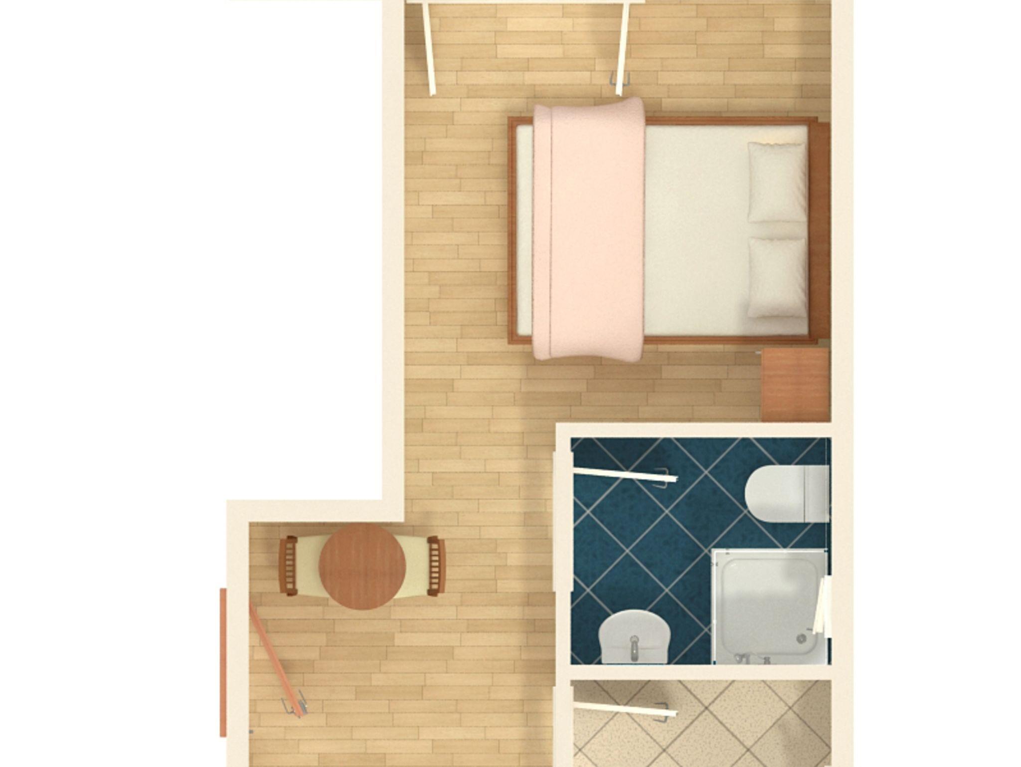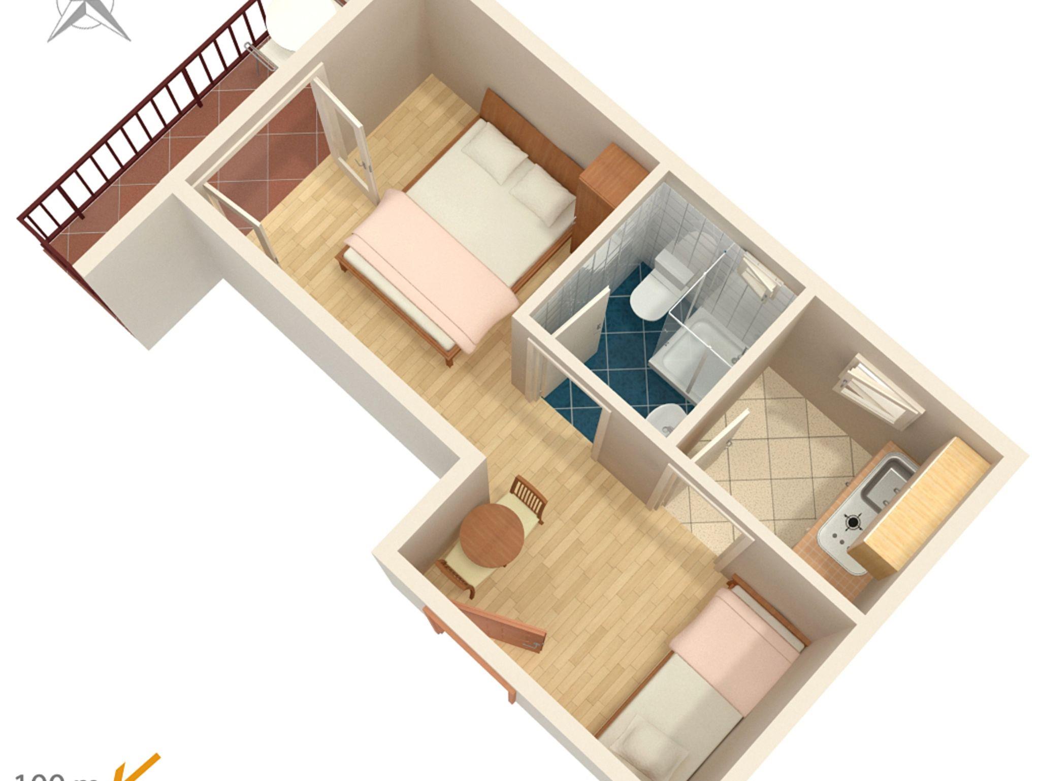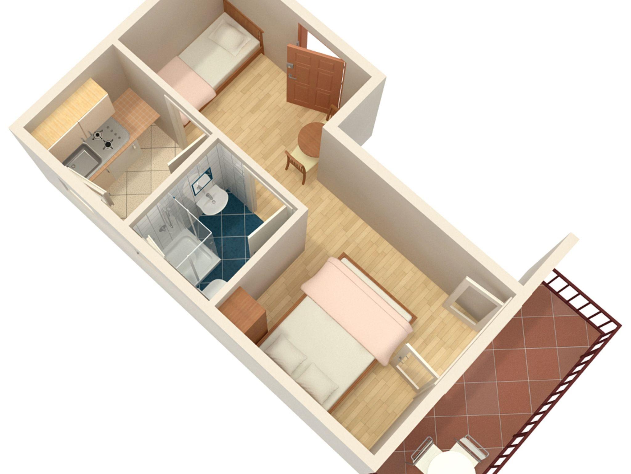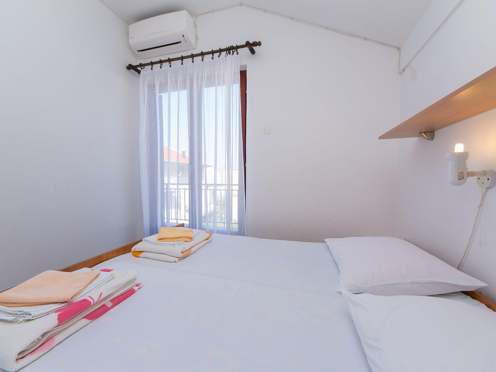 Studio bietet Platz für 3 Gäste. Die Betten sind in Schlafzimmern, die es 1 gibt, innerhalb einer Gesamtfläche von 18m2, angeordnet. Die Gäste haben einen eigenen Balkon zur Verfügung, auf der sie in warmen Sommernächten genießen können. Das Studio-Apartment bietet Meerblick. Es ist erlaubt, Speisen auf dem Gemeinschafts-Grill vorzubereiten. IM PREIS INBEGRIFFEN: Kurtaxe, Endreinigung, Klimatisierung, Parkplatz, Internet, Bügeleisen, Bügelbrett, Föhn. VERBINDLICHE ZUSÄTZLICHE KOSTEN: Aufzahlung für Kurzaufenthalte (prozentualer Zuschlag pro Nächtigungsanzahl: 30% - 1, 20% - 2, 10% - 3). Die Verfügbarkeit zusätzlicher Dienstleistungen in Ihrem reservierten Termin und die Preise derselben (falls nicht aufgeführt) müssen im Voraus überprüft werden. Zusätzliche Dienstleistungen die in der Zahlungsaufforderung nicht aufgeführt sind werden direkt beim Vermieter bezahlt, angenommen der Gast nutzt auch diese. Ermäßigung auf den Grundpreis: Gratistag 28=25 (bei einem Aufenthalt von 28 oder mehr Tagen erhalten Sie 3 kostenlose Tage für den Aufenthalt bis 31.12.26).