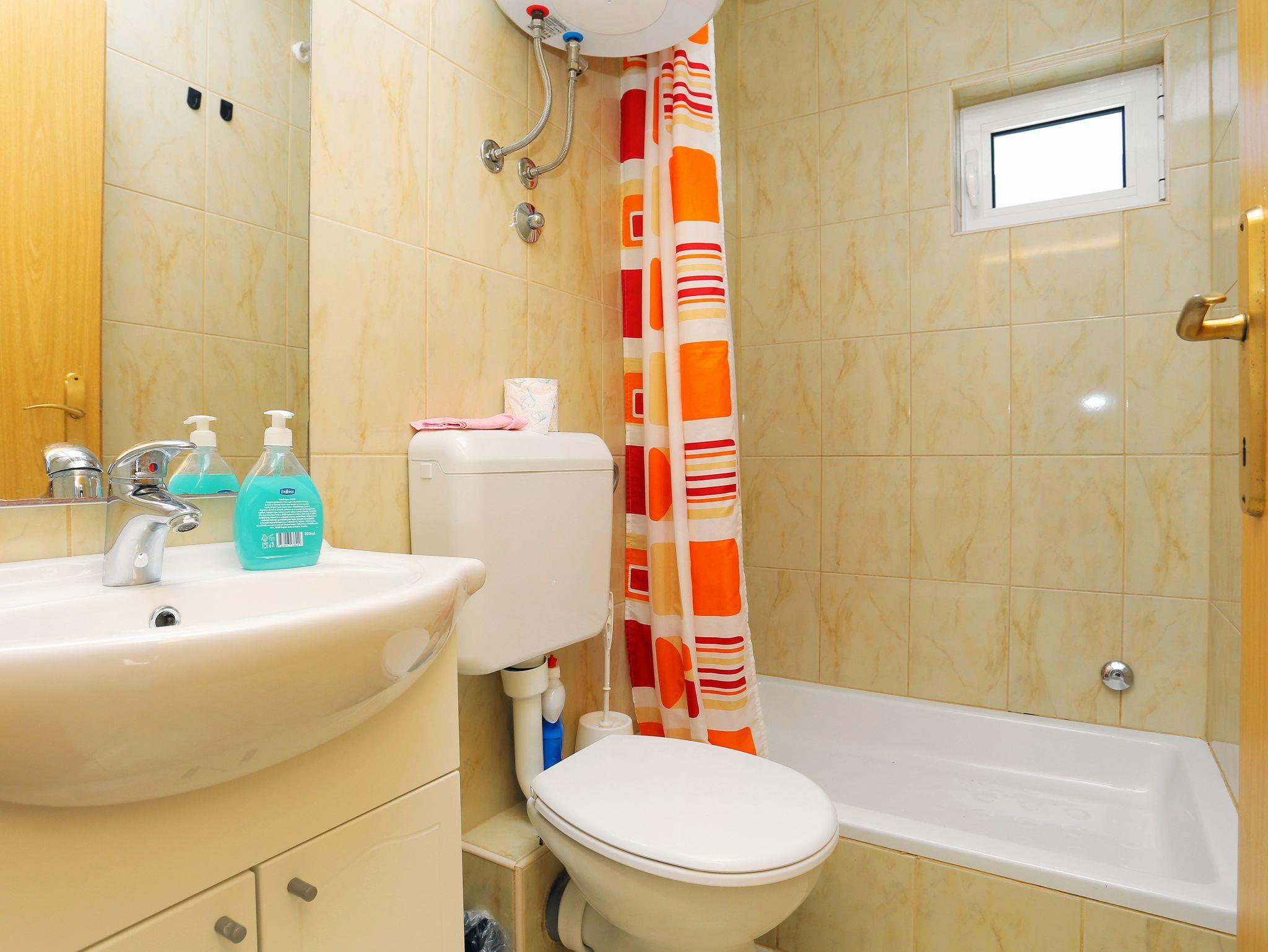Ferienwohnung bietet Platz für 5 Gäste. Die Betten sind in Schlafzimmern, die es 2 gibt, innerhalb einer Gesamtfläche von 38m2, angeordnet. Die Gäste haben eine eigene Terrasse zur Verfügung, auf der sie in warmen Sommernächten genießen können. Das Apartment bietet Meerblick. In der Unterkunftseinheit besteht die Möglichkeit des Mitbringens von Haustieren, und die Dienstleistung ist im Preis der Unterkunft enthalten. IM PREIS INBEGRIFFEN: Kurtaxe, Endreinigung, Klimatisierung, Parkplatz, Internet, Haustiere. Die Verfügbarkeit zusätzlicher Dienstleistungen in Ihrem reservierten Termin und die Preise derselben (falls nicht aufgeführt) müssen im Voraus überprüft werden. Zusätzliche Dienstleistungen die in der Zahlungsaufforderung nicht aufgeführt sind werden direkt beim Vermieter bezahlt, angenommen der Gast nutzt auch diese. Ermäßigung auf den Grundpreis: Gratistag 14=13 (bei einem Aufenthalt von 14 Tagen oder mehr erhalten Sie einen Gratistag für den Aufenthalt bis 31.12.26).