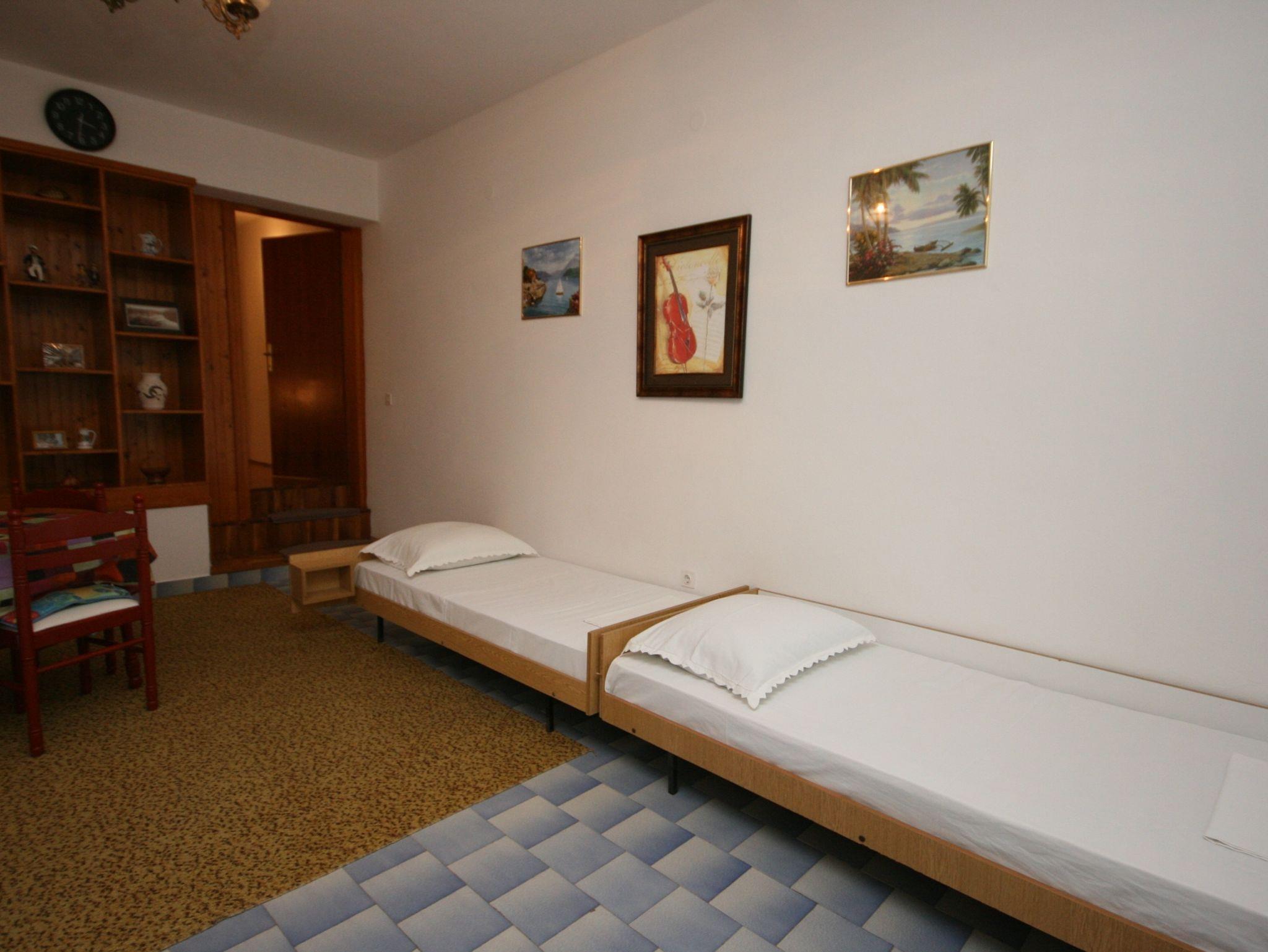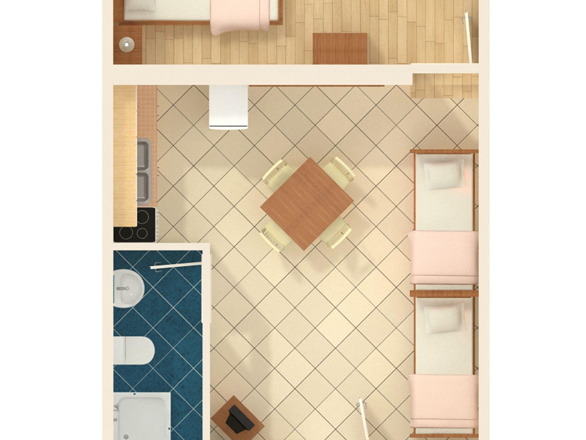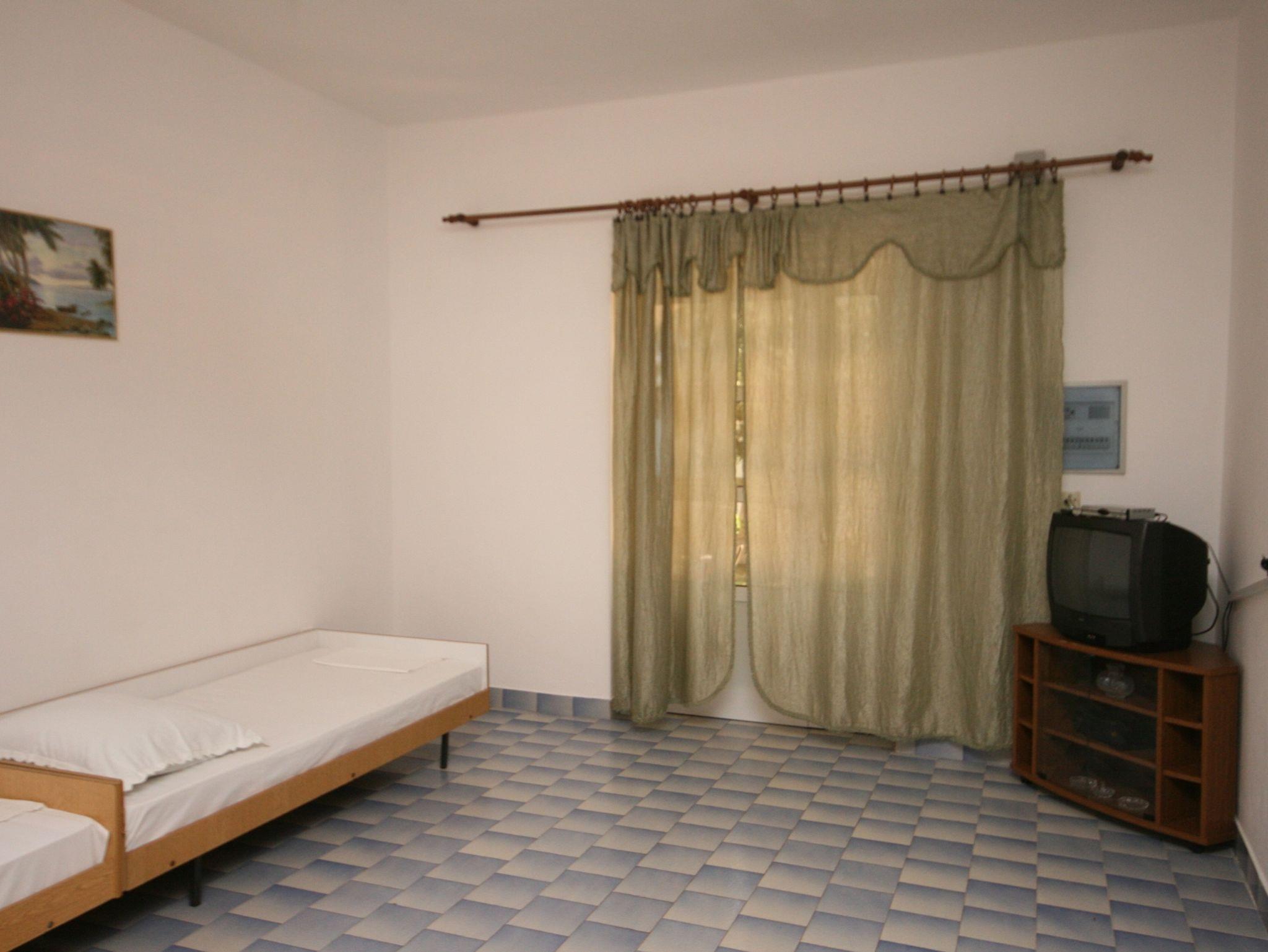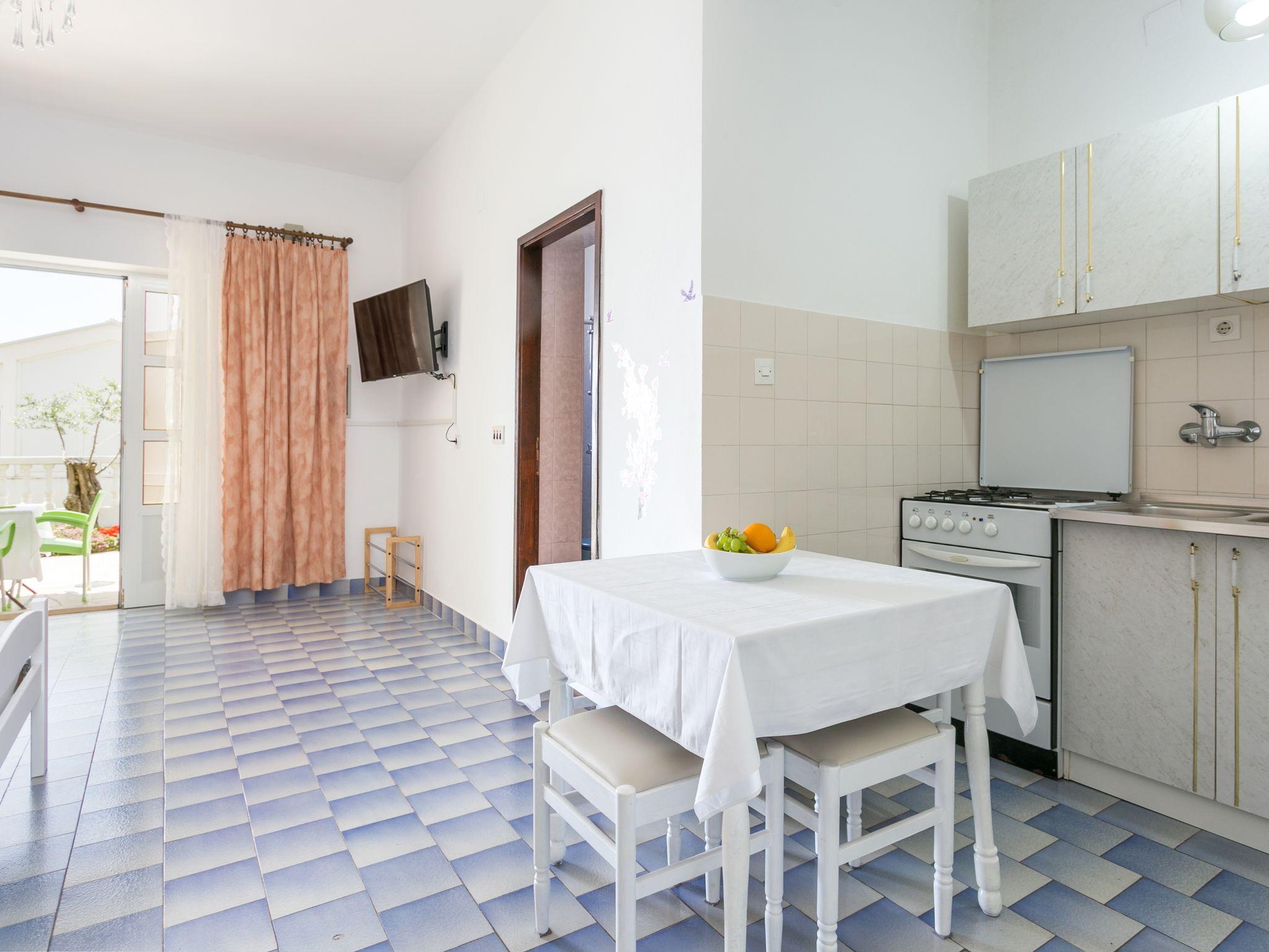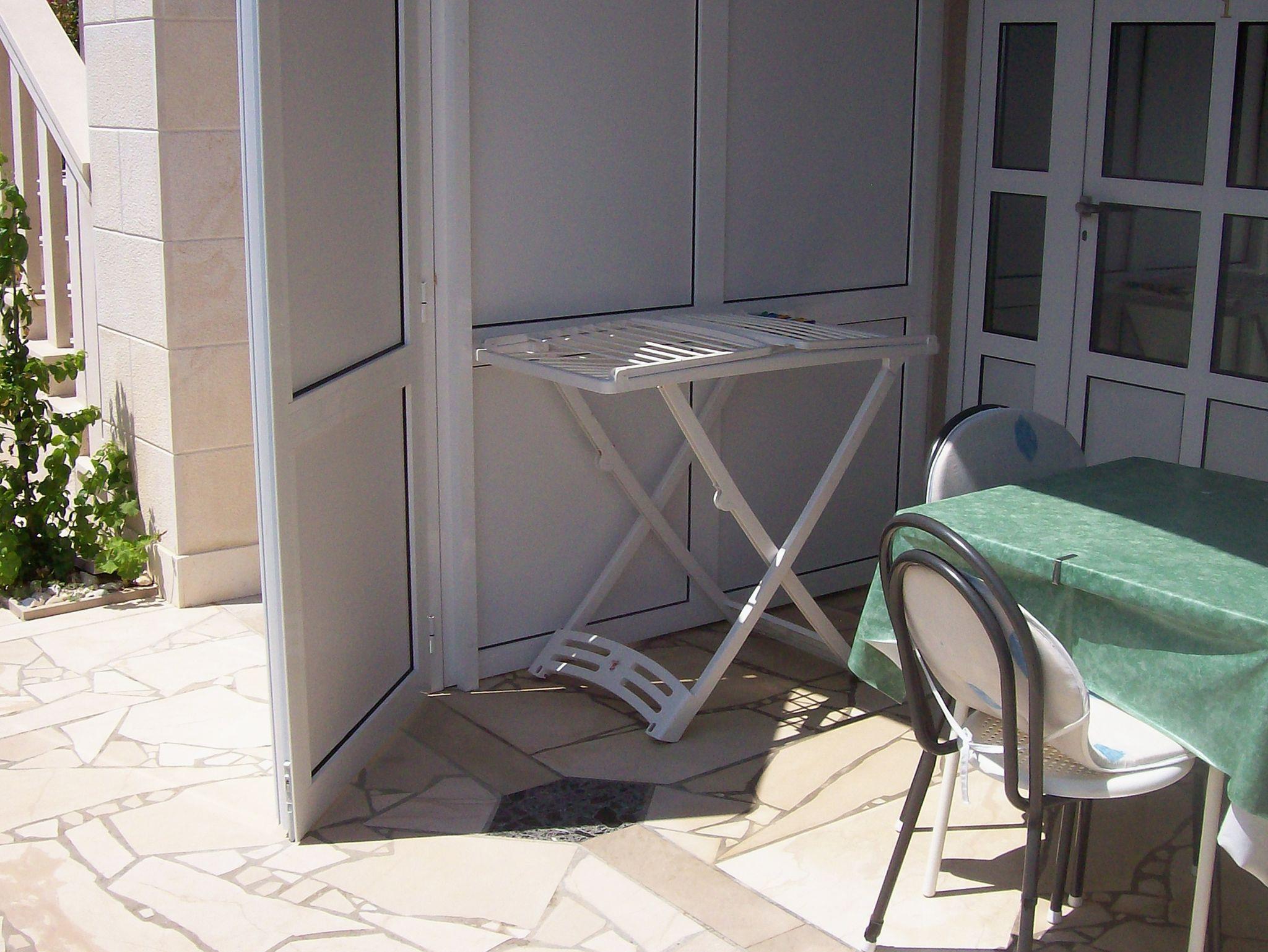 Ferienwohnung bietet Platz für 4 Gäste. Die Betten sind in Schlafzimmern, die es 1 gibt, und in Esszimmer, innerhalb einer Gesamtfläche von 48m2, angeordnet. Die Gäste haben eine eigene Terrasse zur Verfügung, auf der sie in warmen Sommernächten genießen können. Das Apartment bietet Meerblick. IM PREIS INBEGRIFFEN: Kurtaxe, Endreinigung, Parkplatz, Internet, Kinderbett, Bügeleisen, Bügelbrett, Föhn, Sonnenschirm, Liegestühle. VERBINDLICHE ZUSÄTZLICHE KOSTEN: Aufzahlung für Kurzaufenthalte (prozentualer Zuschlag pro Nächtigungsanzahl: 30% - 1, 20% - 2, 10% - 3). UNVERBINDLICHE ZUSÄTZLICHE KOSTEN: Klimatisierung (8,00 € pro Nacht), Zusatzbett (10,00 € pro Nacht). Die Verfügbarkeit zusätzlicher Dienstleistungen in Ihrem reservierten Termin und die Preise derselben (falls nicht aufgeführt) müssen im Voraus überprüft werden. Zusätzliche Dienstleistungen die in der Zahlungsaufforderung nicht aufgeführt sind werden direkt beim Vermieter bezahlt, angenommen der Gast nutzt auch diese. Ermäßigung auf den Grundpreis: Gratistag 14=13 (bei einem Aufenthalt von 14 Tagen oder mehr erhalten Sie einen Gratistag für den Aufenthalt bis 31.12.26).