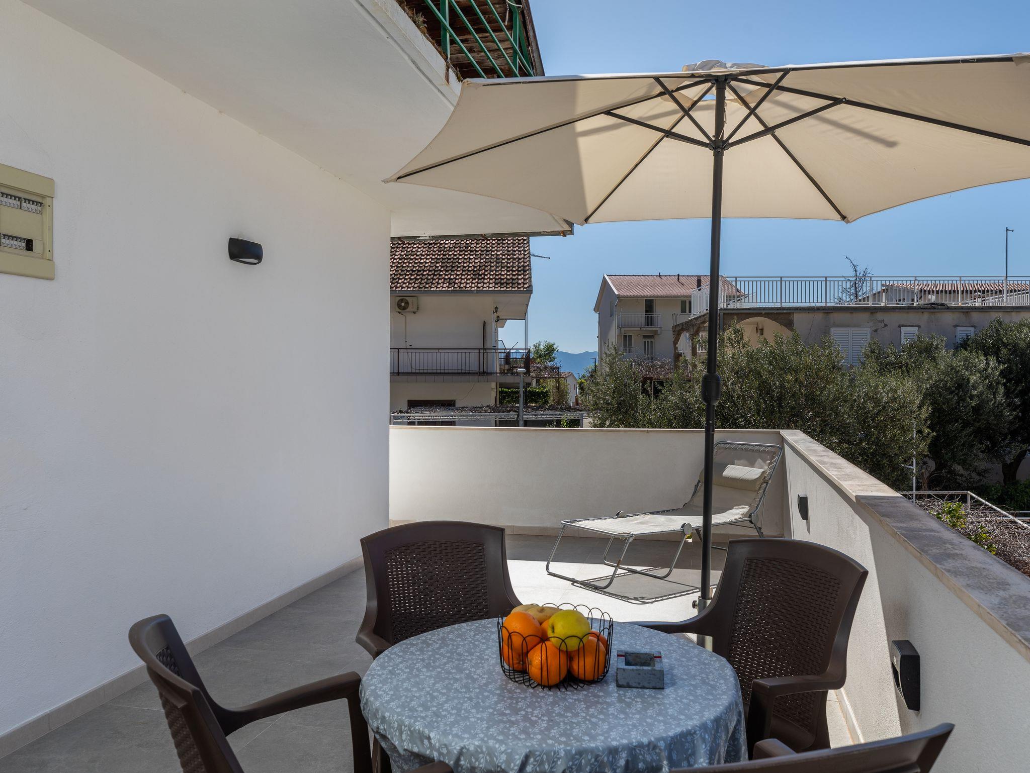 Ferienwohnung bietet Platz für 5 Gäste. Die Betten sind in Schlafzimmern, die es 1 gibt, und in Wohnzimmer, innerhalb einer Gesamtfläche von 32m2, angeordnet. Die Gäste haben eine eigene Terrasse zur Verfügung, auf der sie in warmen Sommernächten genießen können. Es ist erlaubt, Speisen auf dem Gemeinschafts-Grill vorzubereiten. Durch die Terrasse der gebuchten Unterkunftseinheit gehen auch andere Gäste oder Vermieter. IM PREIS INBEGRIFFEN: Kurtaxe, Endreinigung, Klimatisierung, Parkplatz, Internet. VERBINDLICHE ZUSÄTZLICHE KOSTEN: Aufzahlung für Kurzaufenthalte (prozentualer Zuschlag pro Nächtigungsanzahl: 30% - 1, 20% - 2, 10% - 3). UNVERBINDLICHE ZUSÄTZLICHE KOSTEN: Wäschewaschen (5,00 € Waschen), Zusatzbett (8,00 € pro Nacht). Die Verfügbarkeit zusätzlicher Dienstleistungen in Ihrem reservierten Termin und die Preise derselben (falls nicht aufgeführt) müssen im Voraus überprüft werden. Zusätzliche Dienstleistungen die in der Zahlungsaufforderung nicht aufgeführt sind werden direkt beim Vermieter bezahlt, angenommen der Gast nutzt auch diese. Ermäßigung auf den Grundpreis: Gratistag 14=13 (bei einem Aufenthalt von 14 Tagen oder mehr erhalten Sie einen Gratistag für den Aufenthalt bis 31.12.26).